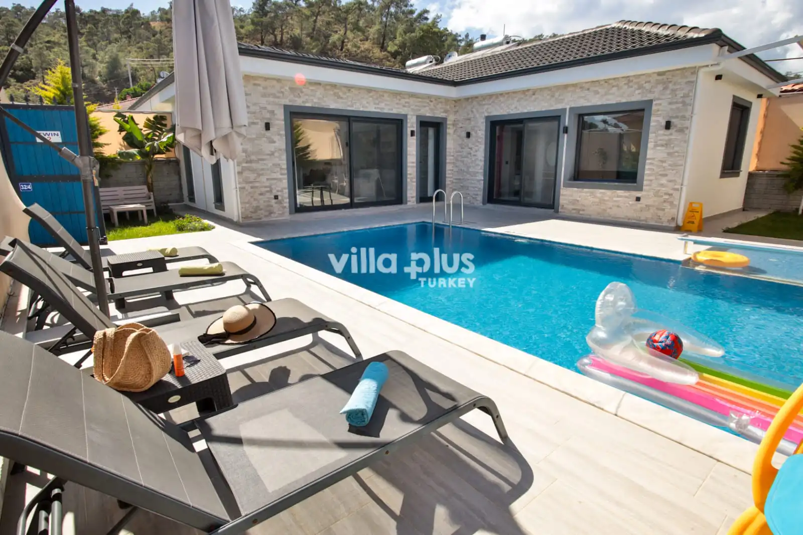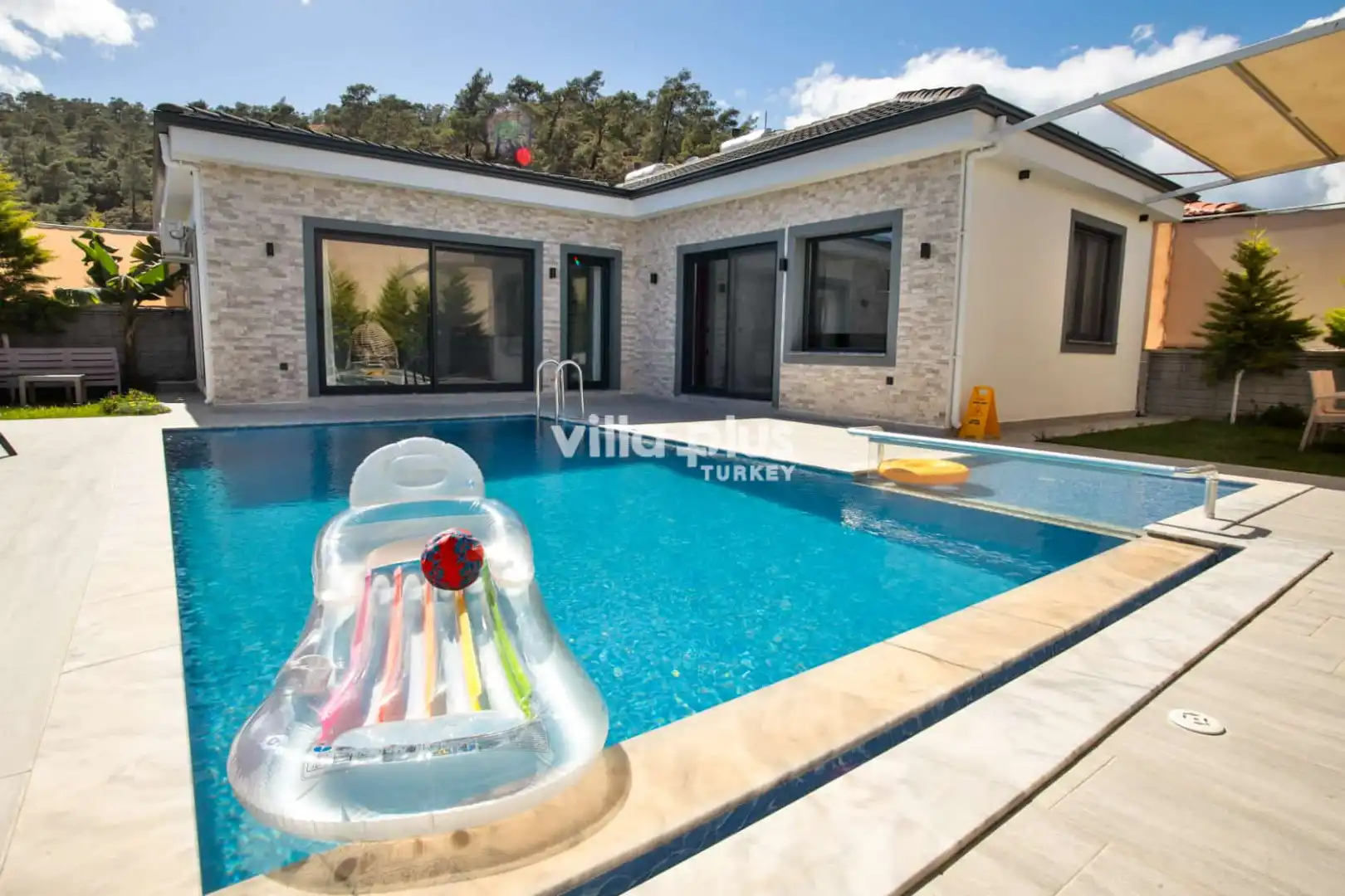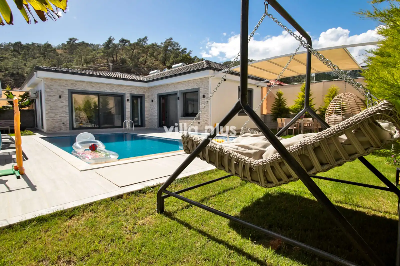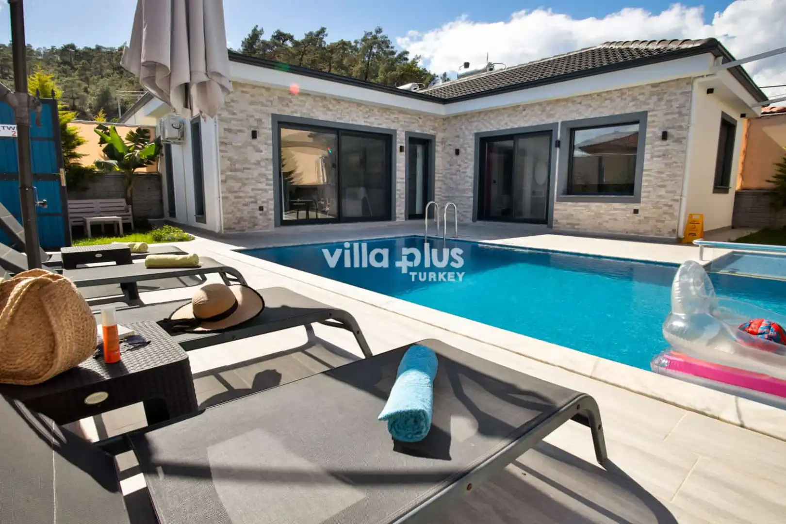 Villa Alin 2 is located in the Yanıklar area of Fethiye. It has a total of 2 bedrooms and can accommodate up to 4 guests. It is an ideal option for small families and honeymoon couples. The private pool is fully secluded and not visible from the outside. There is also a children’s pool for the little ones. Parking space is available. Accompanied by a beautiful nature view, Villa Alin 2 offers our valued guests a wonderful holiday experience.