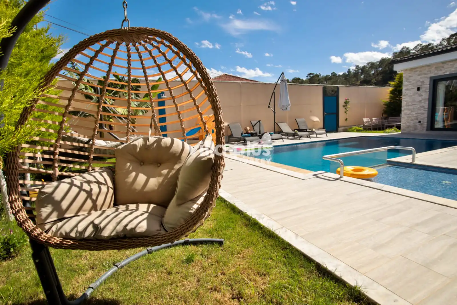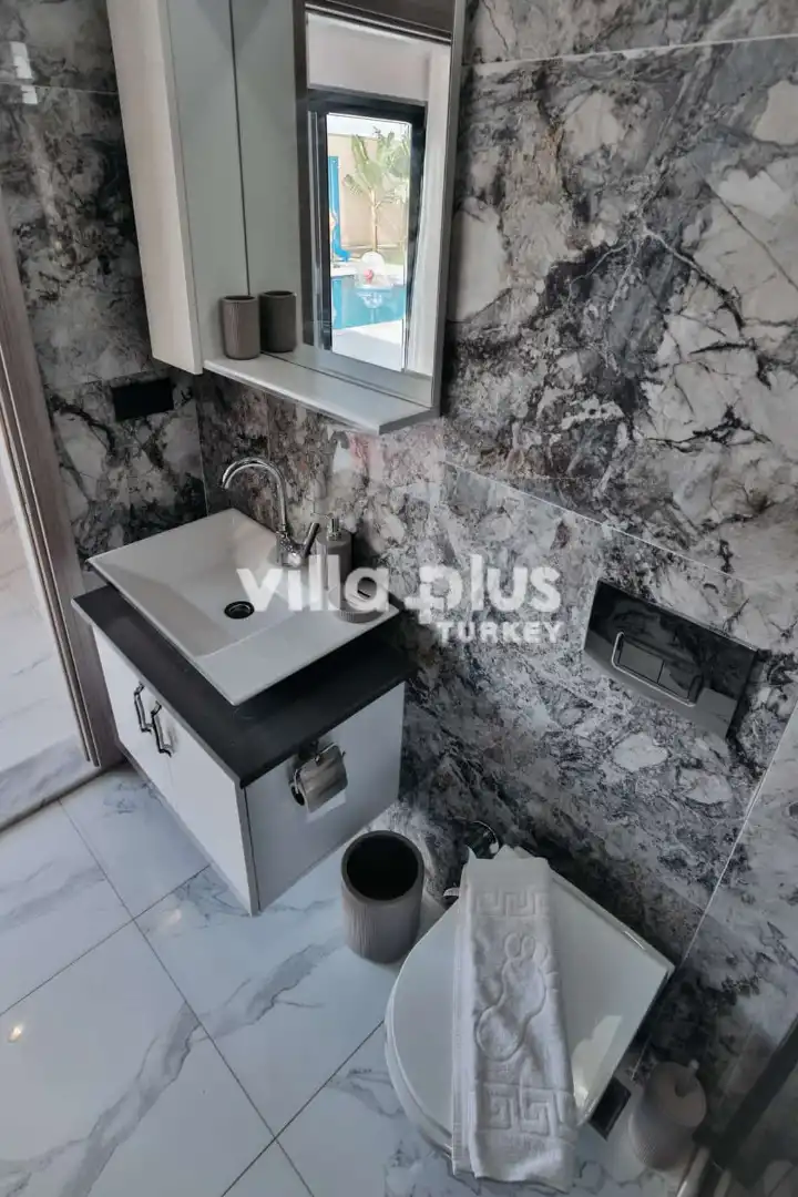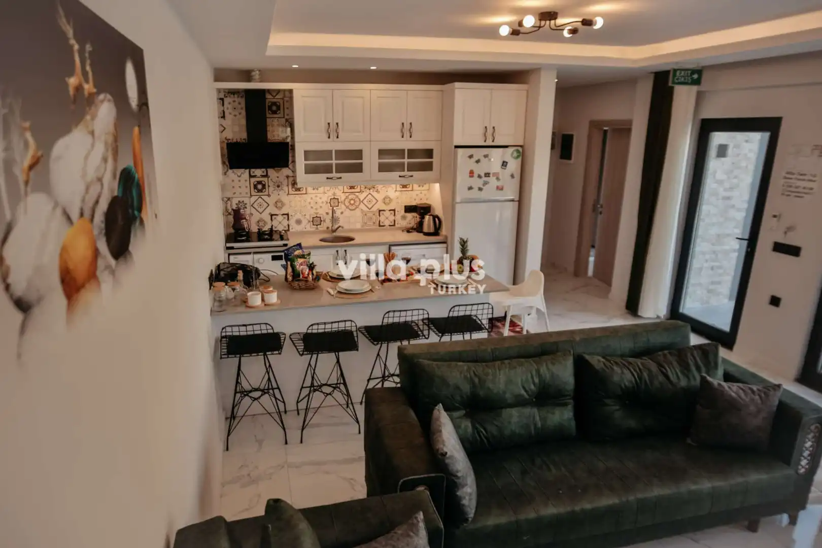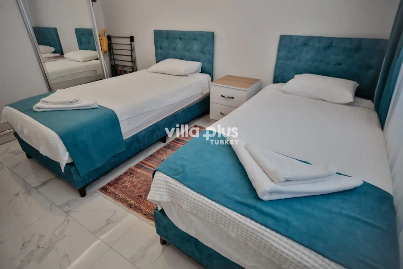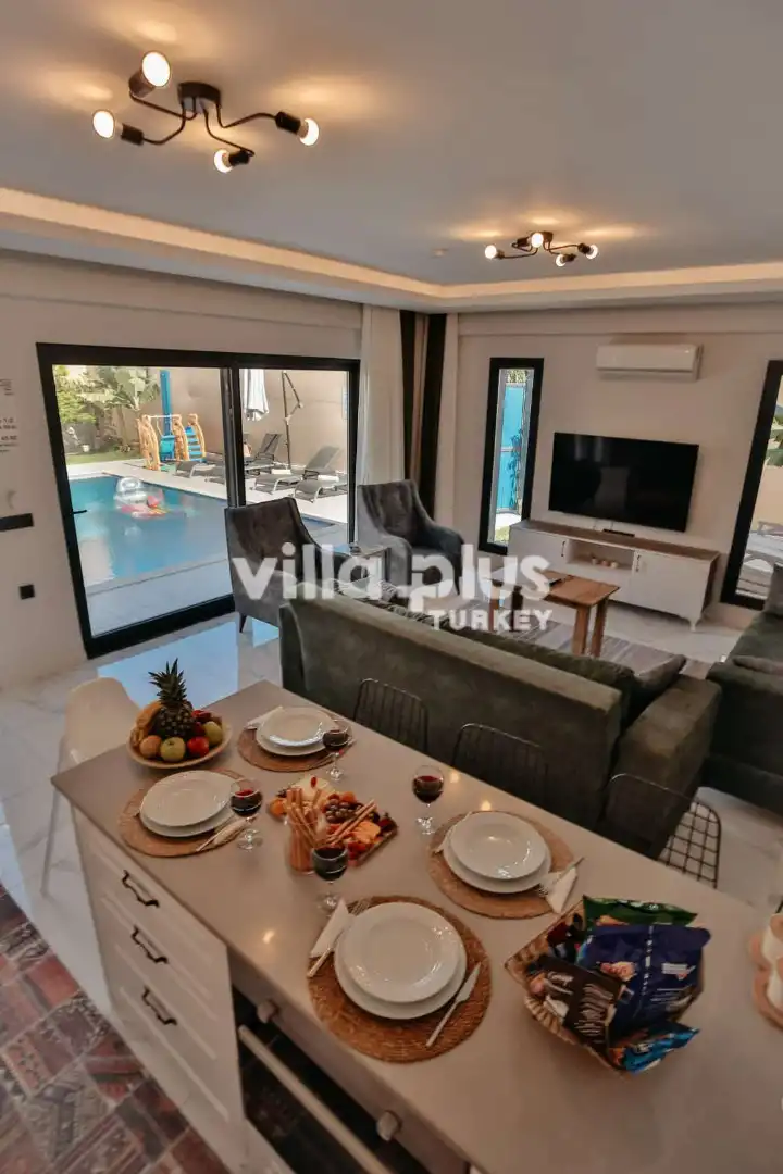 Villa Alin 2 is located in the Yanıklar area of Fethiye. It has a total of 2 bedrooms and can accommodate up to 4 guests. It is an ideal option for small families and honeymoon couples. The private pool is fully secluded and not visible from the outside. There is also a children’s pool for the little ones. Parking space is available. Accompanied by a beautiful nature view, Villa Alin 2 offers our valued guests a wonderful holiday experience.