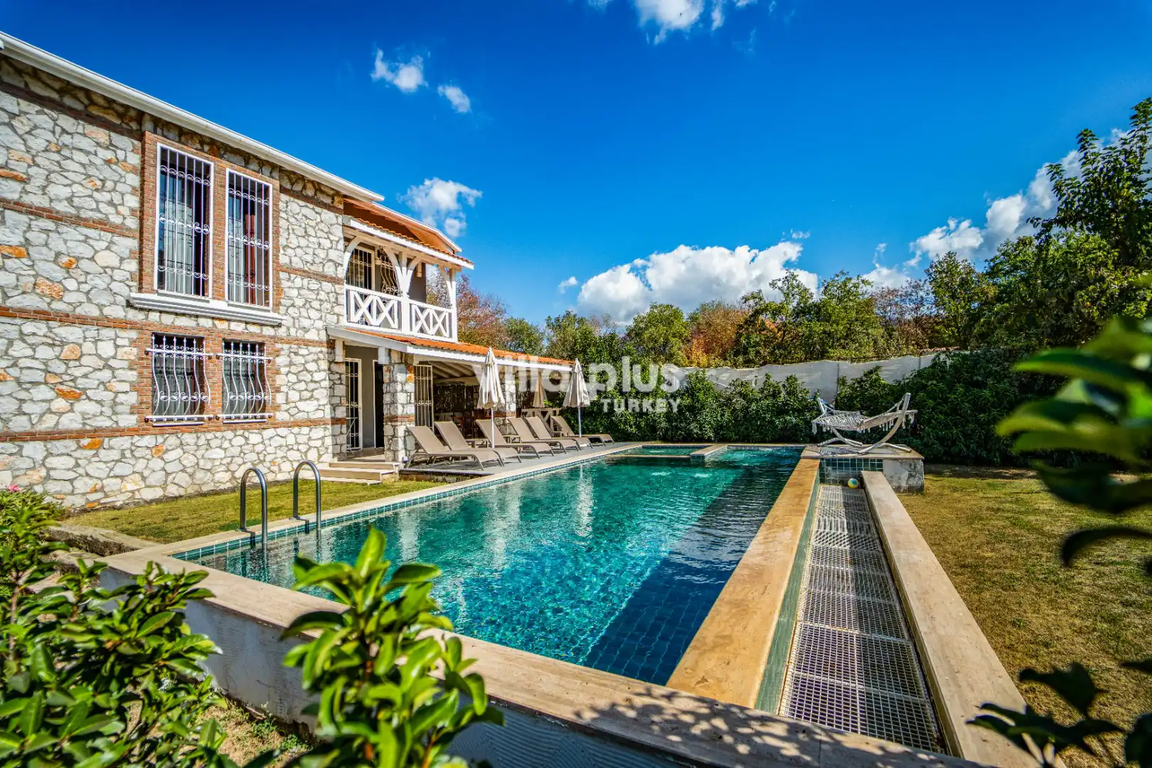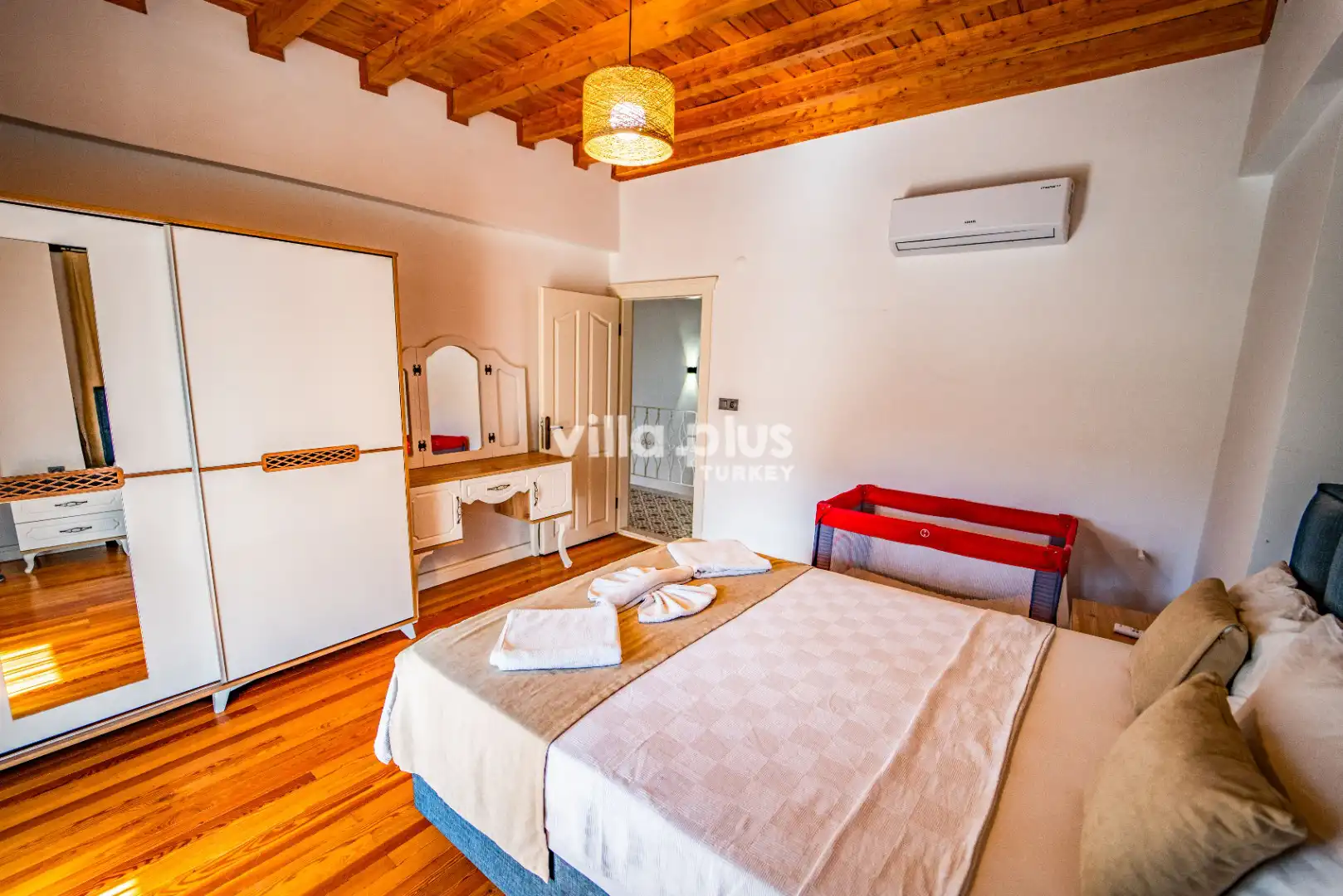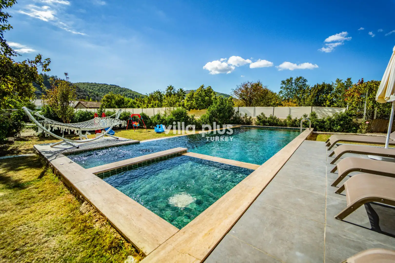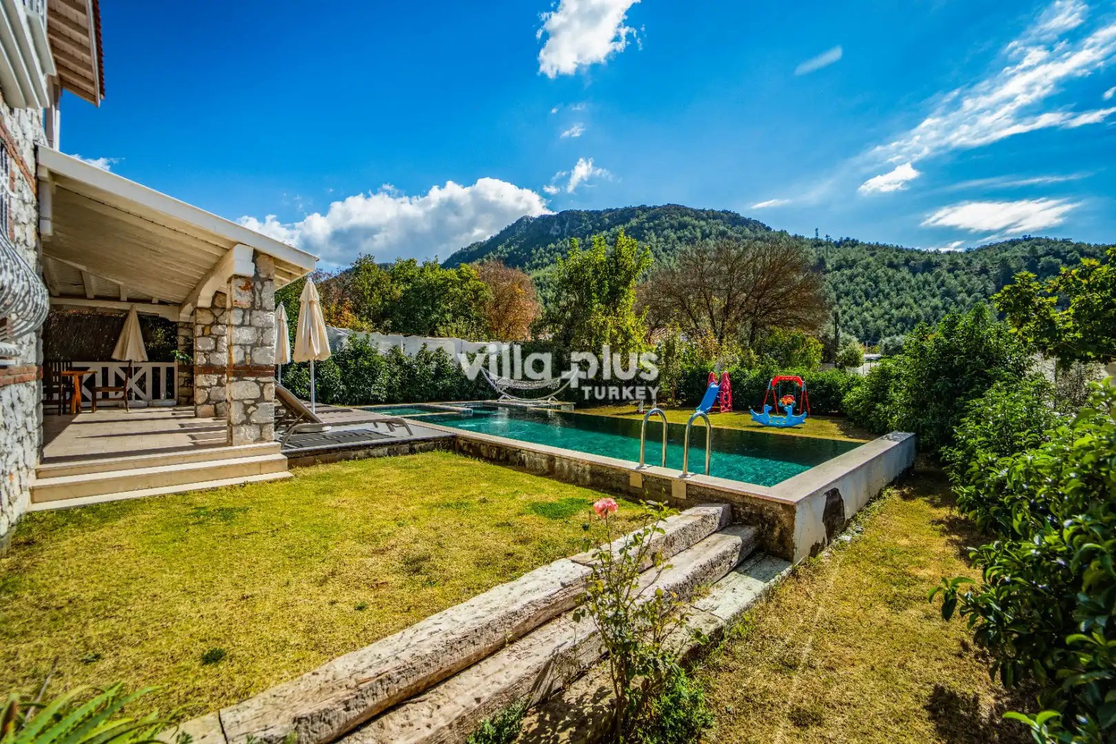 Nestled in the peaceful Kayaköy area of Fethiye, Villa Casa Mira is a lovely getaway that comfortably accommodates up to 6 guests — perfect for both small and large families. The villa features a spacious garden with plenty of room to relax, along with a children’s play area (including a swing, slide, and more) where little ones can have fun. Surrounded by nature, Villa Casa Mira offers a truly relaxing atmosphere. Wake up to the sound of birds and spend your days exploring Fethiye’s stunning natural beauty and nearby attractions.