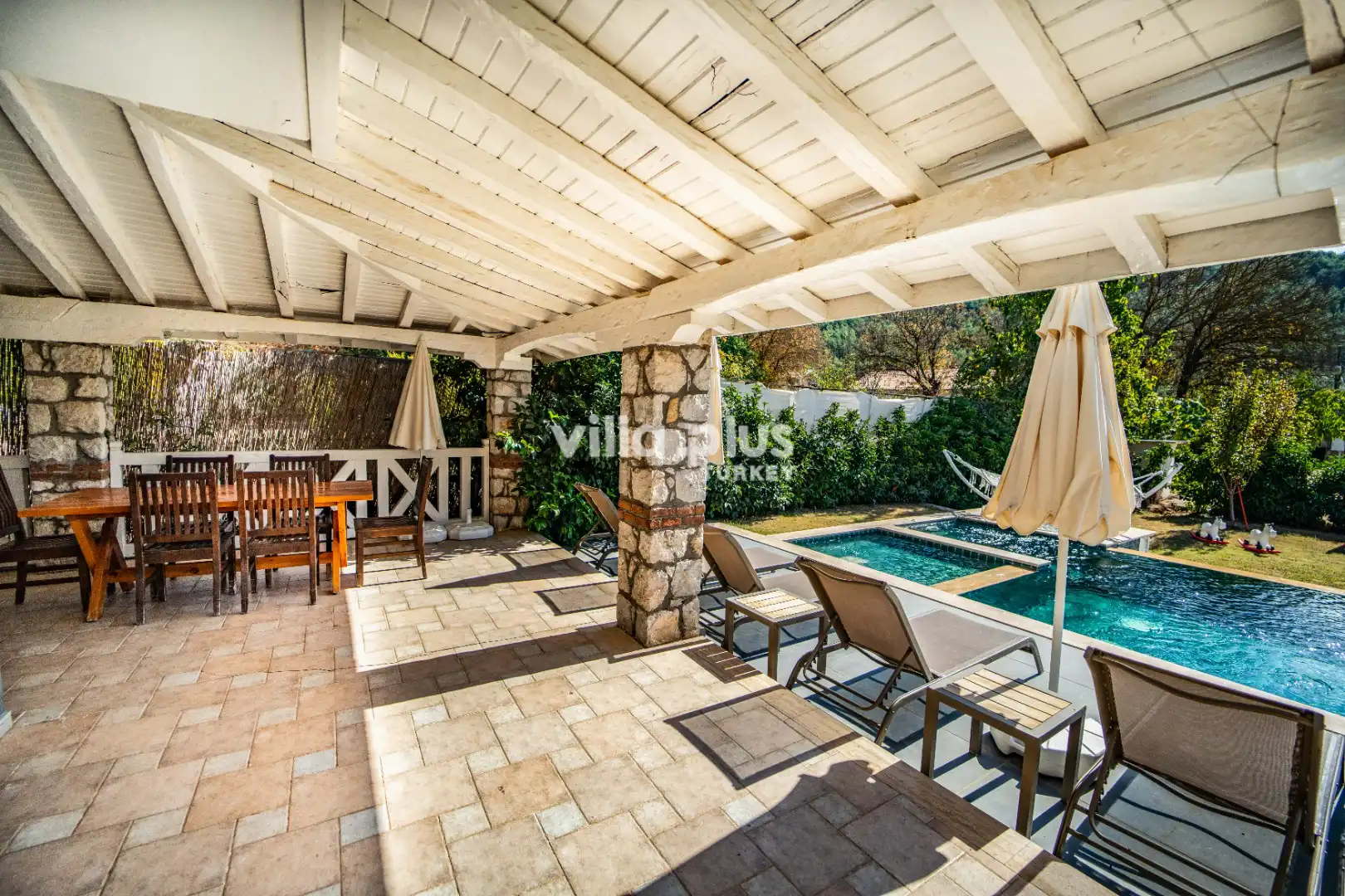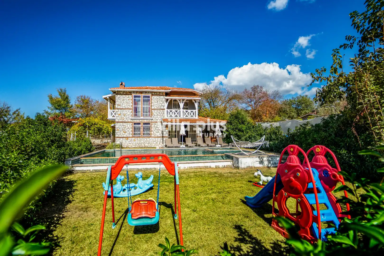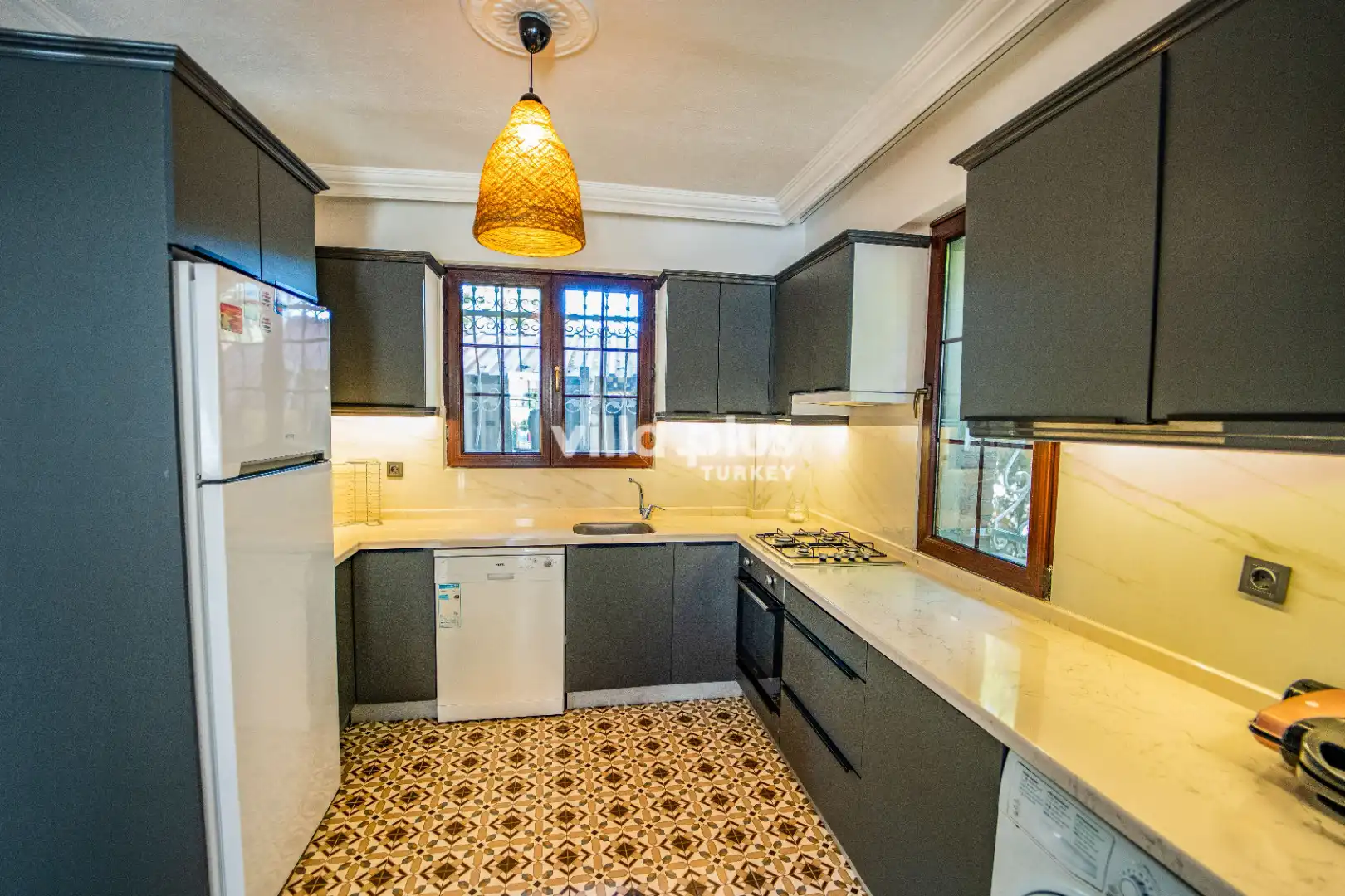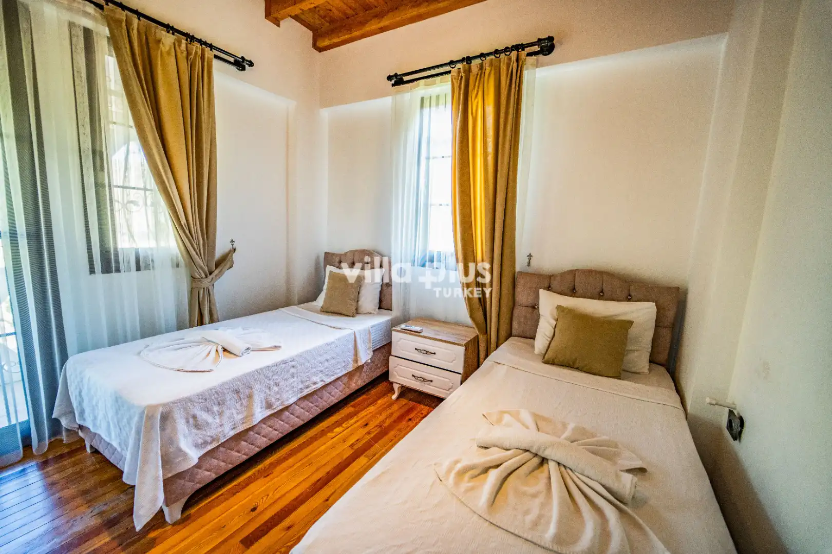 Nestled in the peaceful Kayaköy area of Fethiye, Villa Casa Mira is a lovely getaway that comfortably accommodates up to 6 guests — perfect for both small and large families. The villa features a spacious garden with plenty of room to relax, along with a children’s play area (including a swing, slide, and more) where little ones can have fun. Surrounded by nature, Villa Casa Mira offers a truly relaxing atmosphere. Wake up to the sound of birds and spend your days exploring Fethiye’s stunning natural beauty and nearby attractions.
