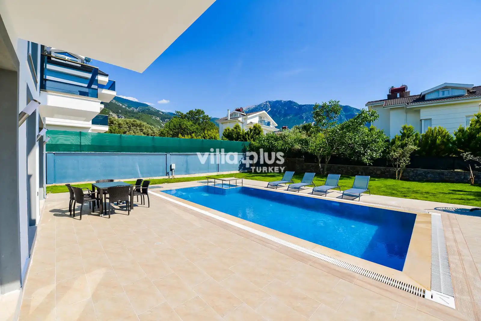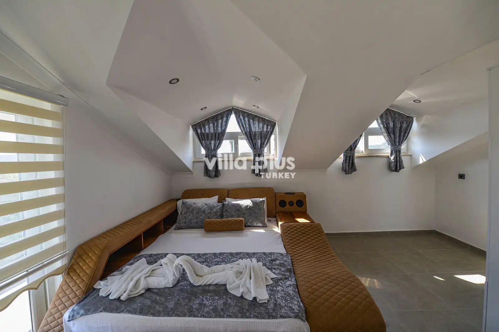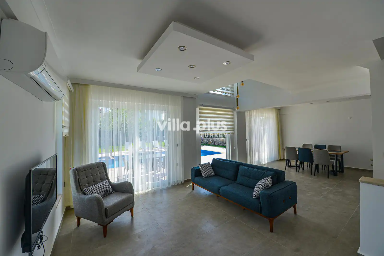 Villa Drakon is a luxurious 3-bedroom holiday villa located in the Ovacık area of Fethiye. The villa accommodates up to 6 guests and is an excellent choice for those seeking a peaceful holiday experience in a tranquil, nature-surrounded setting. The quiet atmosphere of Ovacık makes it an ideal getaway for families and groups of friends looking to escape the noise of the city. The villa is only 3 km from the center of Hisarönü, providing easy access to shopping stores and entertainment venues.