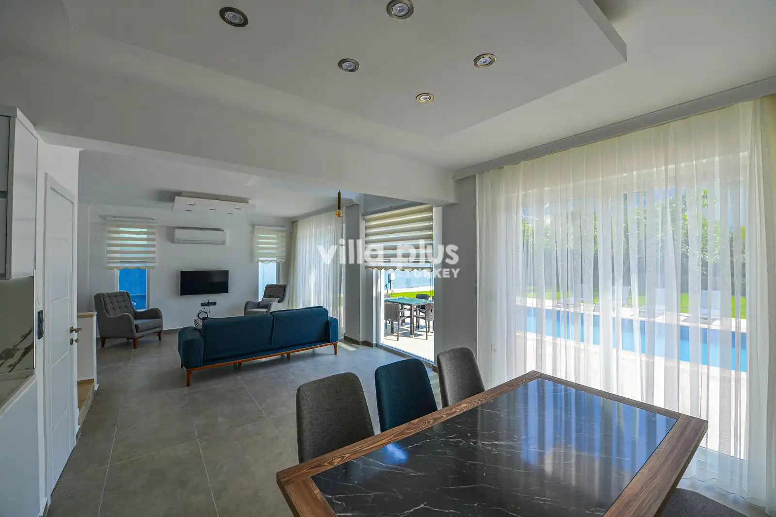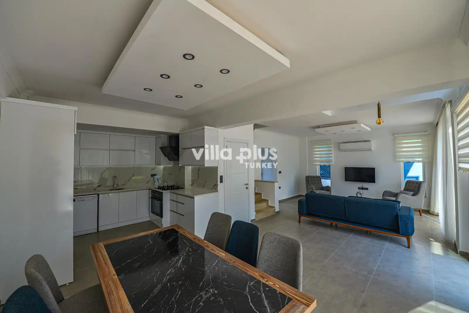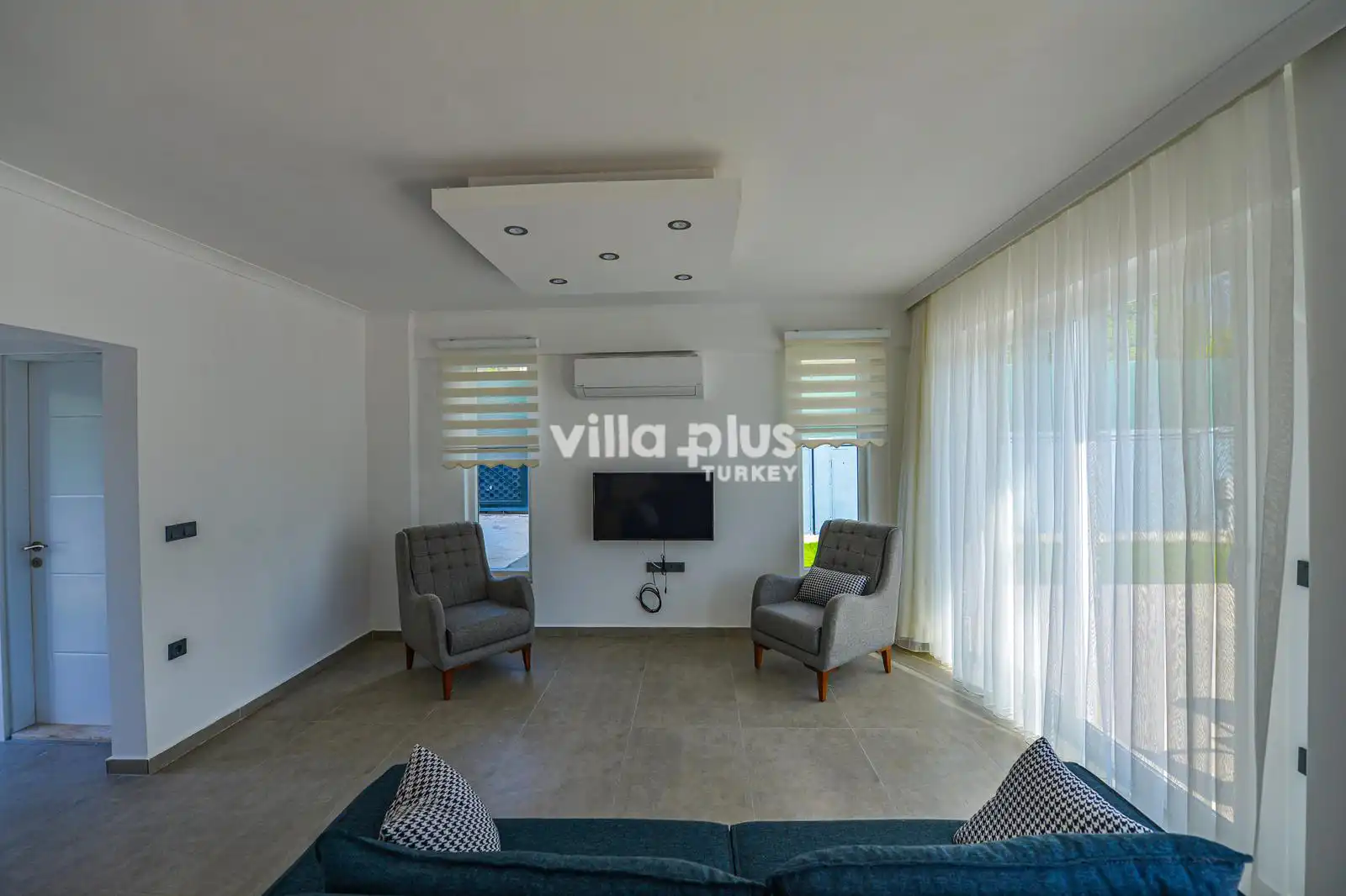 Villa Drakon is a luxurious 3-bedroom holiday villa located in the Ovacık area of Fethiye. The villa accommodates up to 6 guests and is an excellent choice for those seeking a peaceful holiday experience in a tranquil, nature-surrounded setting. The quiet atmosphere of Ovacık makes it an ideal getaway for families and groups of friends looking to escape the noise of the city. The villa is only 3 km from the center of Hisarönü, providing easy access to shopping stores and entertainment venues.