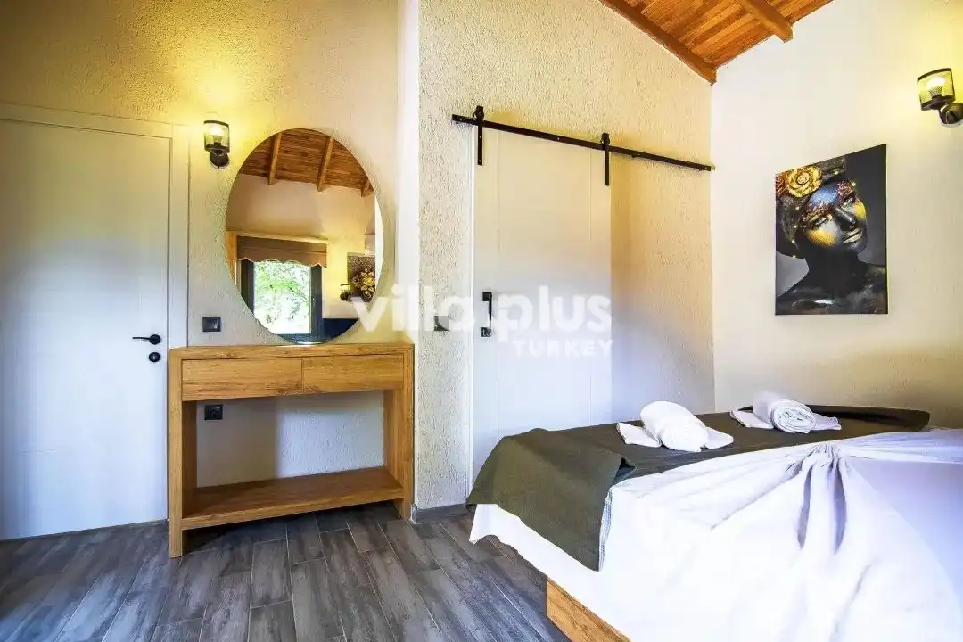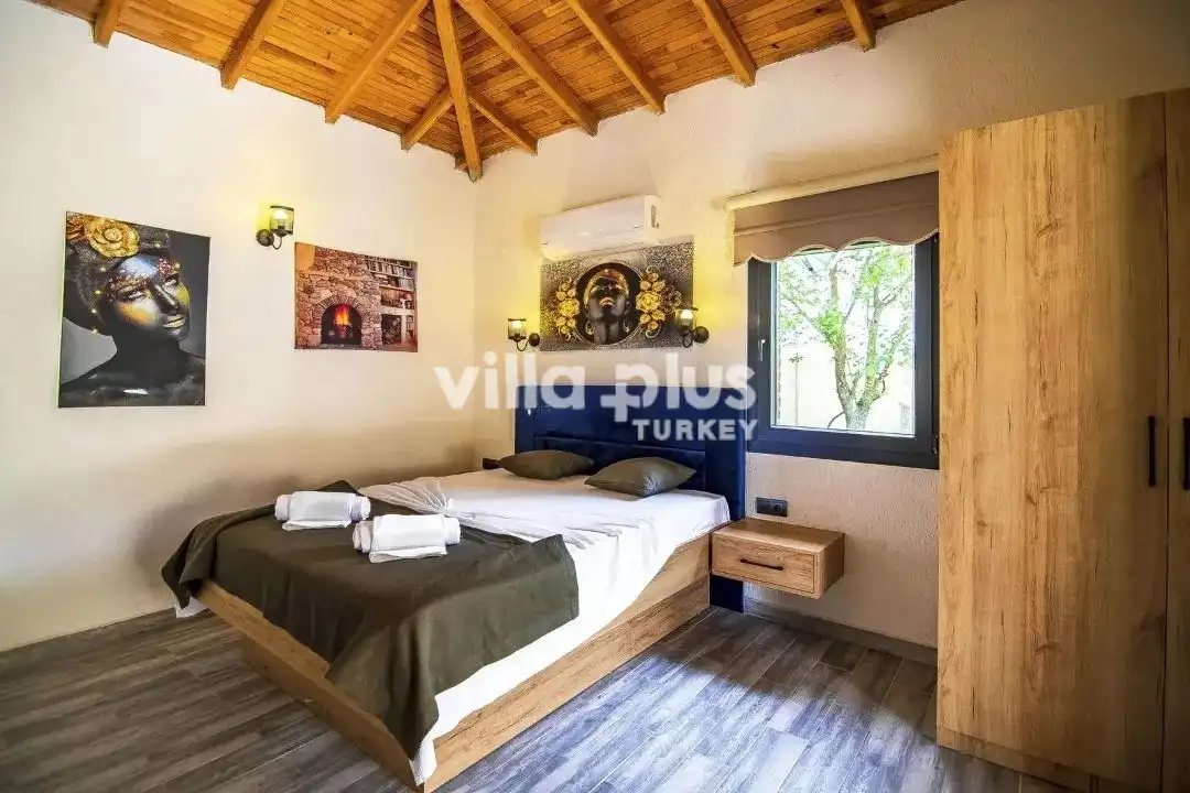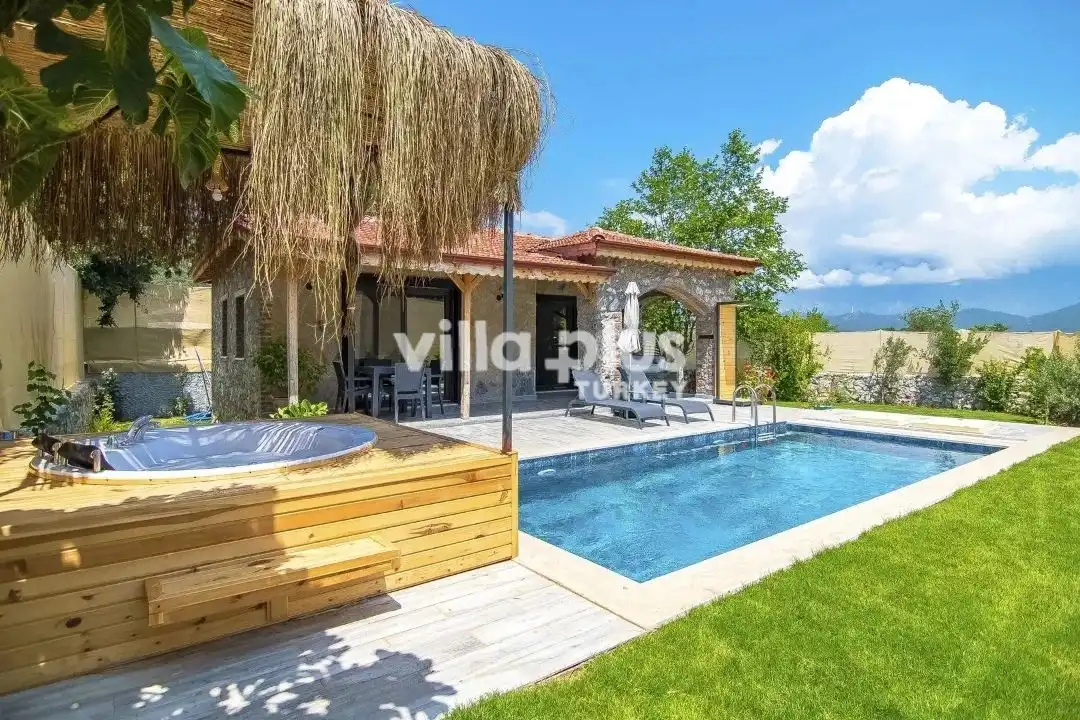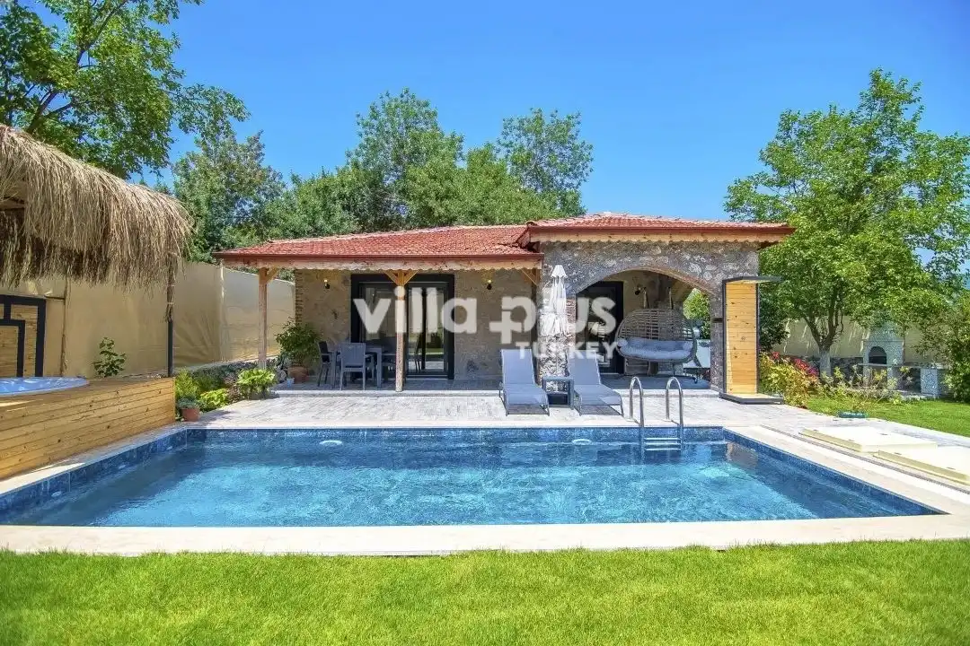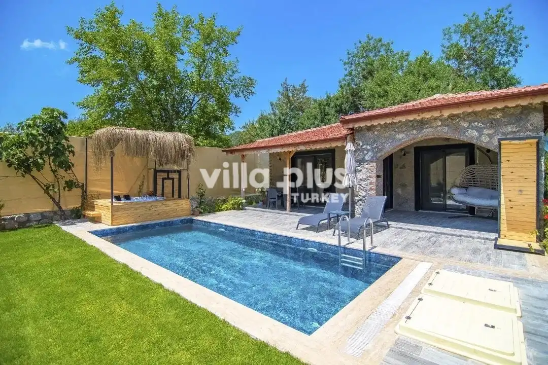 Villa Elarose, located in Fethiye Kayaköy, is a one-bedroom villa with a capacity for 2 guests. Featuring a spacious garden terrace, its pool area is private, making it ideal for couples seeking privacy. With a private pool and jacuzzi, this villa is specially designed as a rental honeymoon villa for newlyweds.