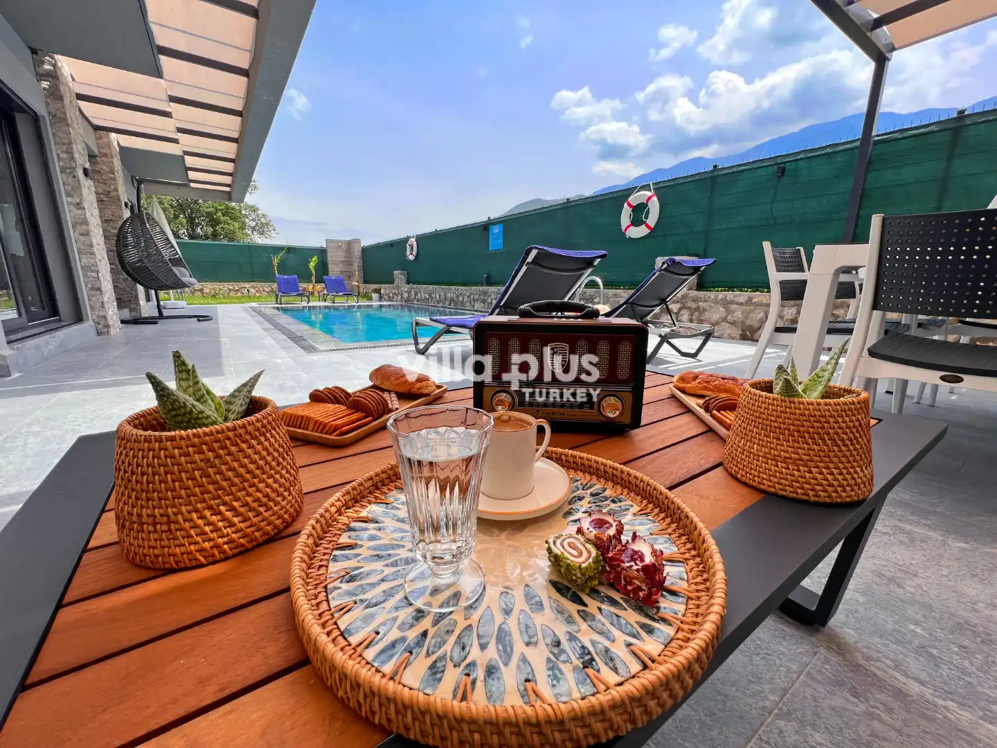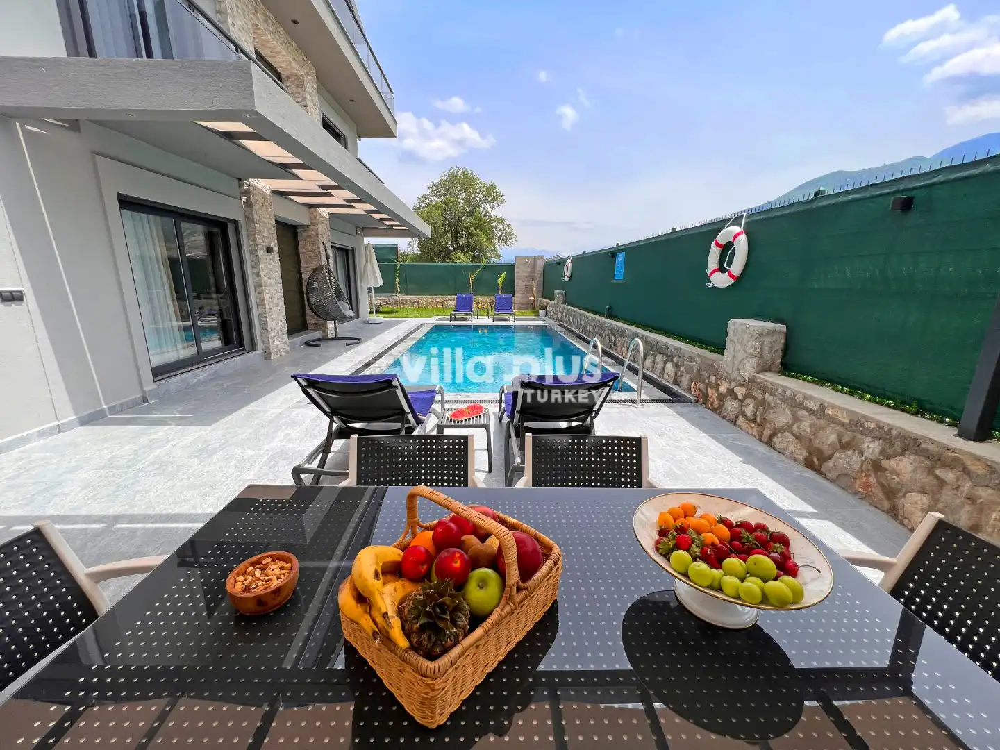 Villa Elbina is a modern villa located in the Esenköy area of Fethiye, built in 2023.