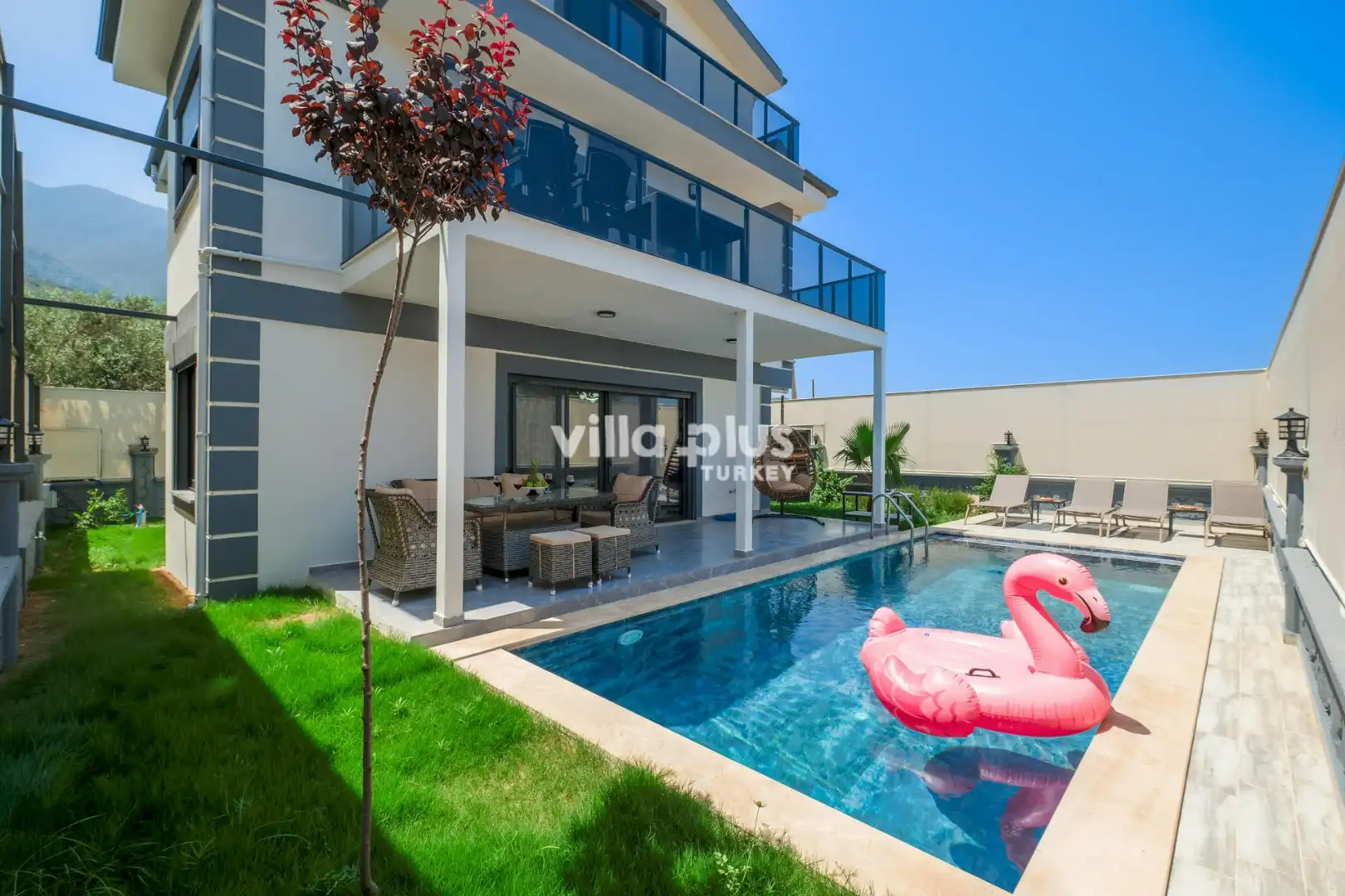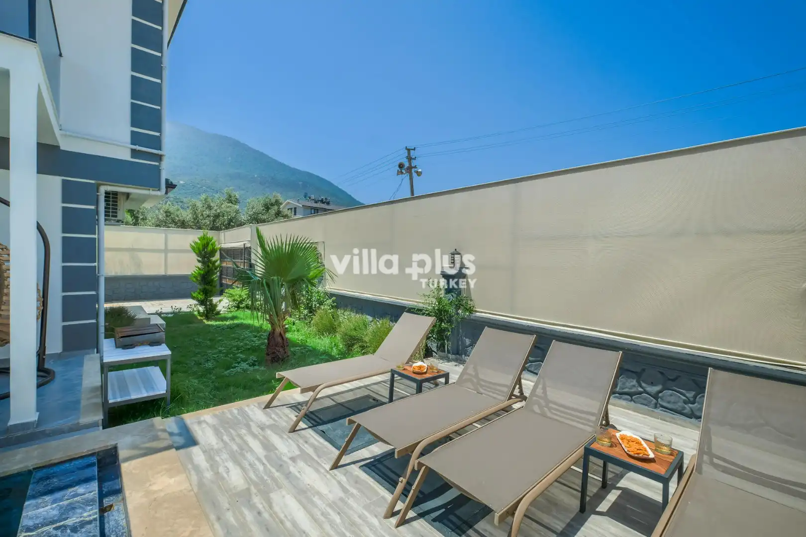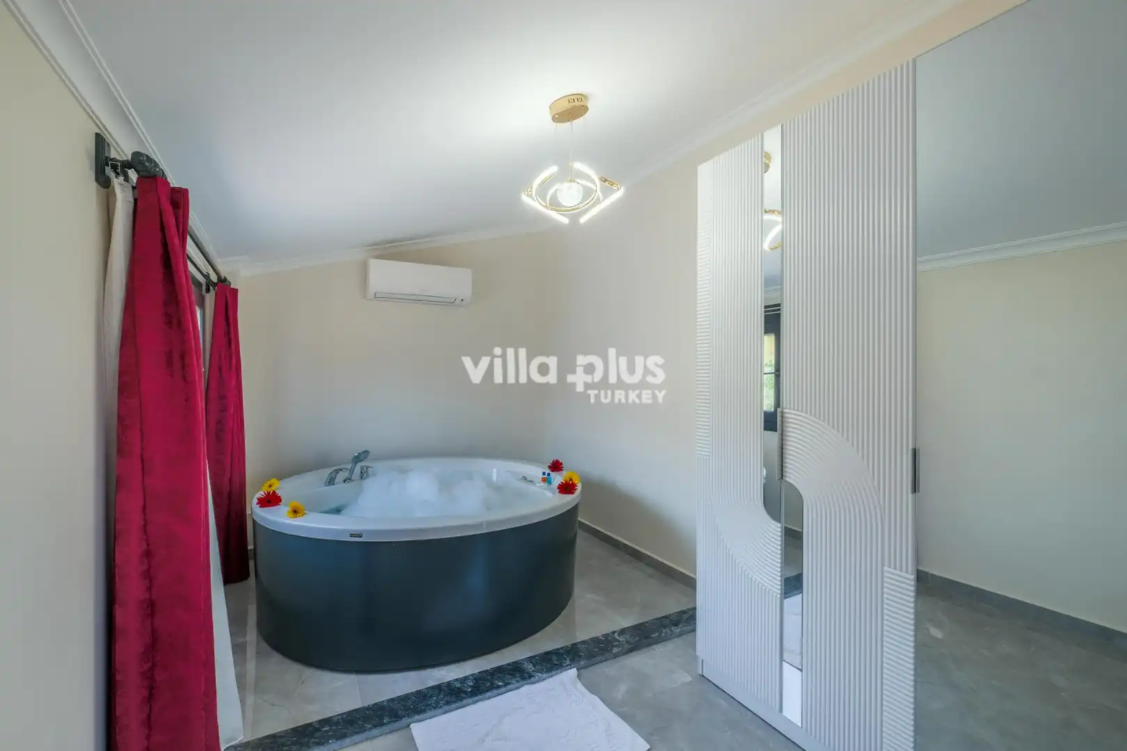 Located in the popular Karaçulha area of Fethiye, this modern and luxurious villa offers an ideal holiday option for large families with its 6-person capacity and 3 spacious bedrooms. You can enjoy the sun in the private pool and unwind in the jacuzzi, designed with a modern touch, to relieve the day’s stress.