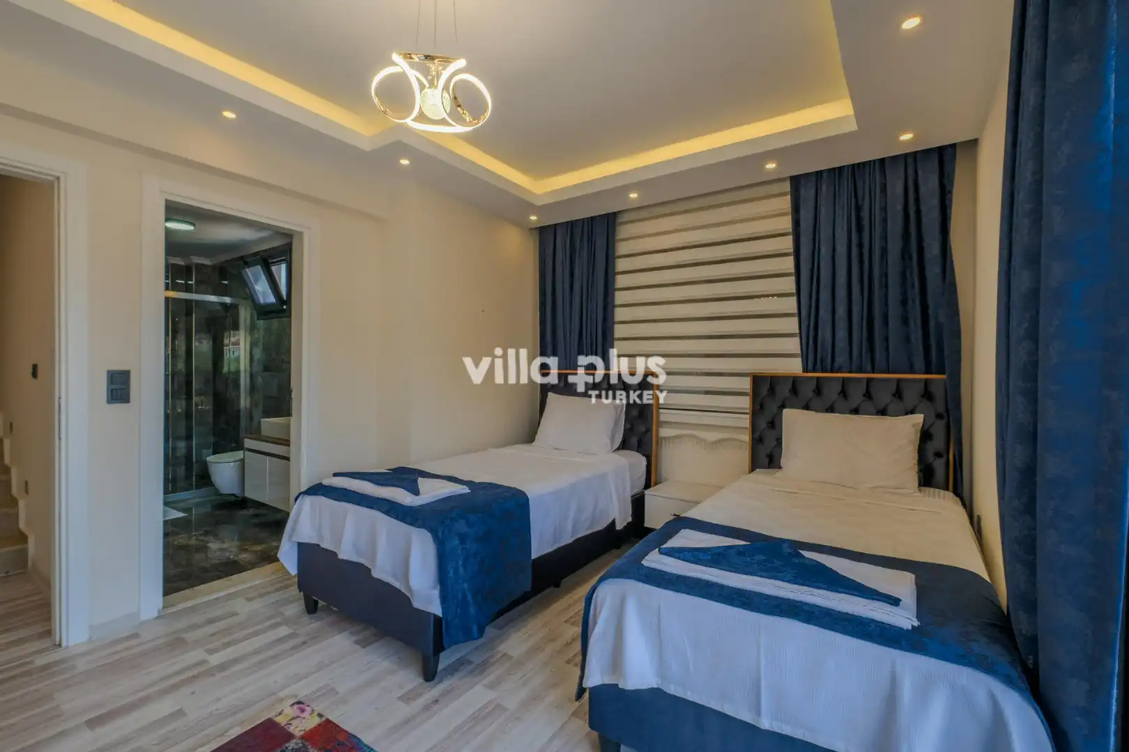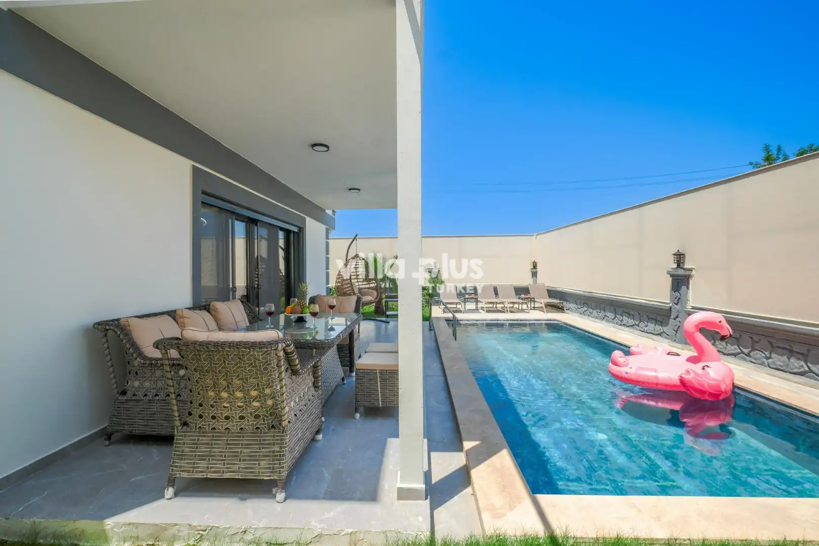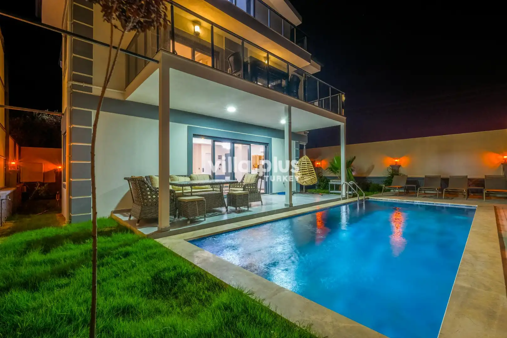 Located in the popular Karaçulha area of Fethiye, this modern and luxurious villa offers an ideal holiday option for large families with its 6-person capacity and 3 spacious bedrooms. You can enjoy the sun in the private pool and unwind in the jacuzzi, designed with a modern touch, to relieve the day’s stress.