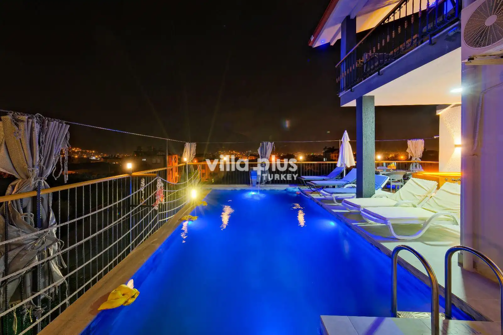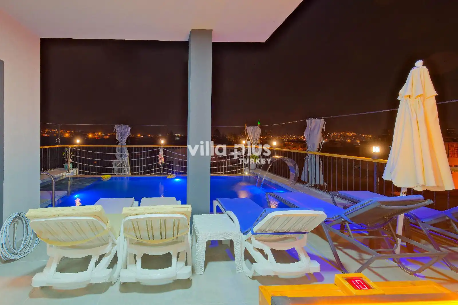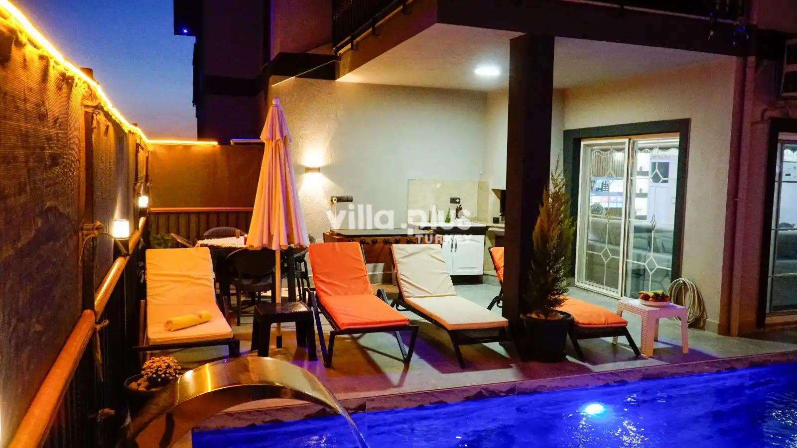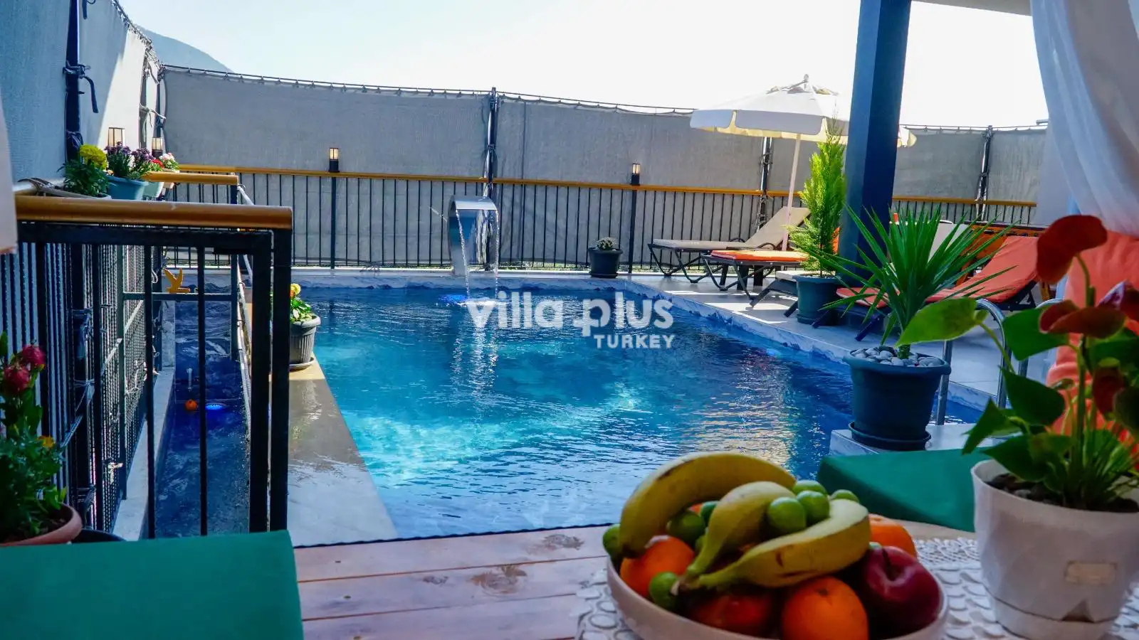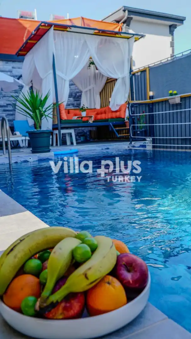 Villa Esin is a two-storey villa located in Fethiye, one of the distinguished holiday resorts of our country, attracting attention with its modern architecture. With 3 bedrooms and 2 bathrooms and toilets, our villa stands out as an ideal option for large families and crowded groups of friends with an accommodation capacity of 7 people with a children's bed. You can relieve the tiredness of the year with the jacuzzi in the pool area of our villa, and you can cool off in hot weather with the sheltered private swimming pool. Our villa with its private swimming pool, comfortable sun loungers and barbecue, indispensable for the summer months, awaits guests who want to spend a secluded and peaceful holiday.