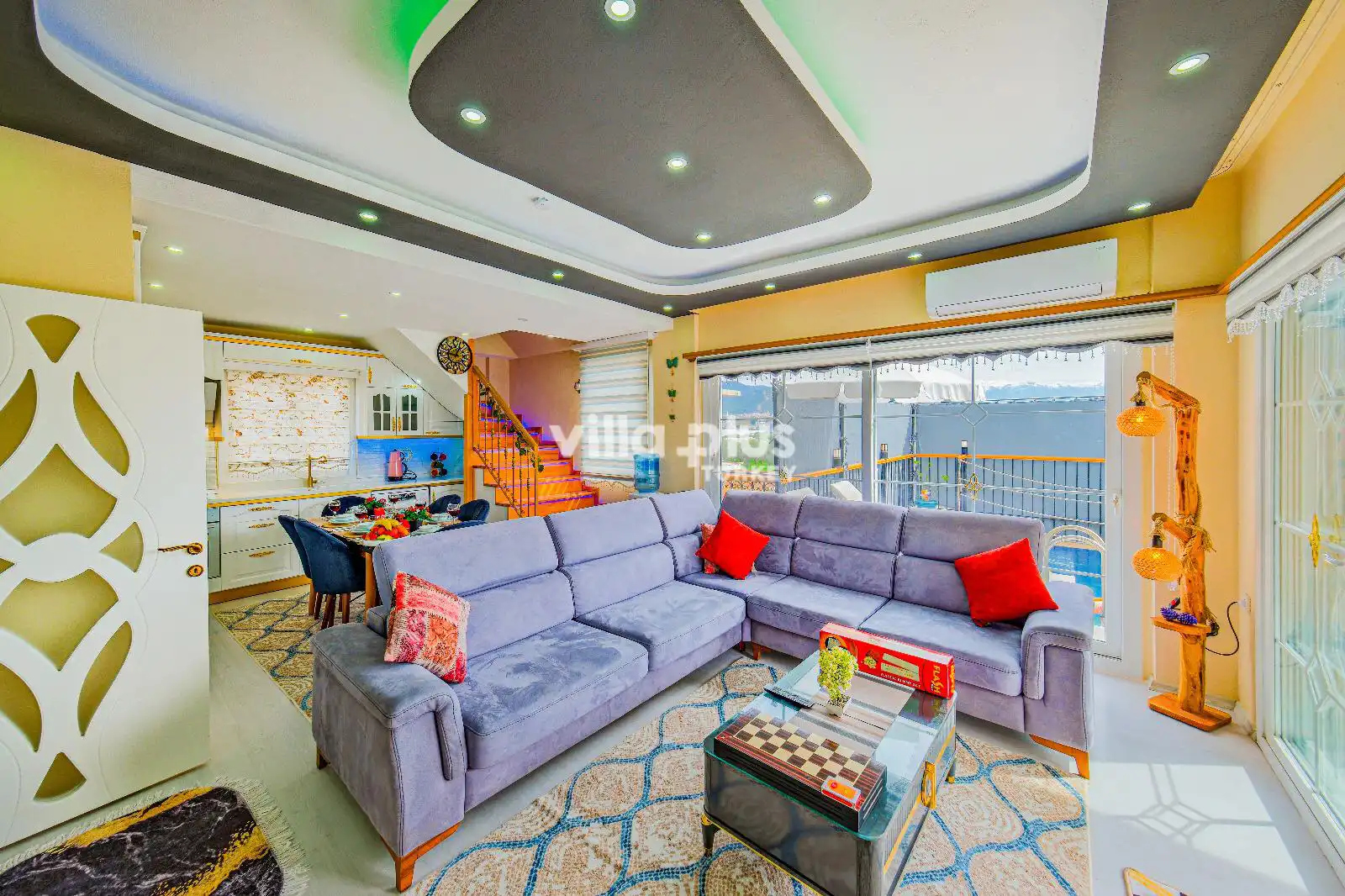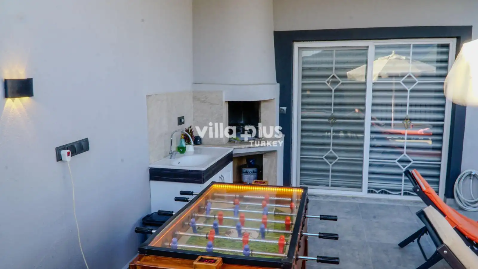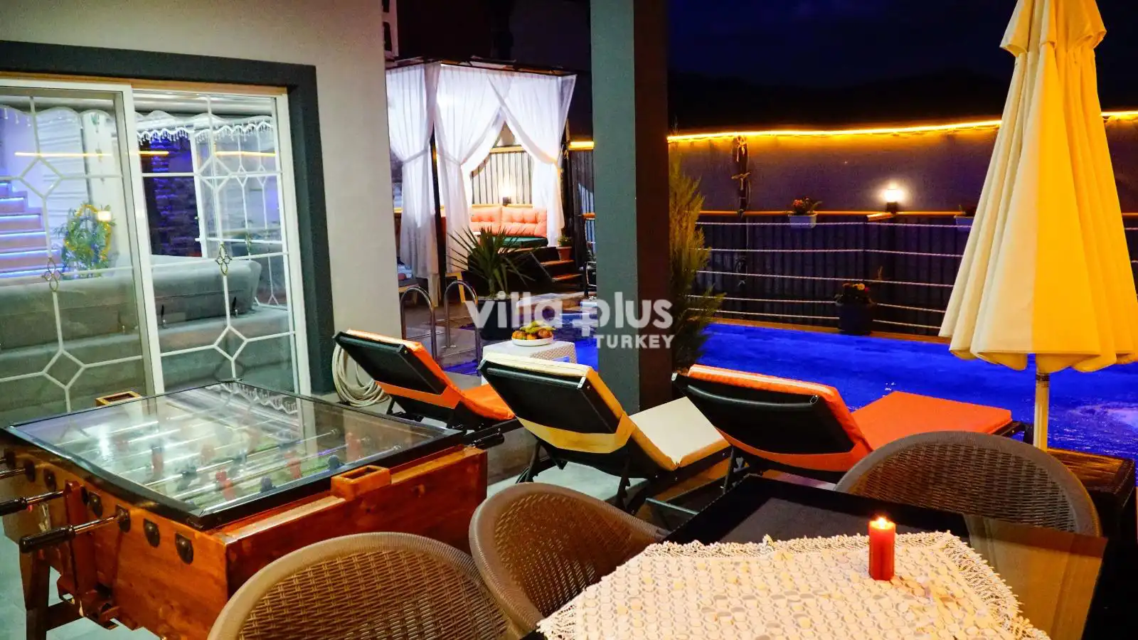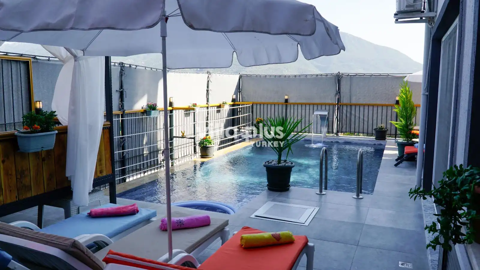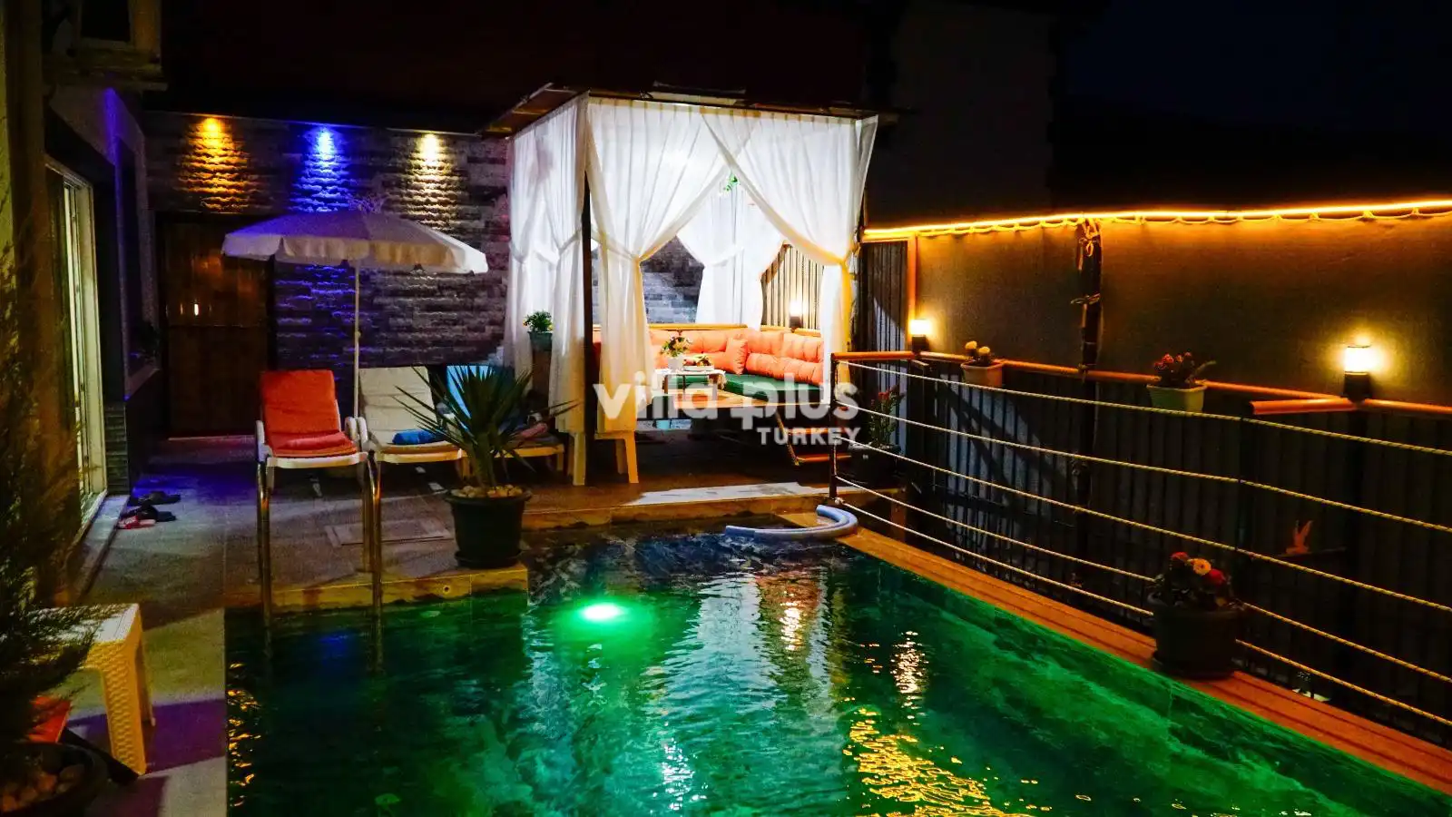 Villa Esin is a two-storey villa located in Fethiye, one of the distinguished holiday resorts of our country, attracting attention with its modern architecture. With 3 bedrooms and 2 bathrooms and toilets, our villa stands out as an ideal option for large families and crowded groups of friends with an accommodation capacity of 7 people with a children's bed. You can relieve the tiredness of the year with the jacuzzi in the pool area of our villa, and you can cool off in hot weather with the sheltered private swimming pool. Our villa with its private swimming pool, comfortable sun loungers and barbecue, indispensable for the summer months, awaits guests who want to spend a secluded and peaceful holiday.