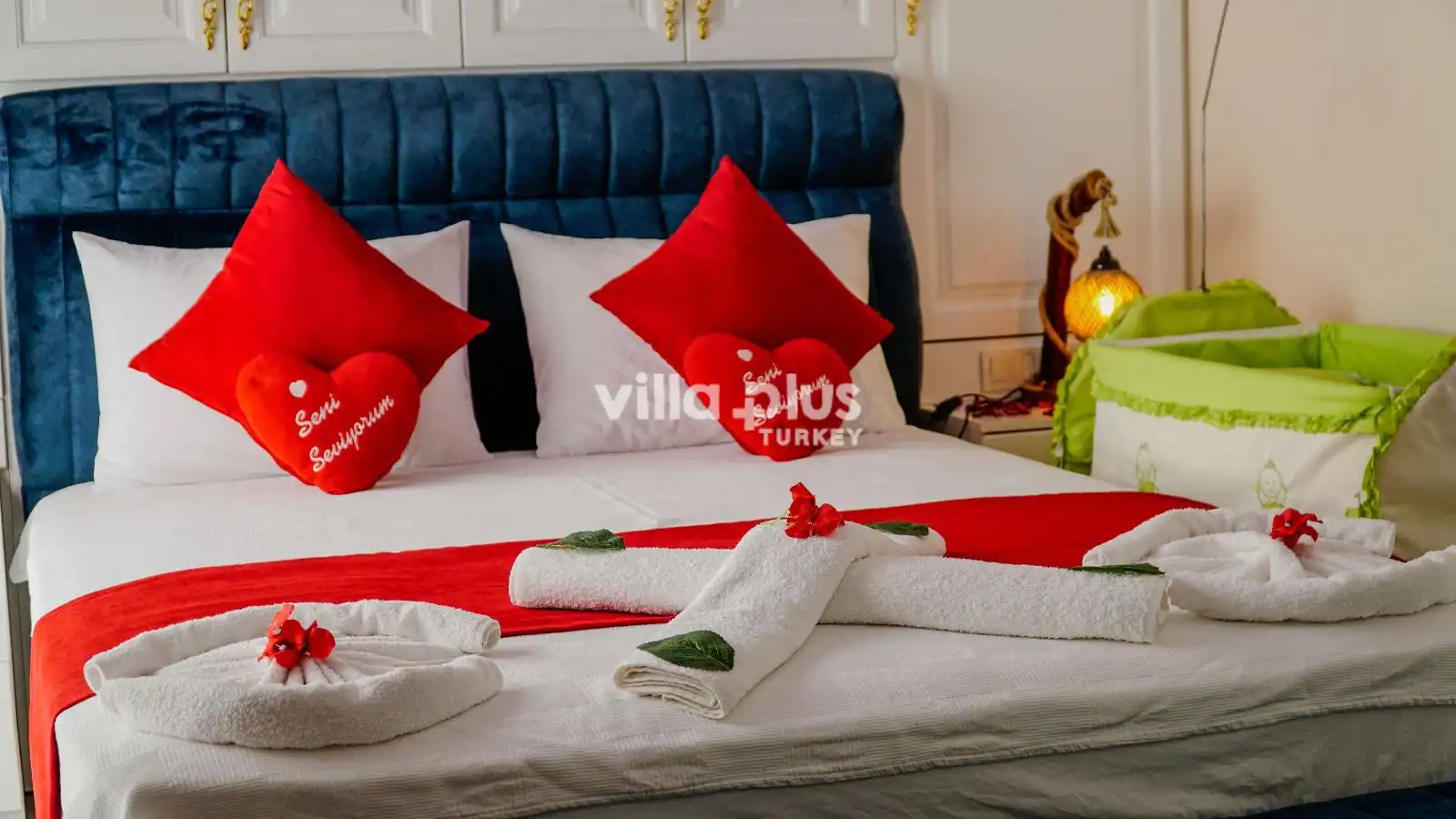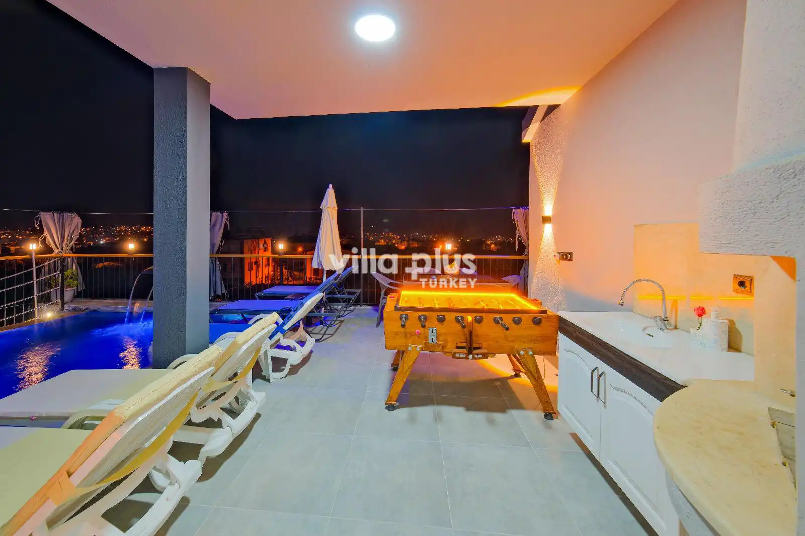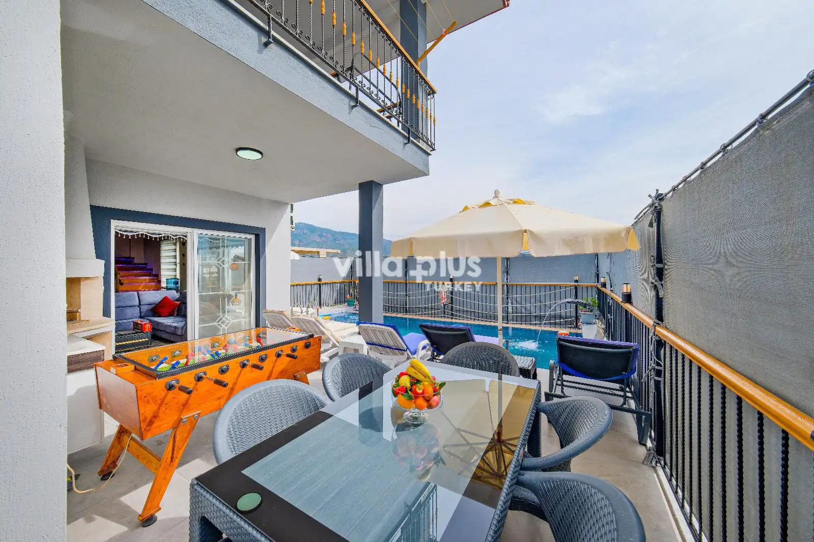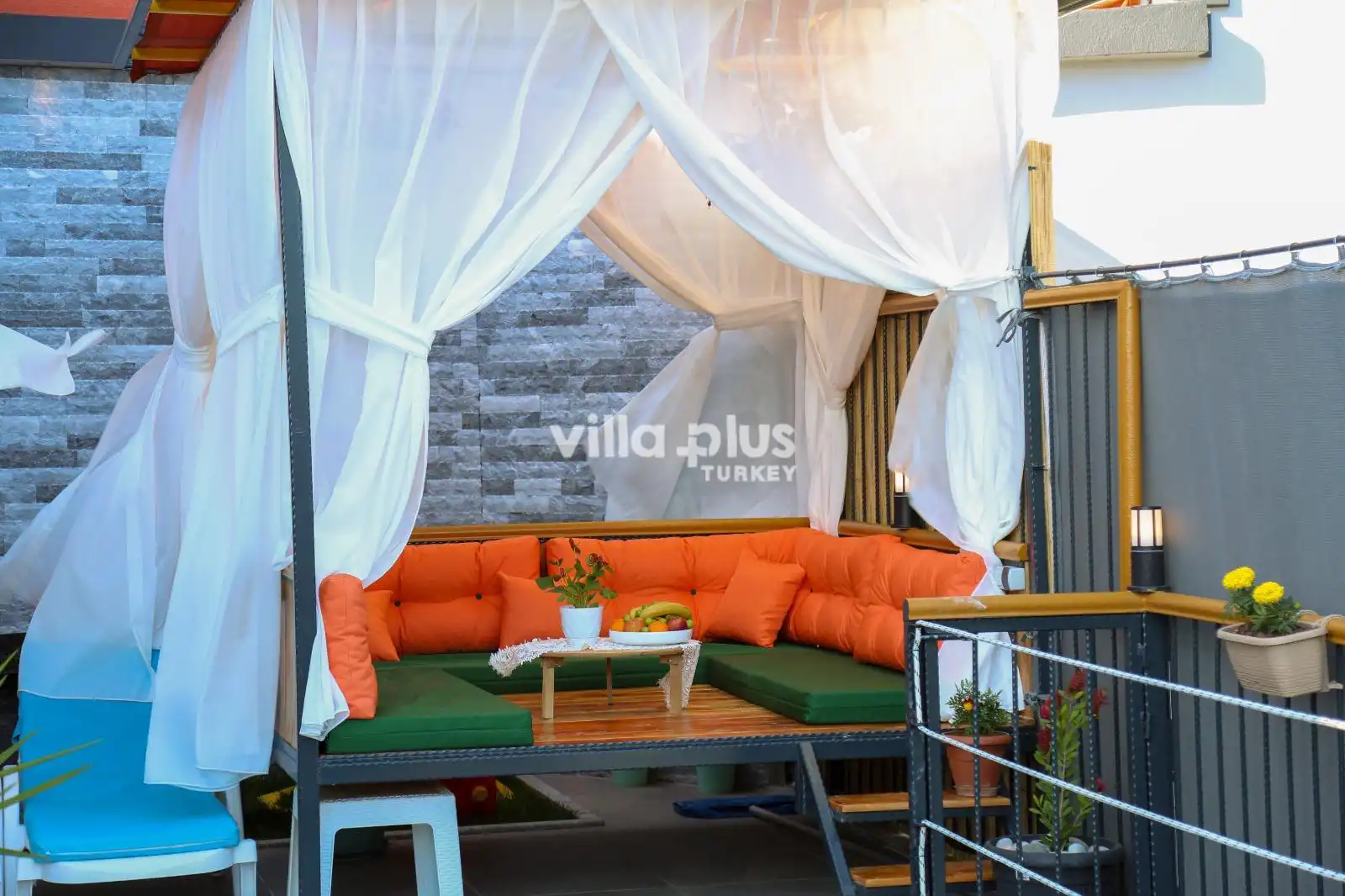 Villa Esin is a two-storey villa located in Fethiye, one of the distinguished holiday resorts of our country, attracting attention with its modern architecture. With 3 bedrooms and 2 bathrooms and toilets, our villa stands out as an ideal option for large families and crowded groups of friends with an accommodation capacity of 7 people with a children's bed. You can relieve the tiredness of the year with the jacuzzi in the pool area of our villa, and you can cool off in hot weather with the sheltered private swimming pool. Our villa with its private swimming pool, comfortable sun loungers and barbecue, indispensable for the summer months, awaits guests who want to spend a secluded and peaceful holiday.