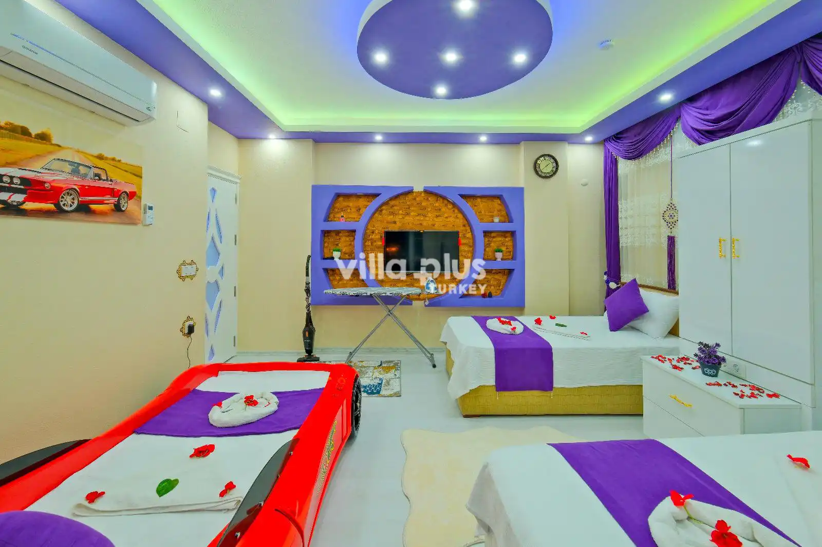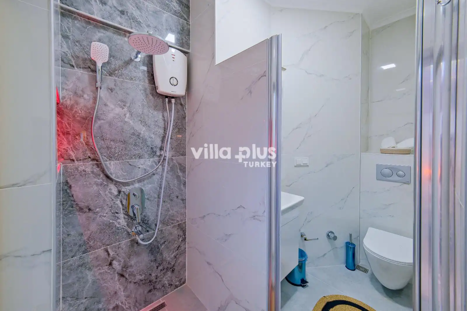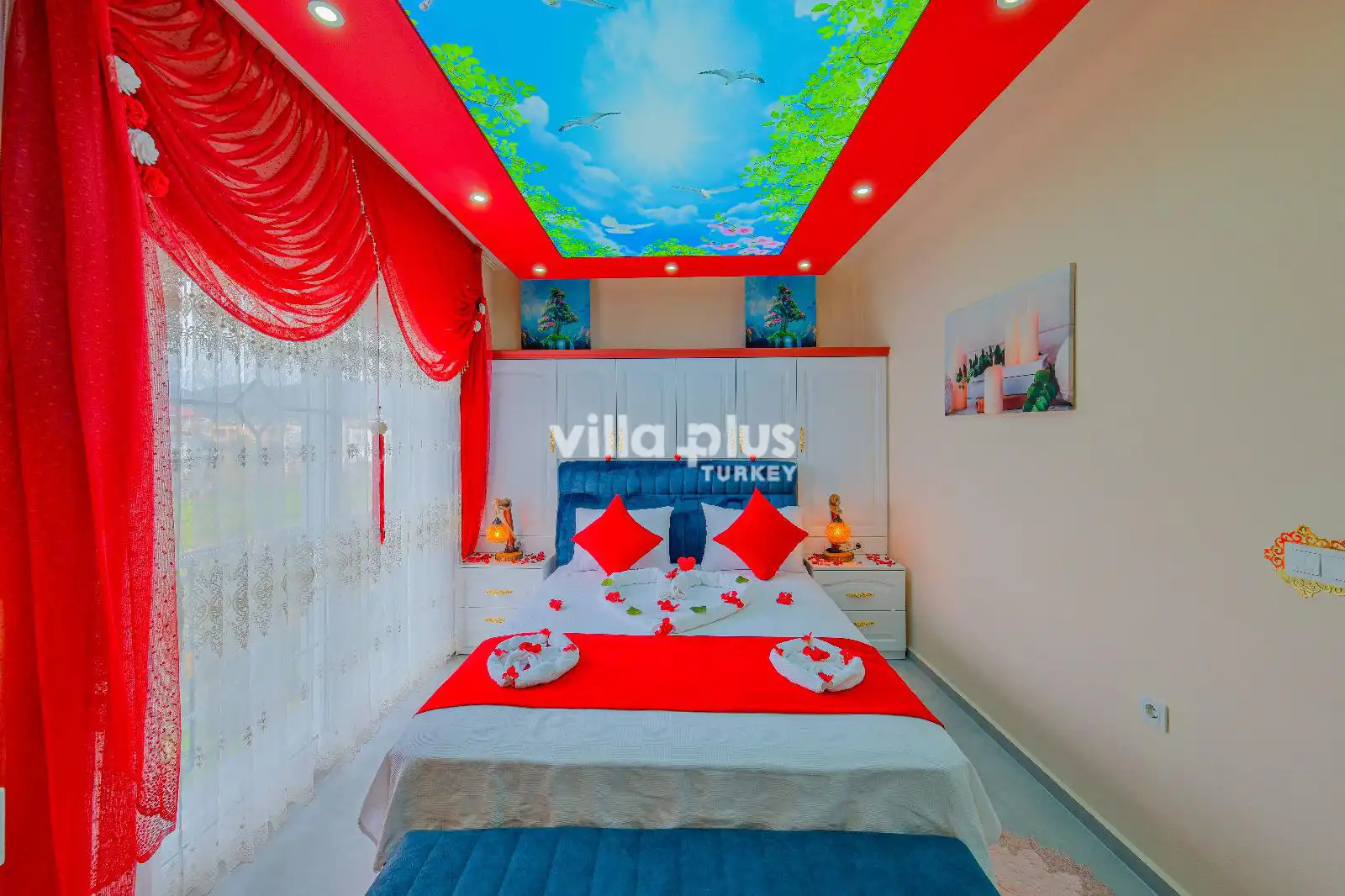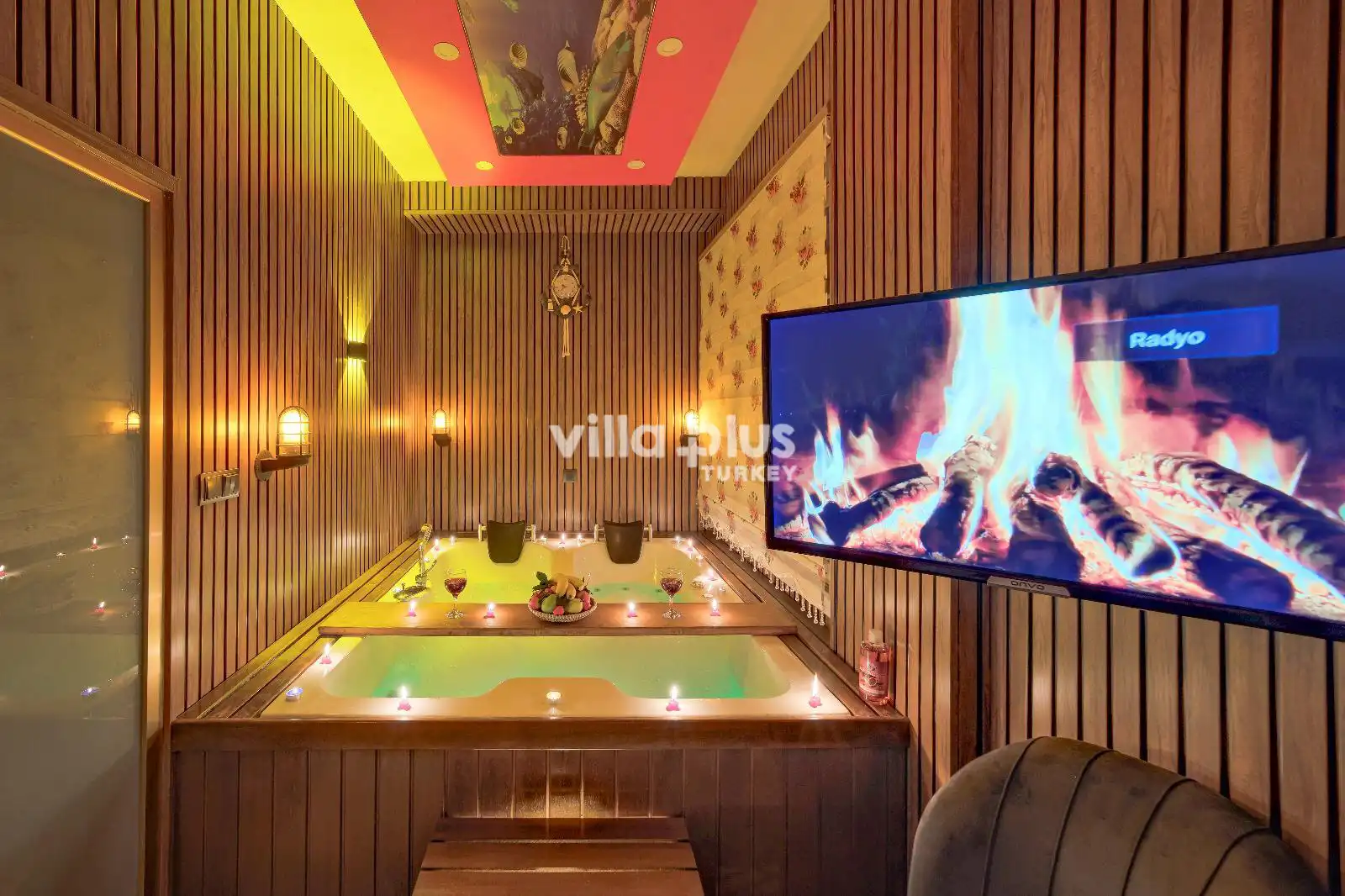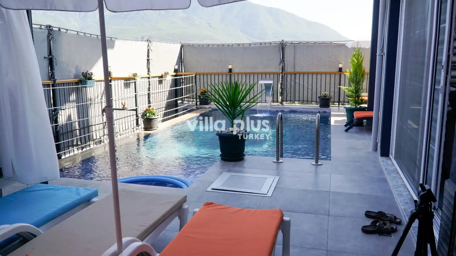 Villa Esin is a two-storey villa located in Fethiye, one of the distinguished holiday resorts of our country, attracting attention with its modern architecture. With 3 bedrooms and 2 bathrooms and toilets, our villa stands out as an ideal option for large families and crowded groups of friends with an accommodation capacity of 7 people with a children's bed. You can relieve the tiredness of the year with the jacuzzi in the pool area of our villa, and you can cool off in hot weather with the sheltered private swimming pool. Our villa with its private swimming pool, comfortable sun loungers and barbecue, indispensable for the summer months, awaits guests who want to spend a secluded and peaceful holiday.