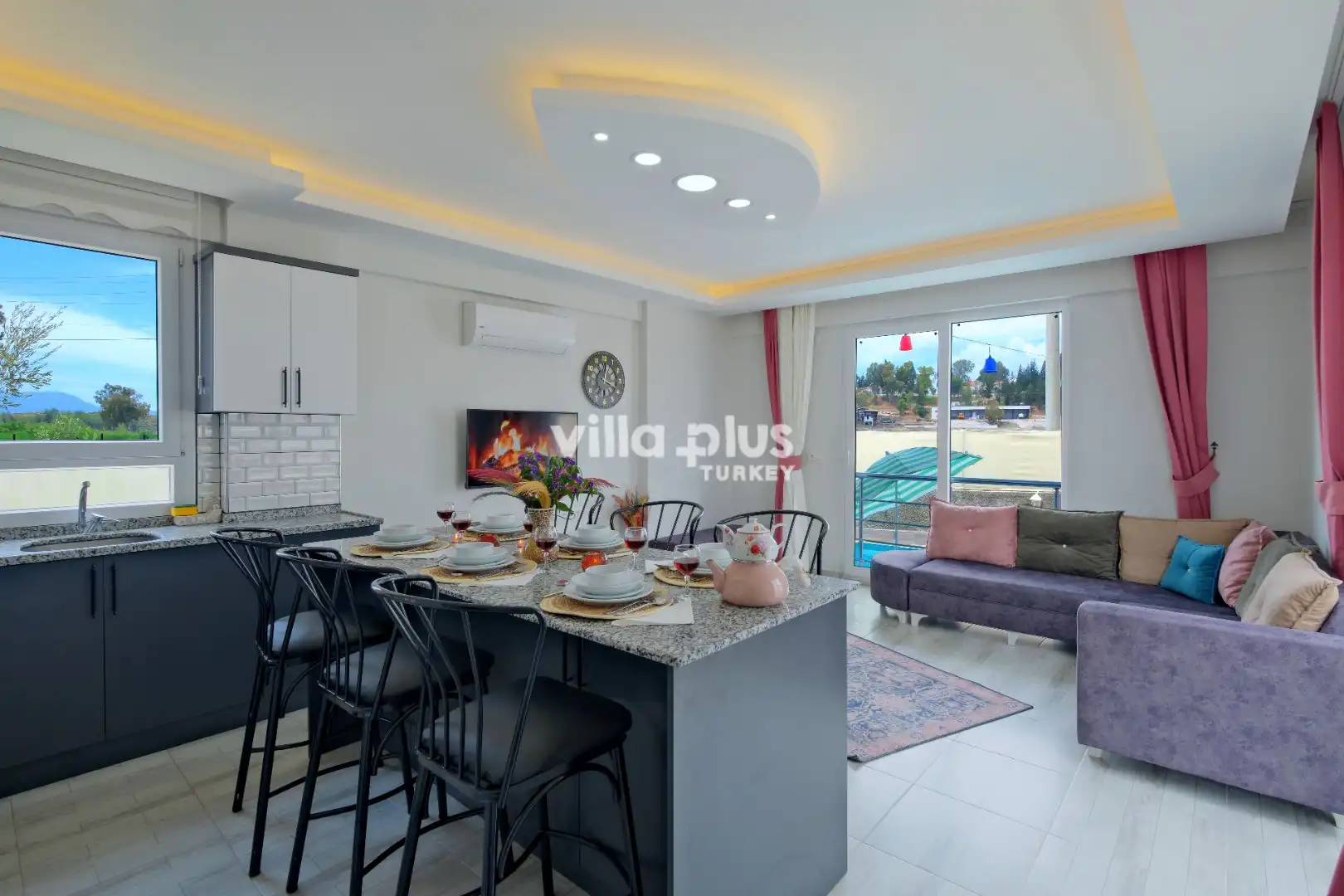 Villa Fioro is located in the popular Çalış area of Fethiye. Just a 5-minute walk from the beach, Villa Fioro welcomes you as a comfortable holiday home for 6 people. Completed in July 2022, this modern villa offers a unique holiday experience to its guests with its peaceful location and proximity to the beach.