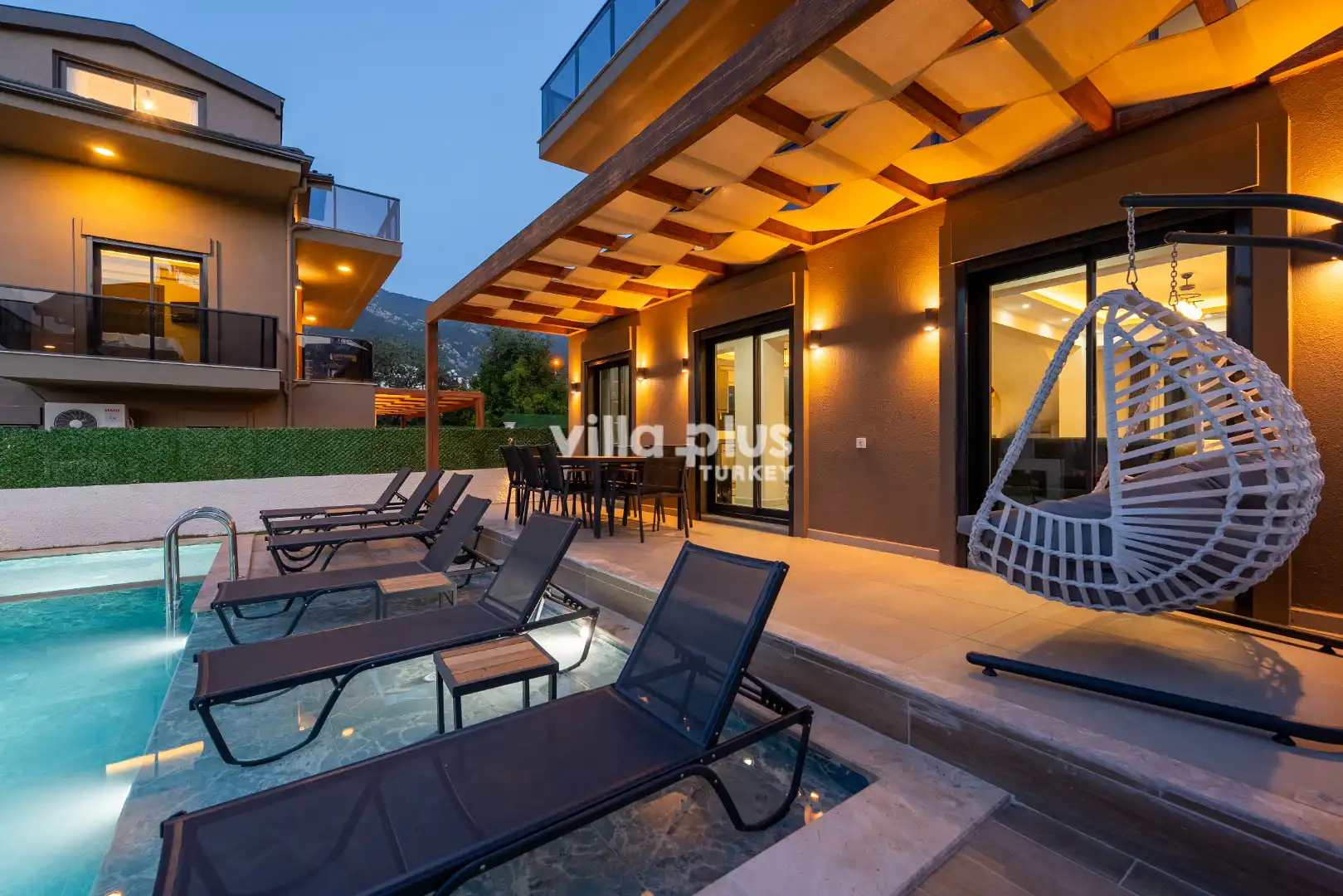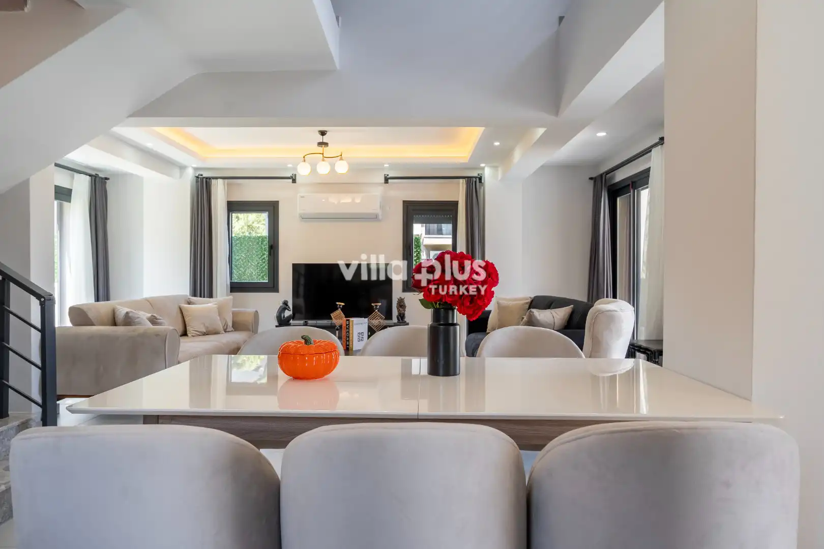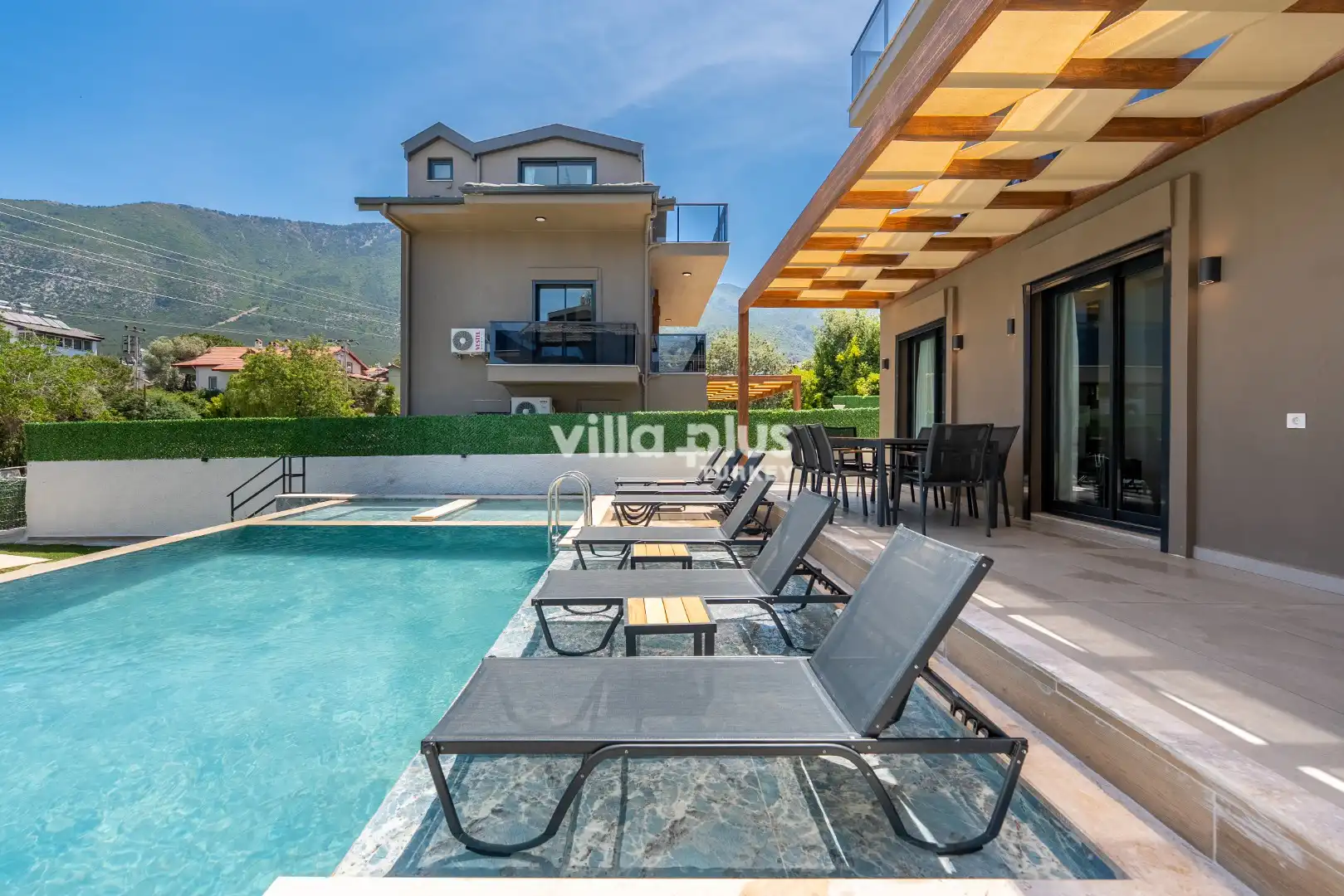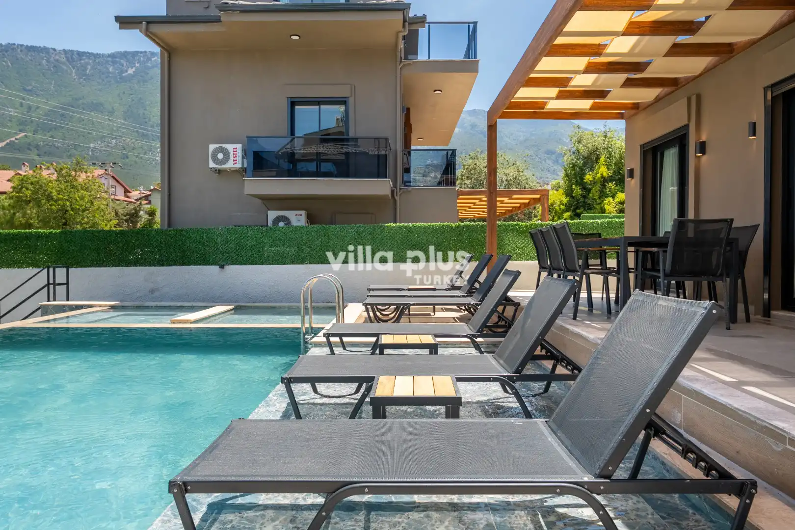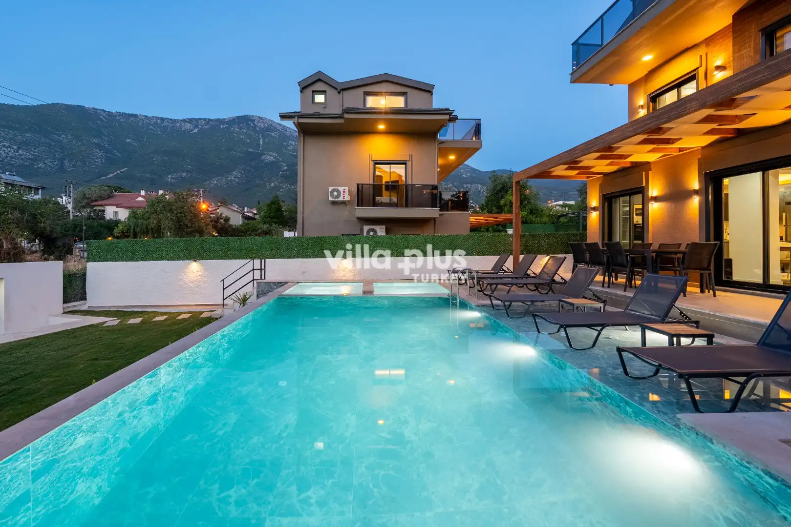 Villa Flair 3 is a stylish and comfortable holiday villa with a private swimming pool, located in Ovacık, one of Fethiye’s most popular areas. Nestled in a peaceful, nature-surrounded setting, the villa is only 4 km from the world-famous Ölüdeniz Beach. Villa Flair 3 stands out with its modern architecture, tasteful interior design, and spacious living areas, offering accommodation for up to 8 guests. The villa has 4 bedrooms, each with a private bathroom and WC, providing a very comfortable stay for large families.