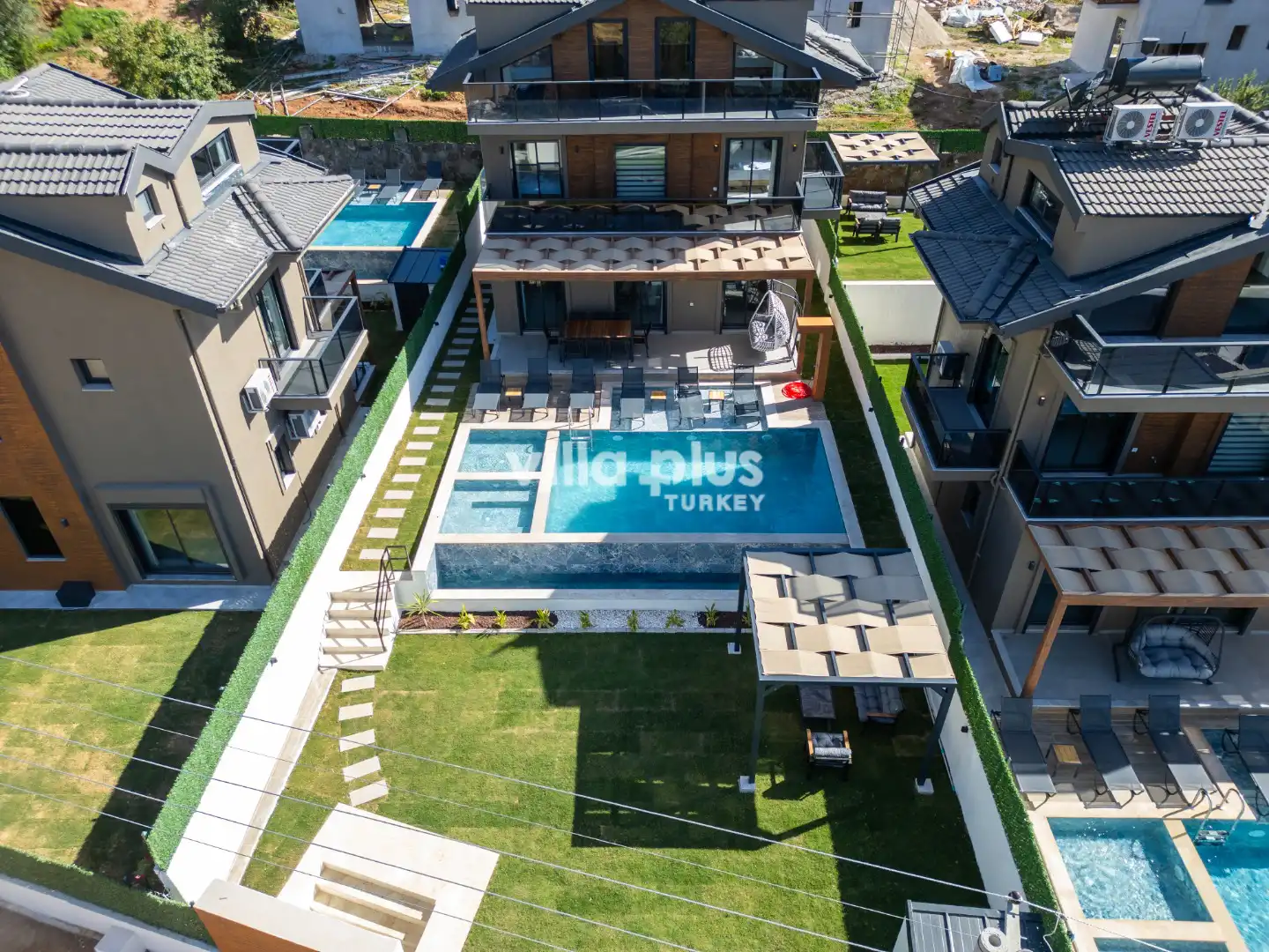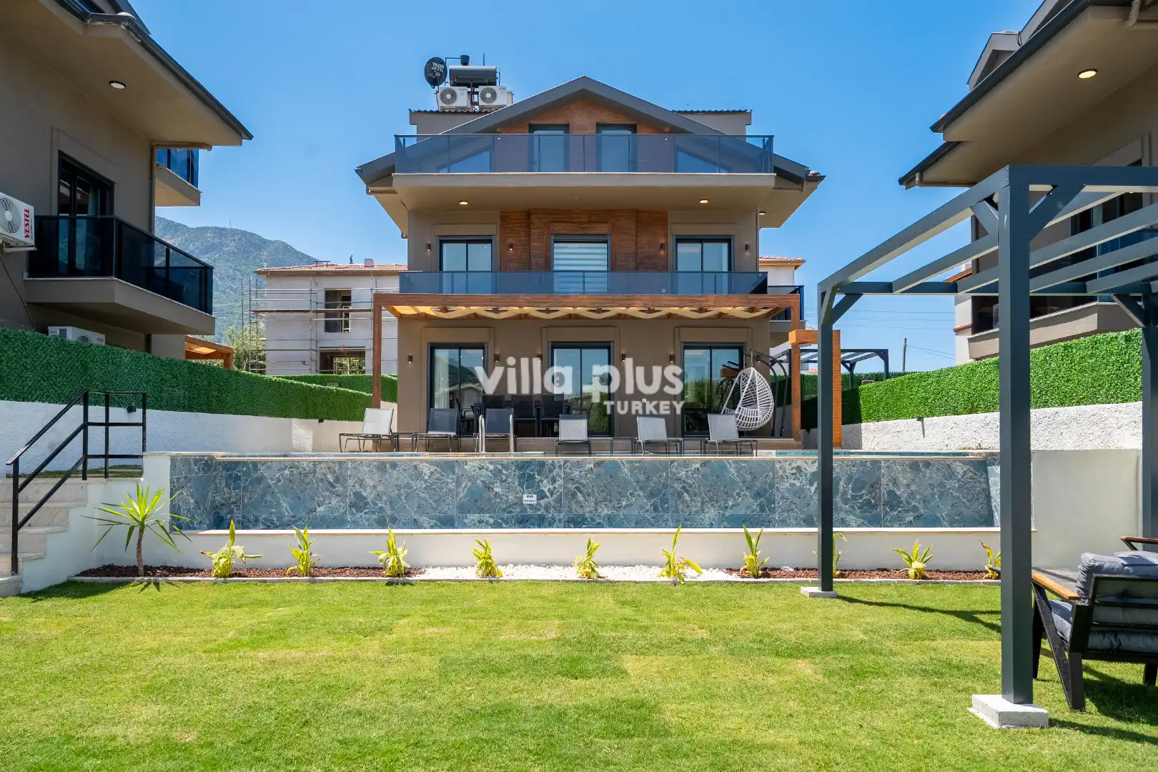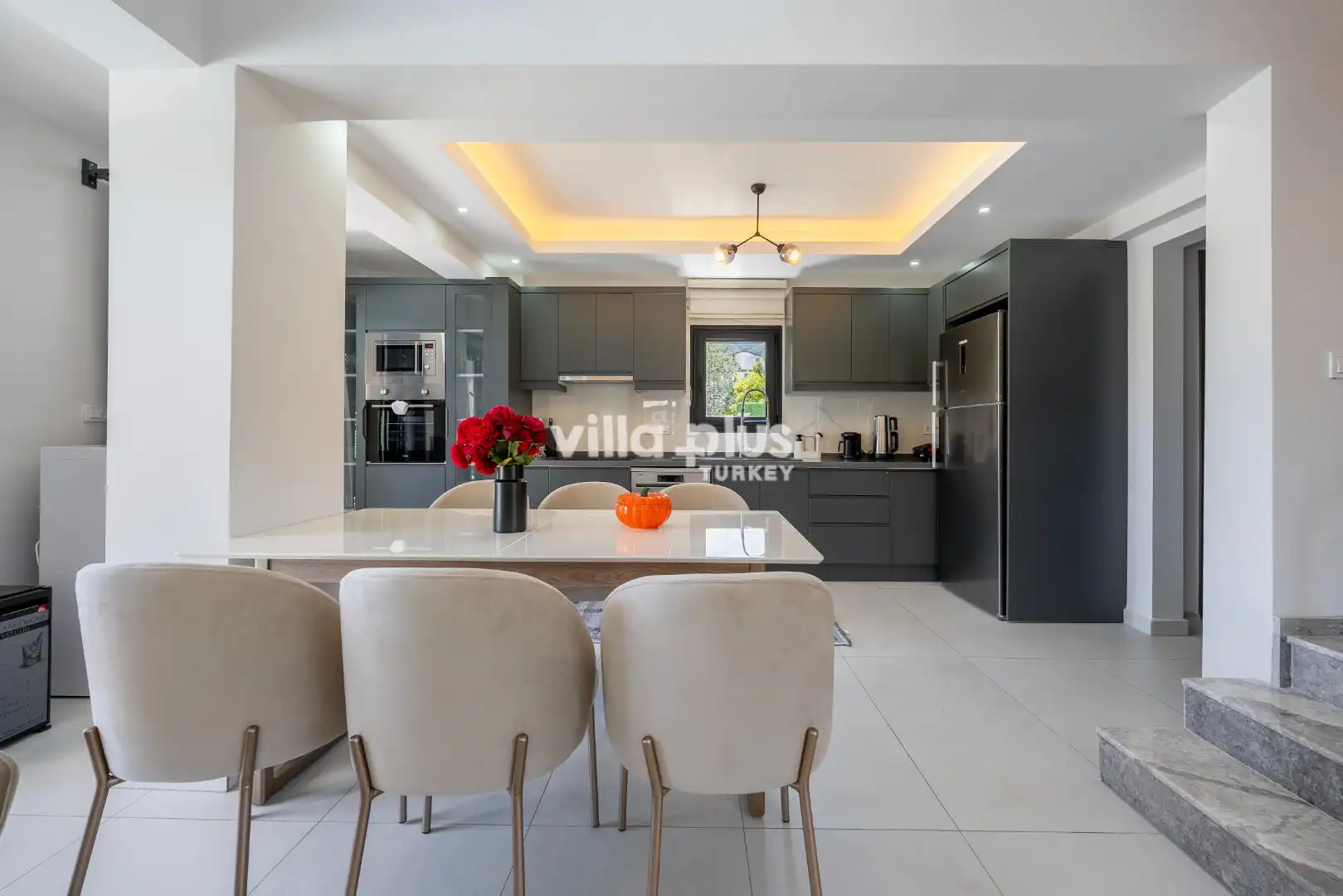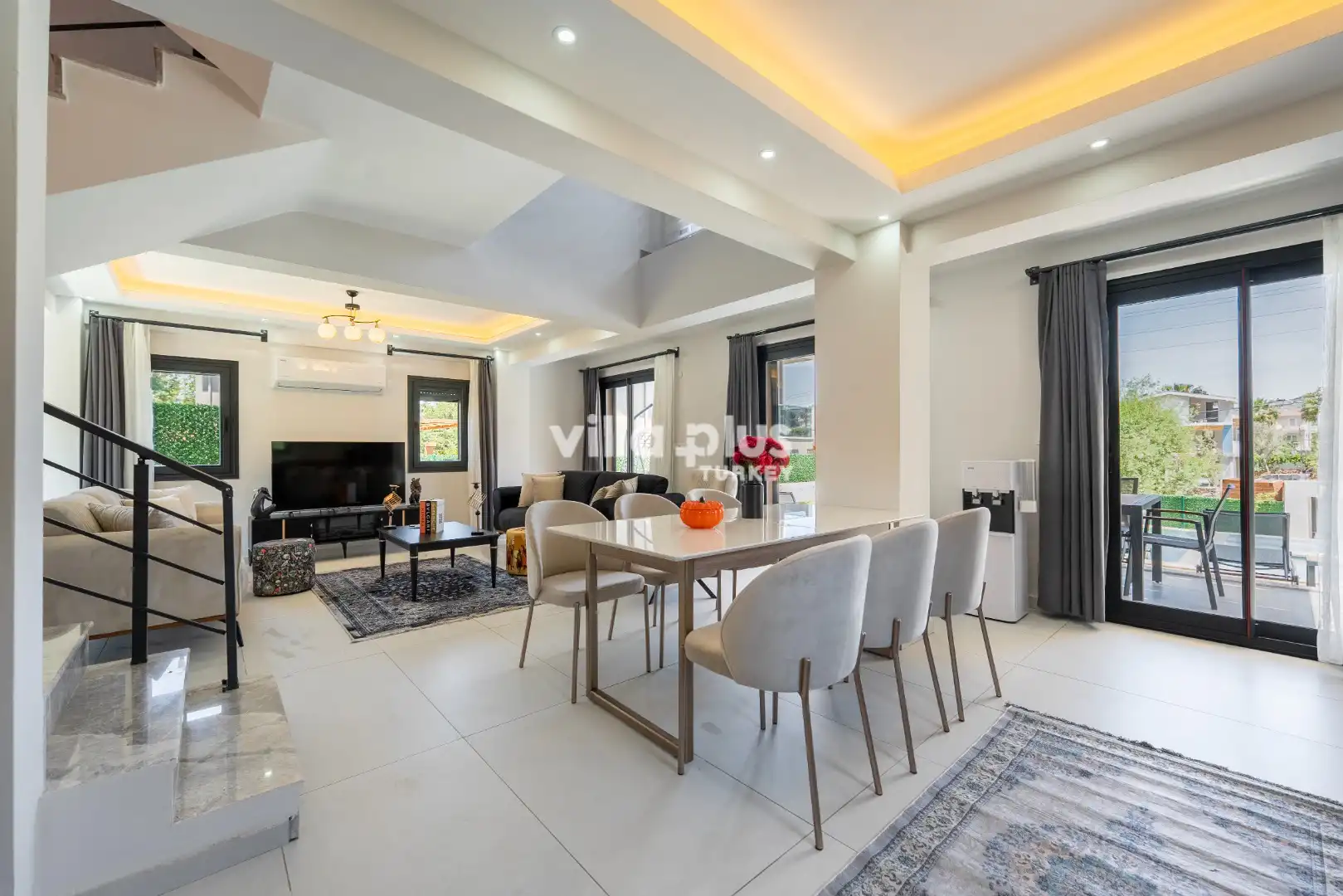 Villa Flair 3 is a stylish and comfortable holiday villa with a private swimming pool, located in Ovacık, one of Fethiye’s most popular areas. Nestled in a peaceful, nature-surrounded setting, the villa is only 4 km from the world-famous Ölüdeniz Beach. Villa Flair 3 stands out with its modern architecture, tasteful interior design, and spacious living areas, offering accommodation for up to 8 guests. The villa has 4 bedrooms, each with a private bathroom and WC, providing a very comfortable stay for large families.