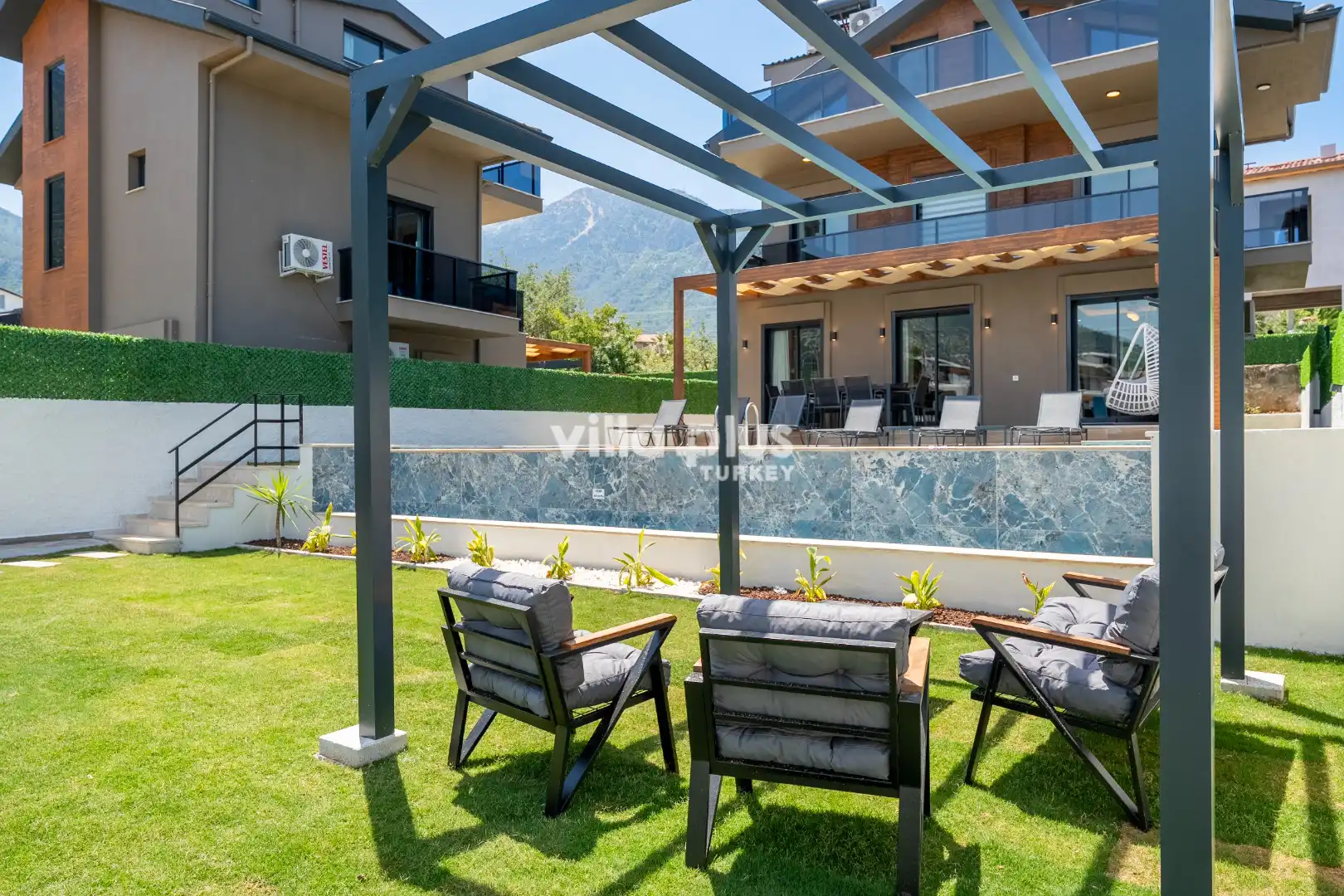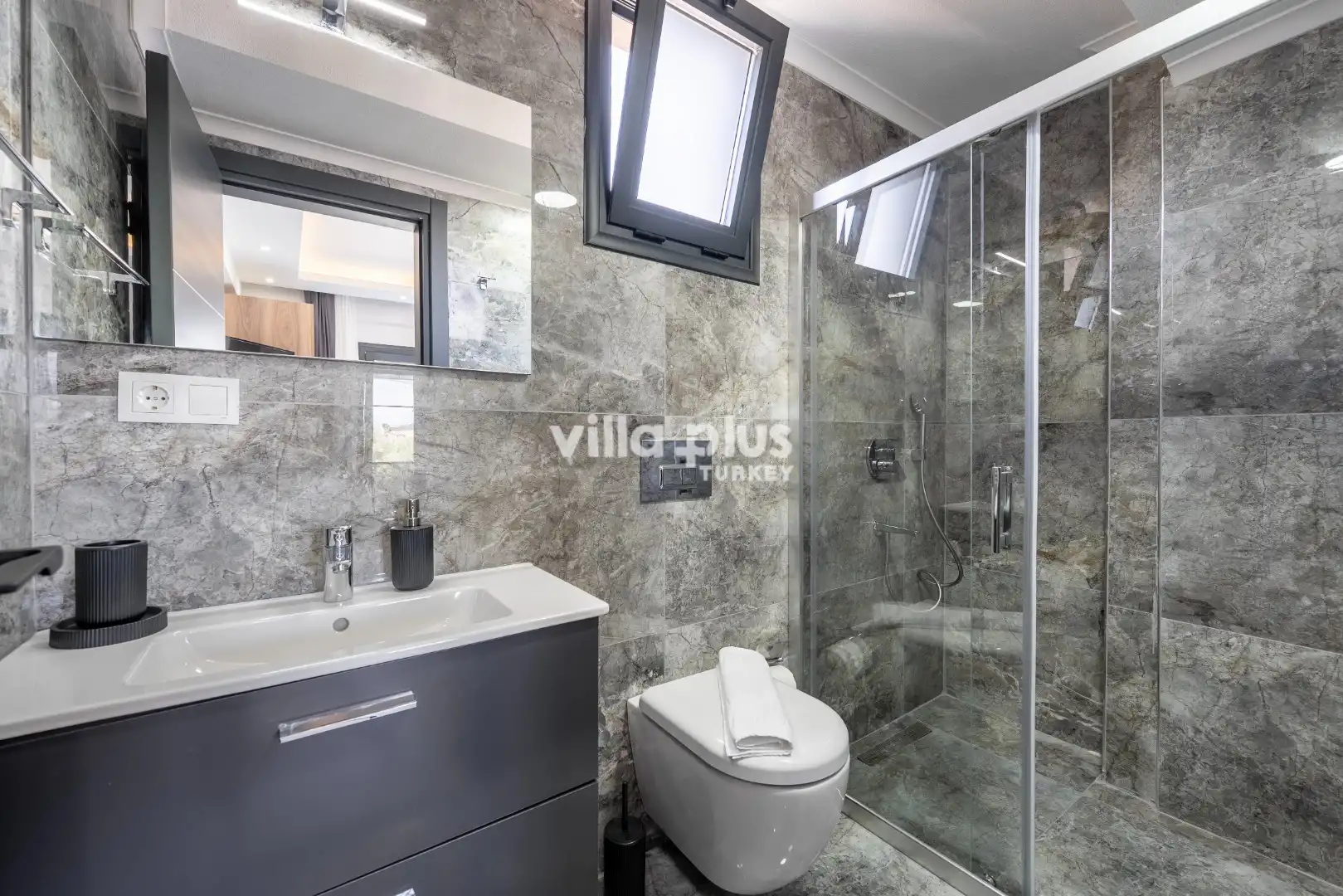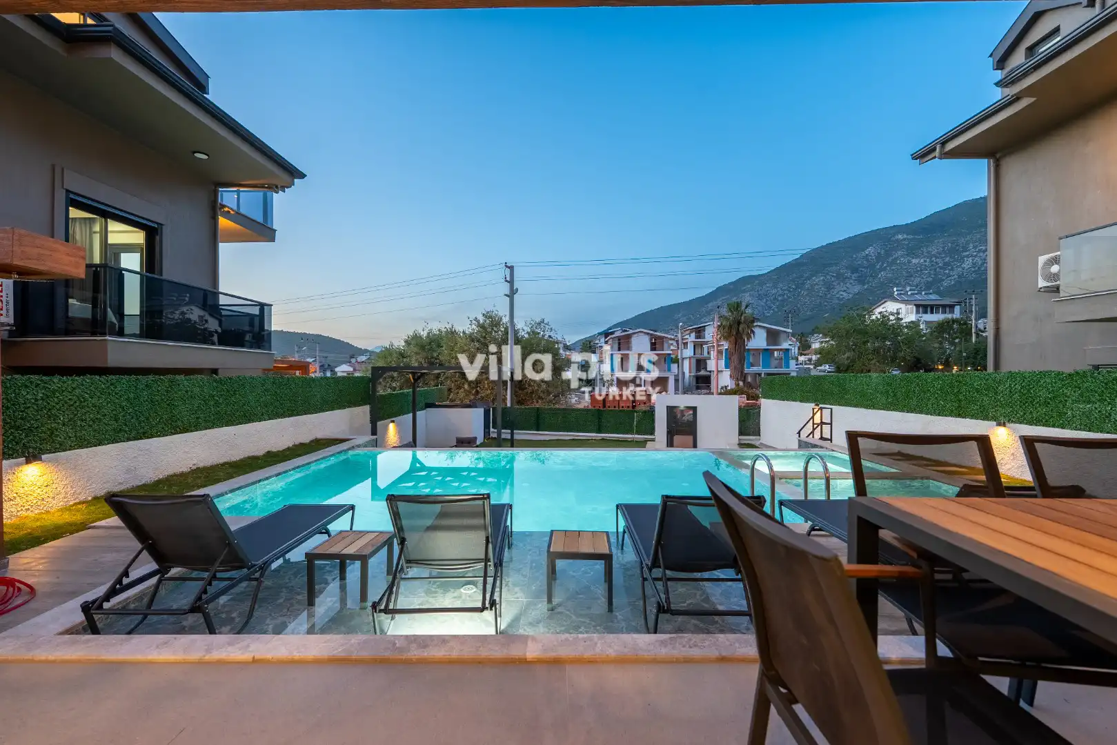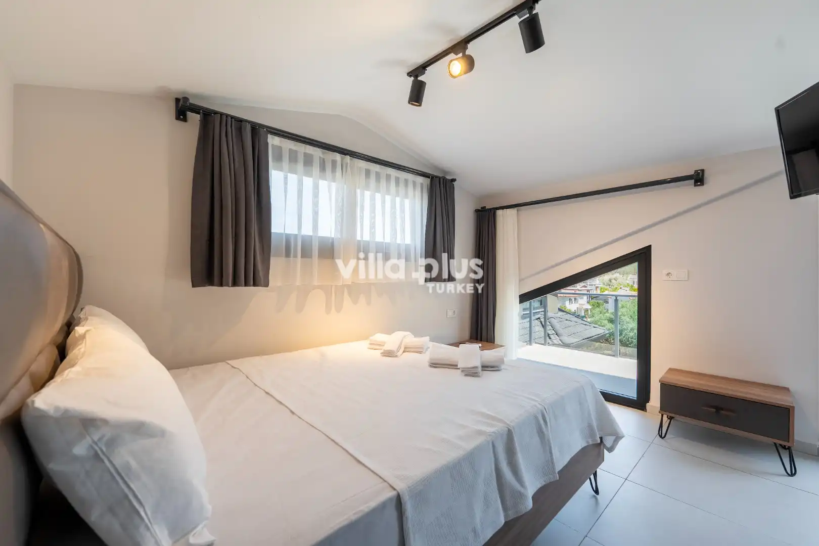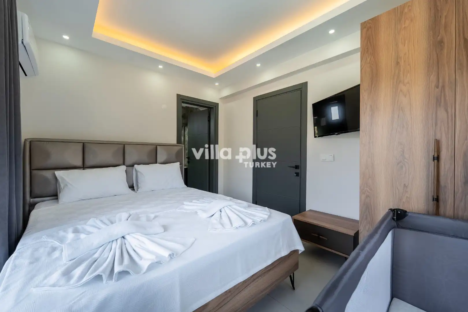 Villa Flair 3 is a stylish and comfortable holiday villa with a private swimming pool, located in Ovacık, one of Fethiye’s most popular areas. Nestled in a peaceful, nature-surrounded setting, the villa is only 4 km from the world-famous Ölüdeniz Beach. Villa Flair 3 stands out with its modern architecture, tasteful interior design, and spacious living areas, offering accommodation for up to 8 guests. The villa has 4 bedrooms, each with a private bathroom and WC, providing a very comfortable stay for large families.