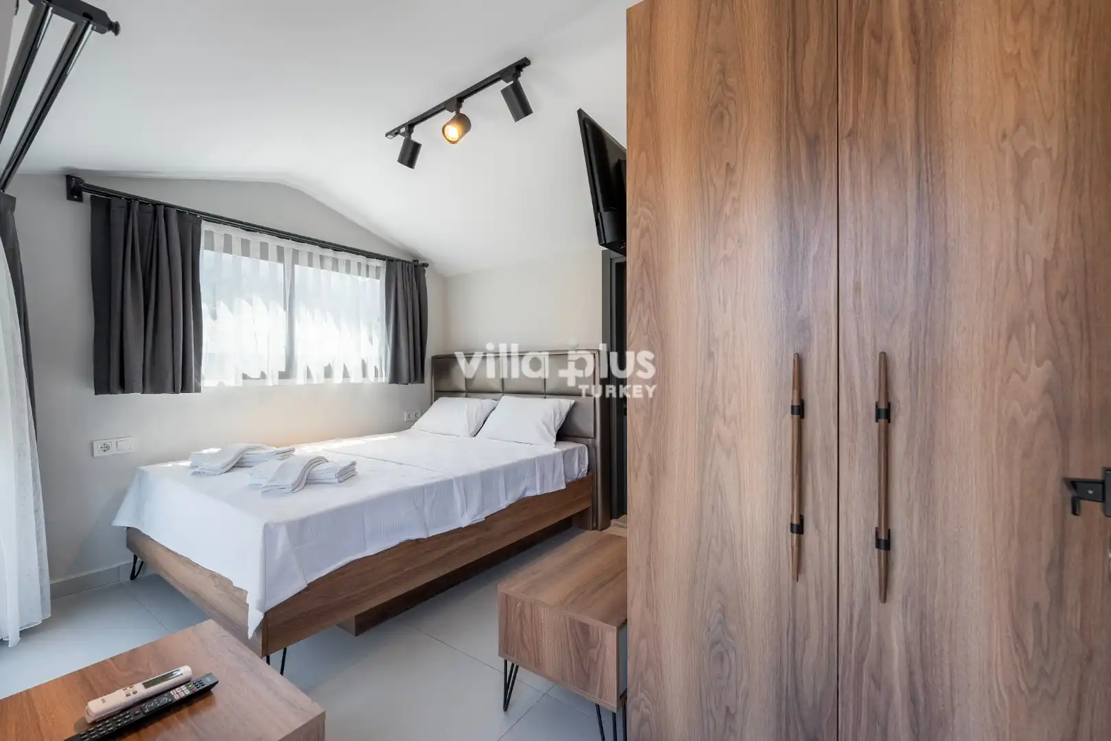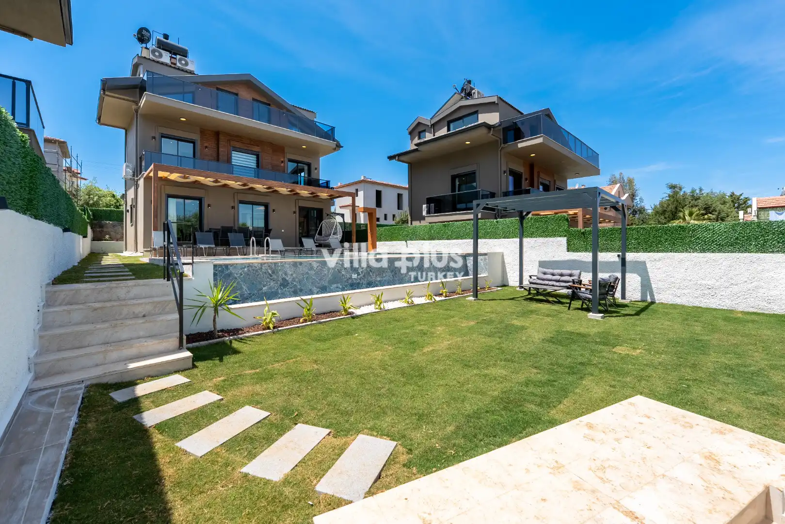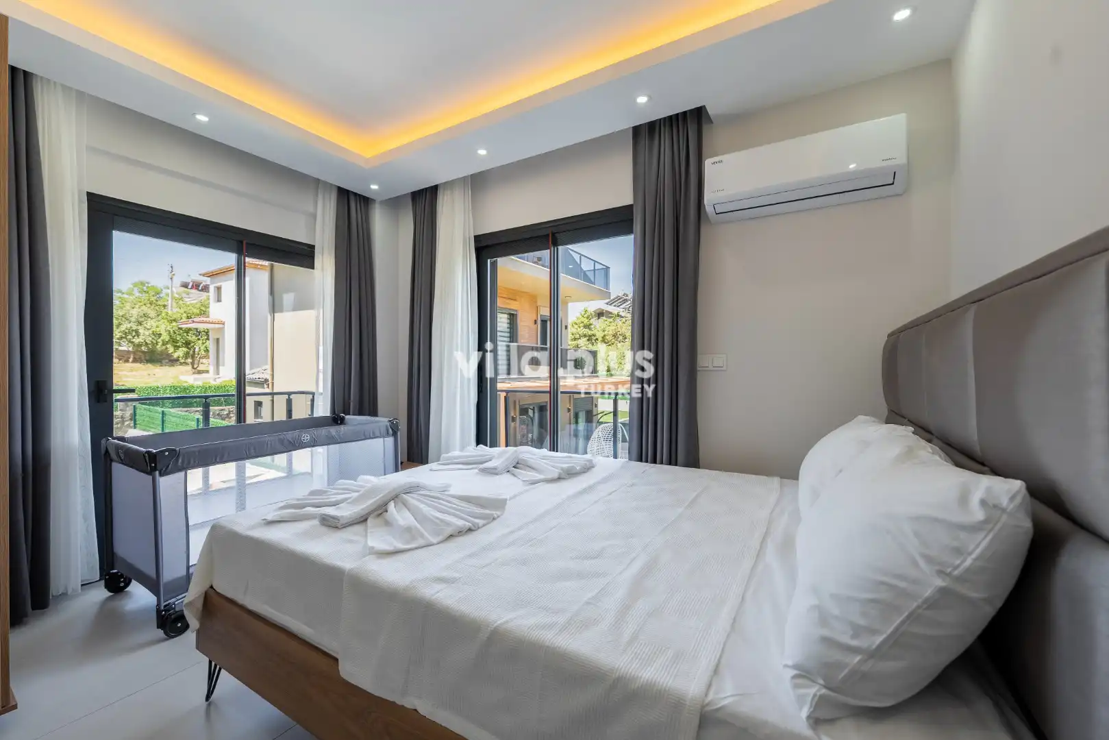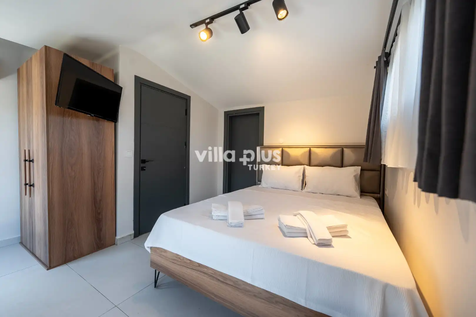 Villa Flair 3 is a stylish and comfortable holiday villa with a private swimming pool, located in Ovacık, one of Fethiye’s most popular areas. Nestled in a peaceful, nature-surrounded setting, the villa is only 4 km from the world-famous Ölüdeniz Beach. Villa Flair 3 stands out with its modern architecture, tasteful interior design, and spacious living areas, offering accommodation for up to 8 guests. The villa has 4 bedrooms, each with a private bathroom and WC, providing a very comfortable stay for large families.