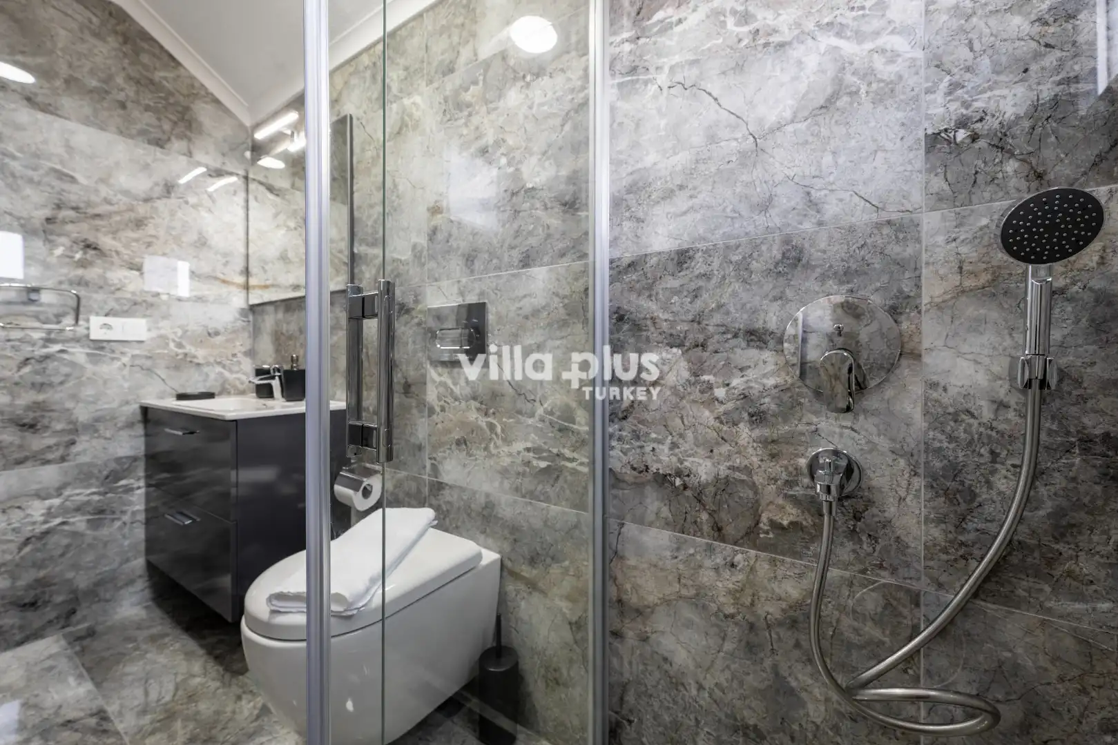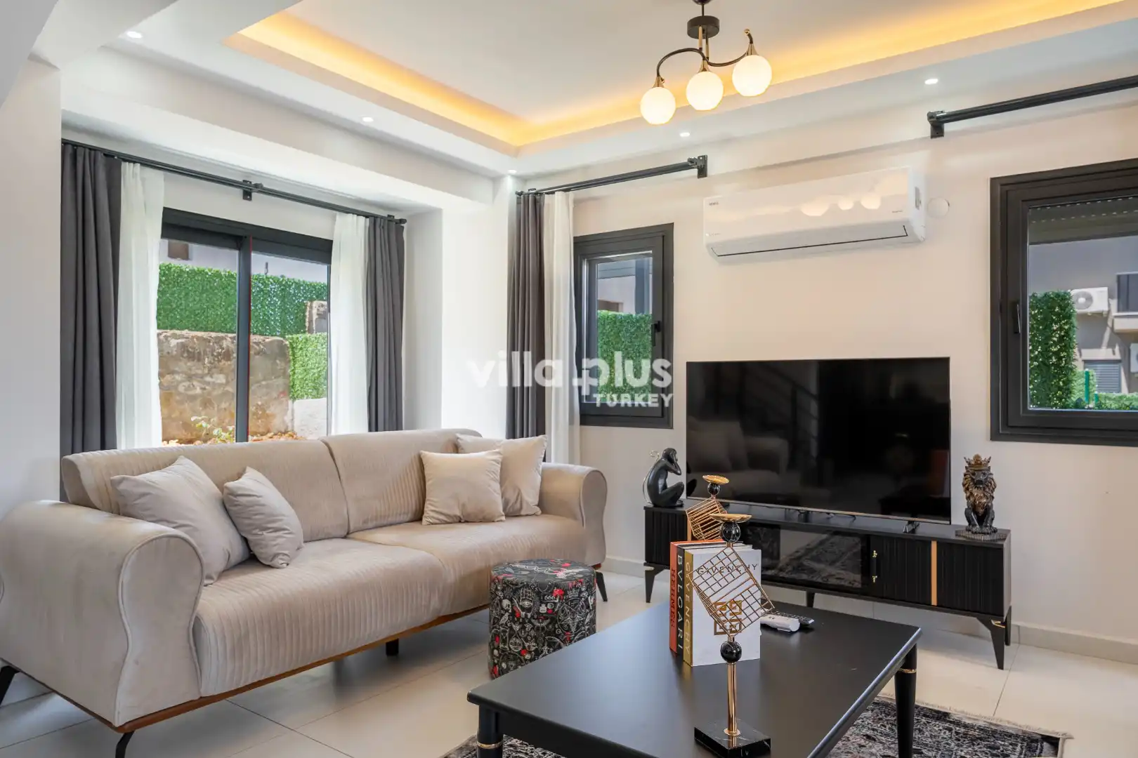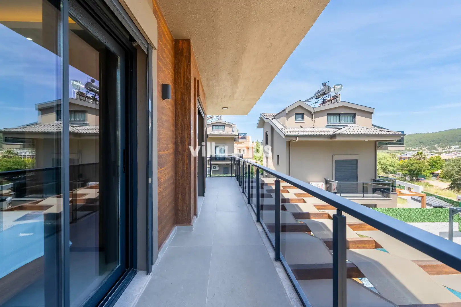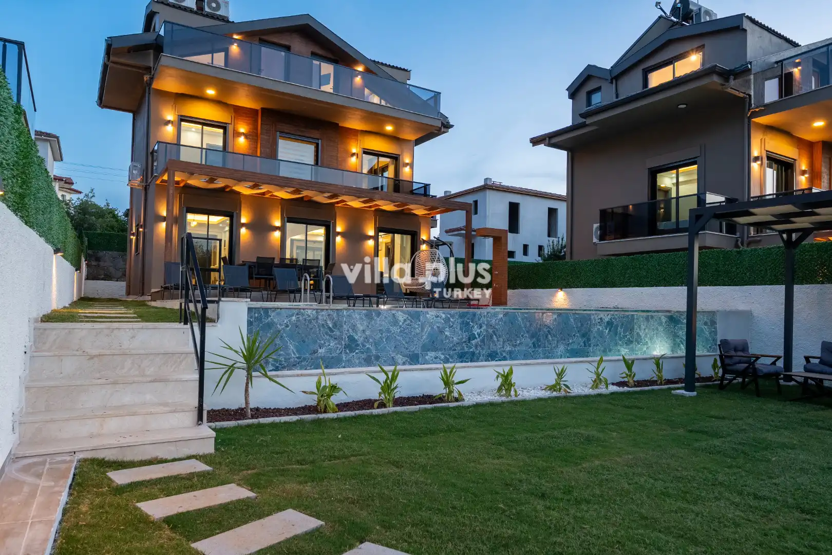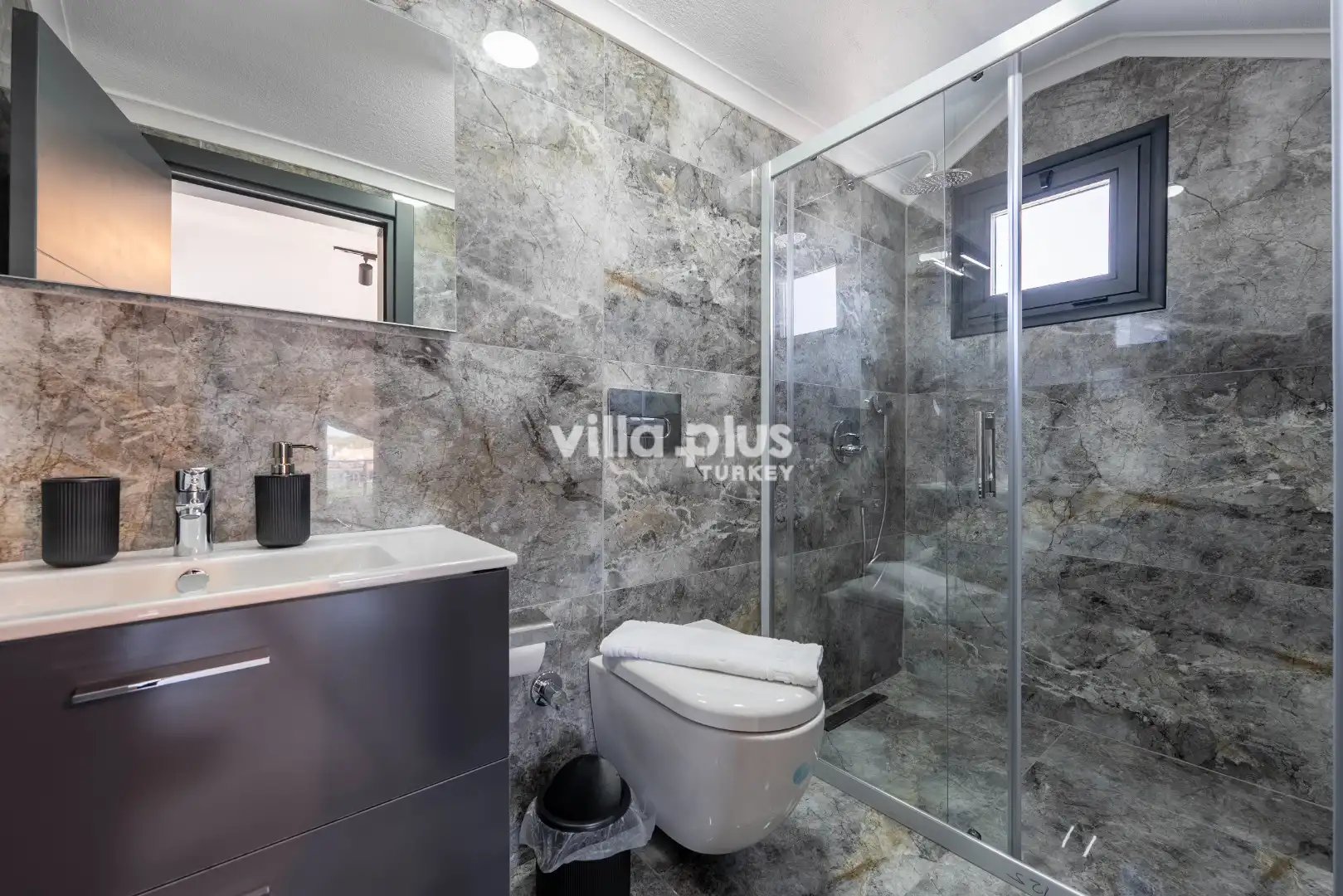 Villa Flair 3 is a stylish and comfortable holiday villa with a private swimming pool, located in Ovacık, one of Fethiye’s most popular areas. Nestled in a peaceful, nature-surrounded setting, the villa is only 4 km from the world-famous Ölüdeniz Beach. Villa Flair 3 stands out with its modern architecture, tasteful interior design, and spacious living areas, offering accommodation for up to 8 guests. The villa has 4 bedrooms, each with a private bathroom and WC, providing a very comfortable stay for large families.