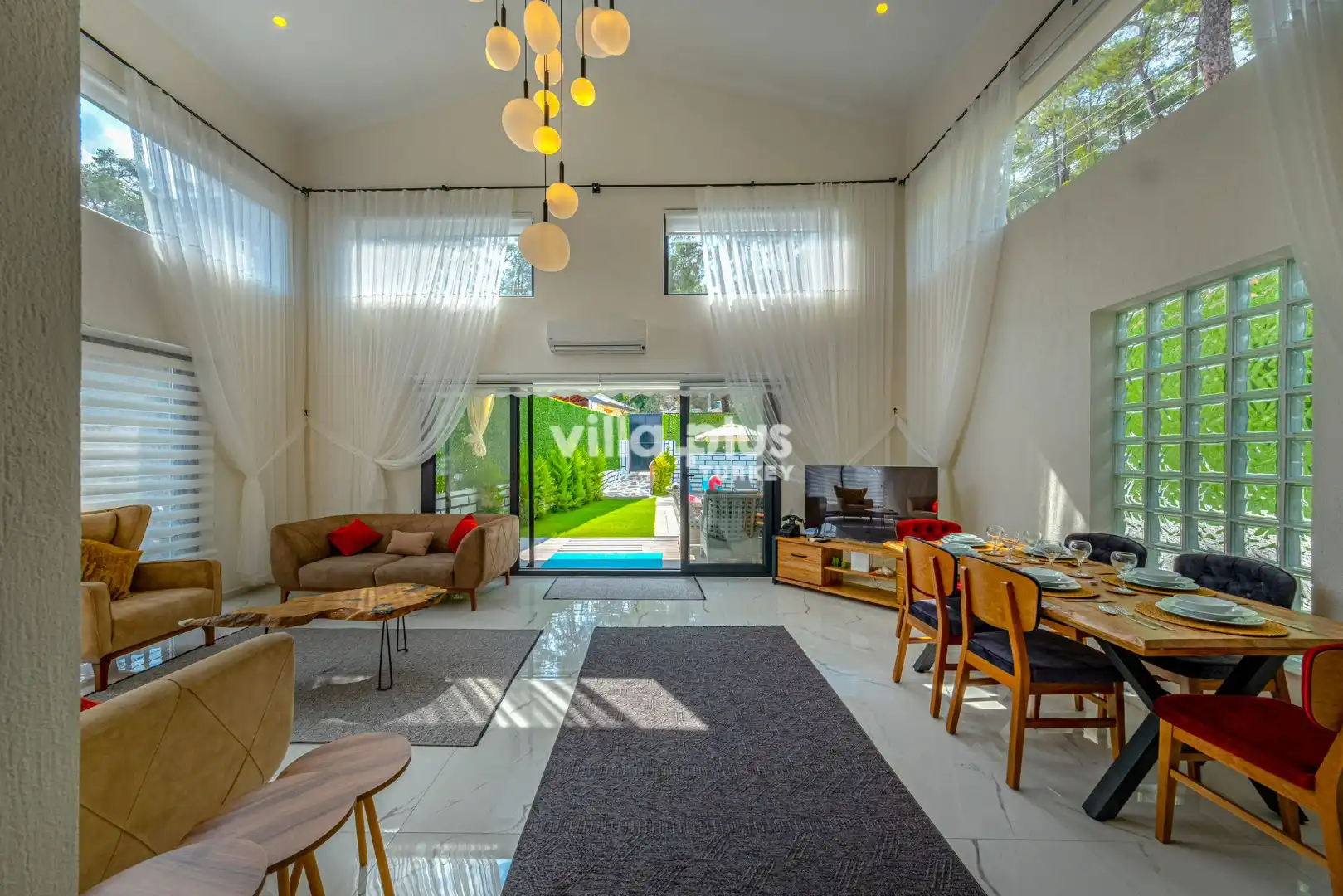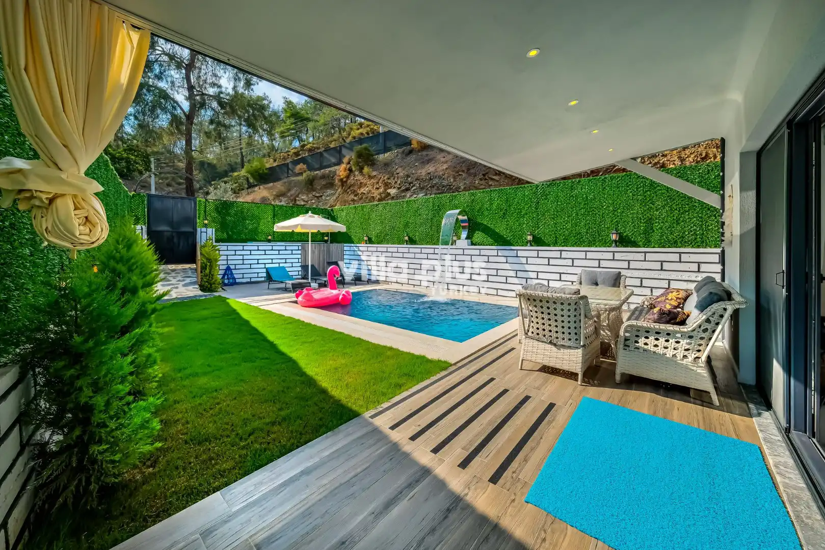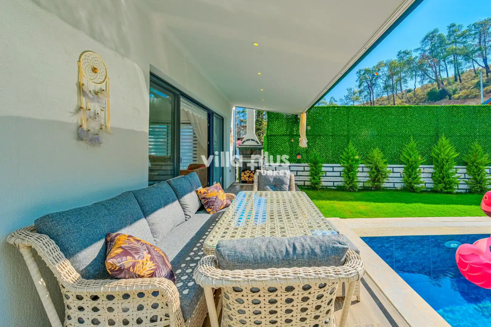 Located in the popular Yanıklar area of Fethiye, Villa Floresta features 3 bedrooms and can accommodate up to 6 guests. Its peaceful and tranquil natural setting allows you to enjoy a relaxing holiday with your family, while also providing easy access to many parts of Fethiye. The villa is just 800 meters from Karaot Beach and is surrounded by walking routes, including valleys and a nearby horse farm