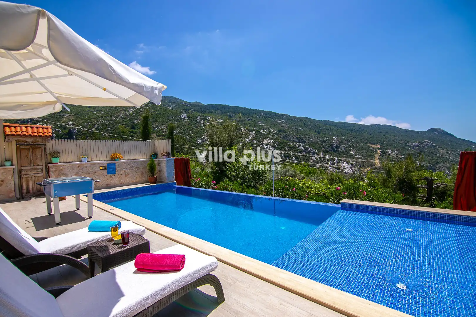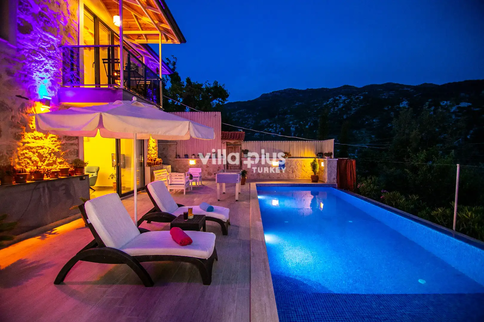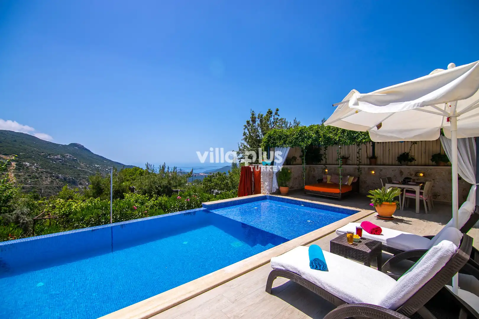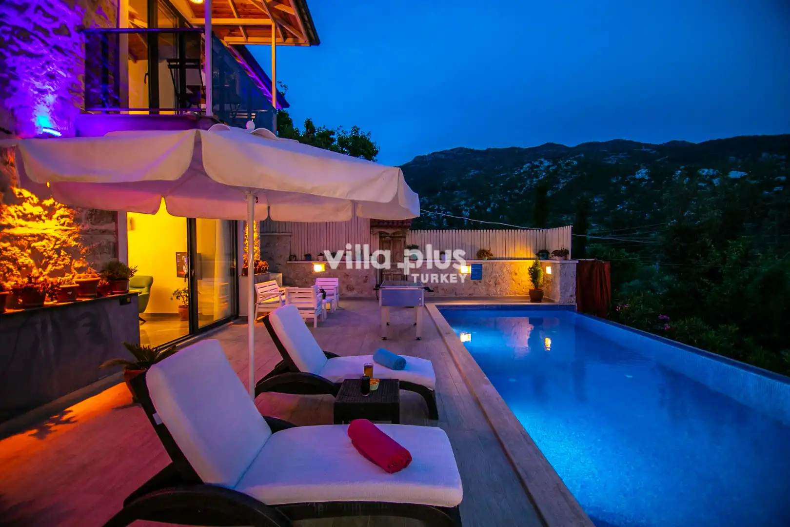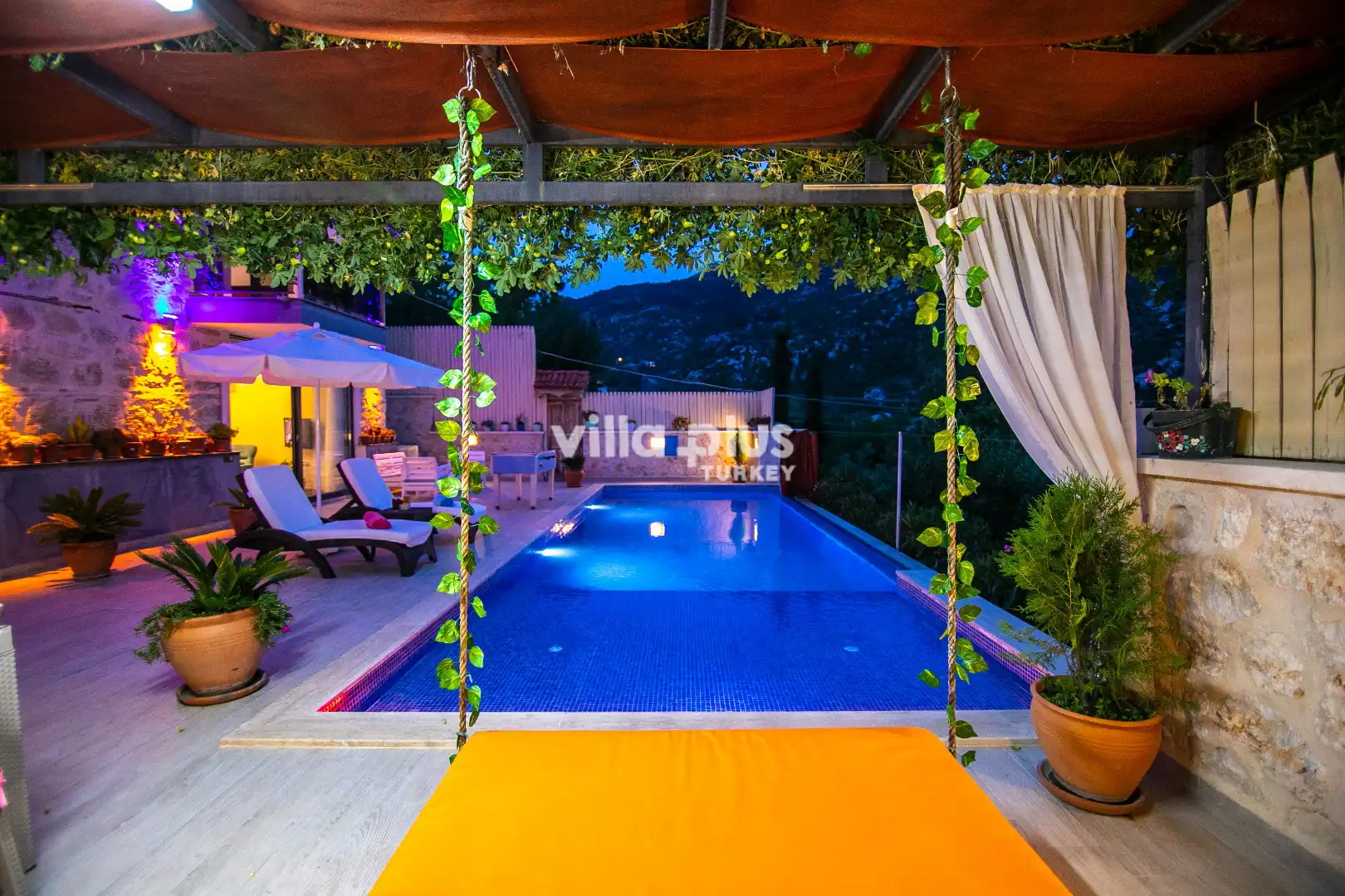 Villa Gazel is an elegantly renovated villa located in Kalkan’s Islamlar Village, offering stunning views of the surrounding nature. You can relax in the upstairs jacuzzi while enjoying the breathtaking scenery or spend pleasant moments on the balcony. Designed exclusively for two guests, this villa is perfect for honeymooners or a private getaway. With a pool and terrace shielded from outside view, it is an ideal choice for guests seeking privacy. Villa Gazel combines both seclusion and comfort to provide the perfect holiday experience.