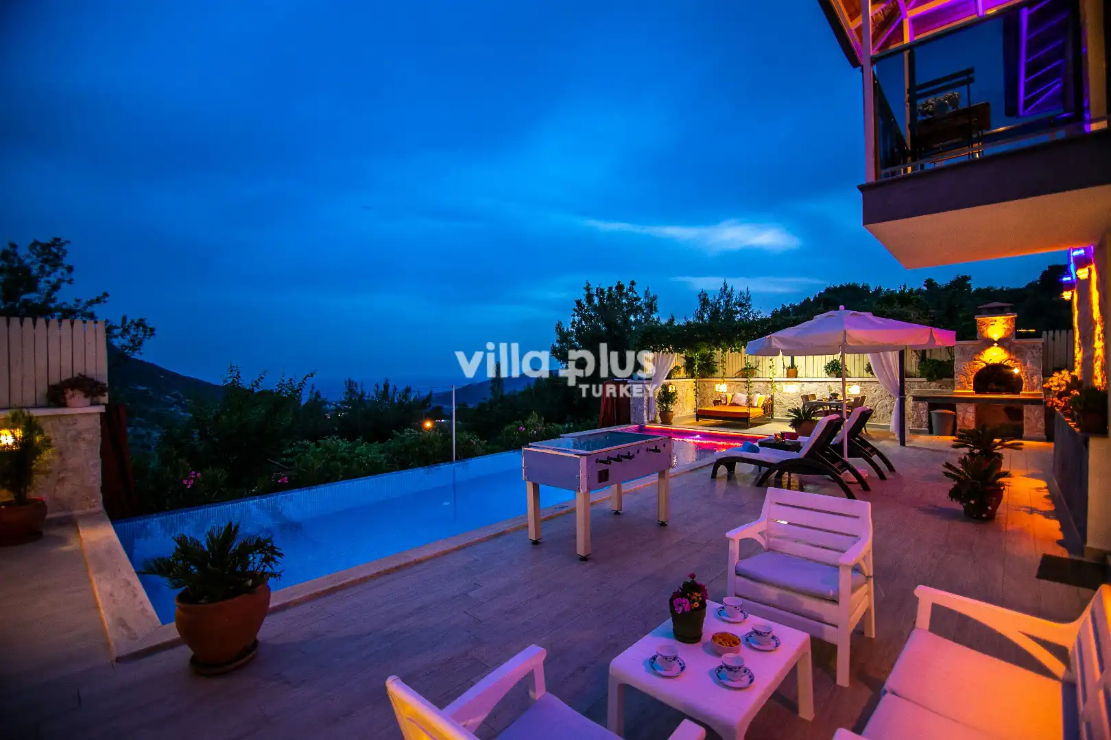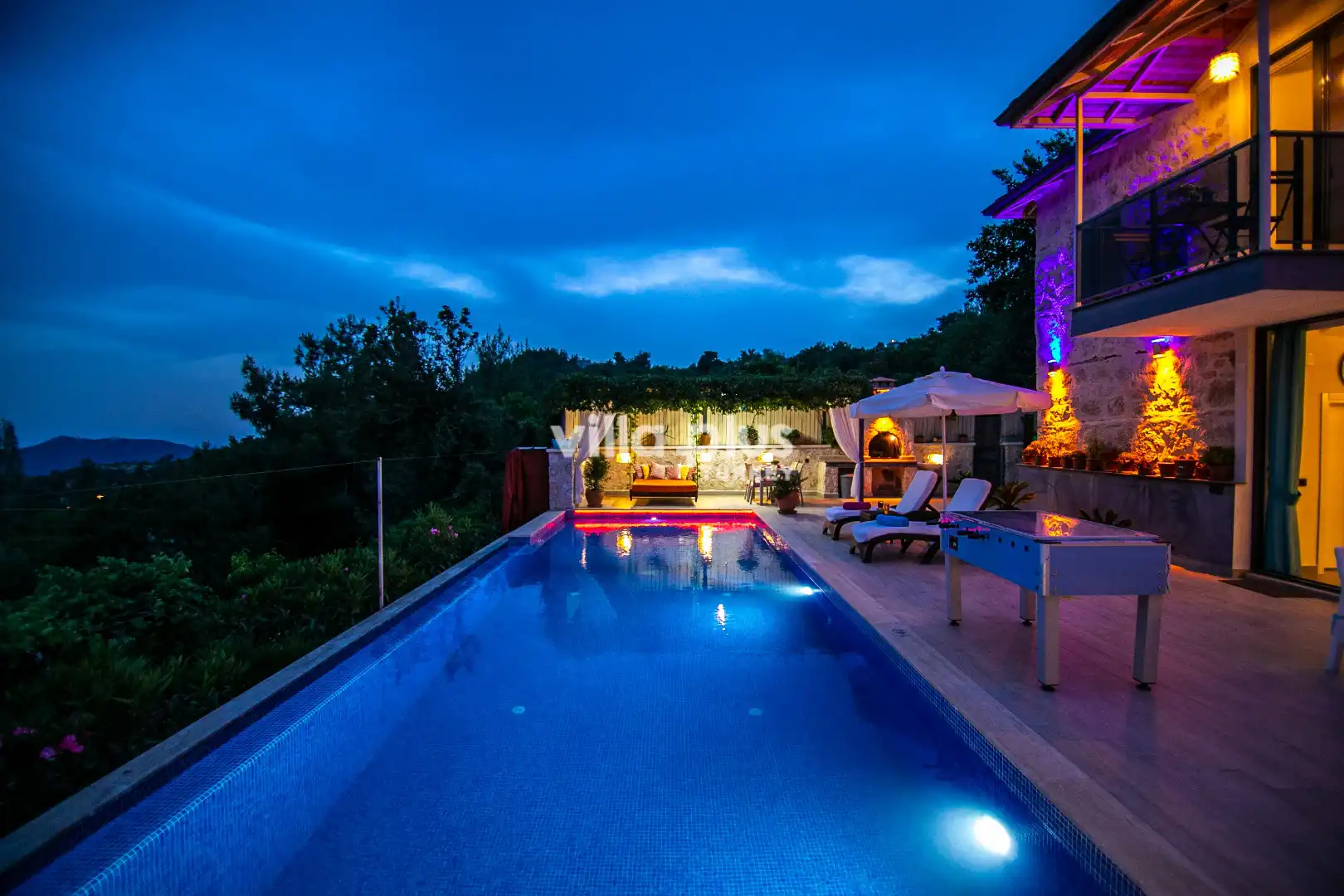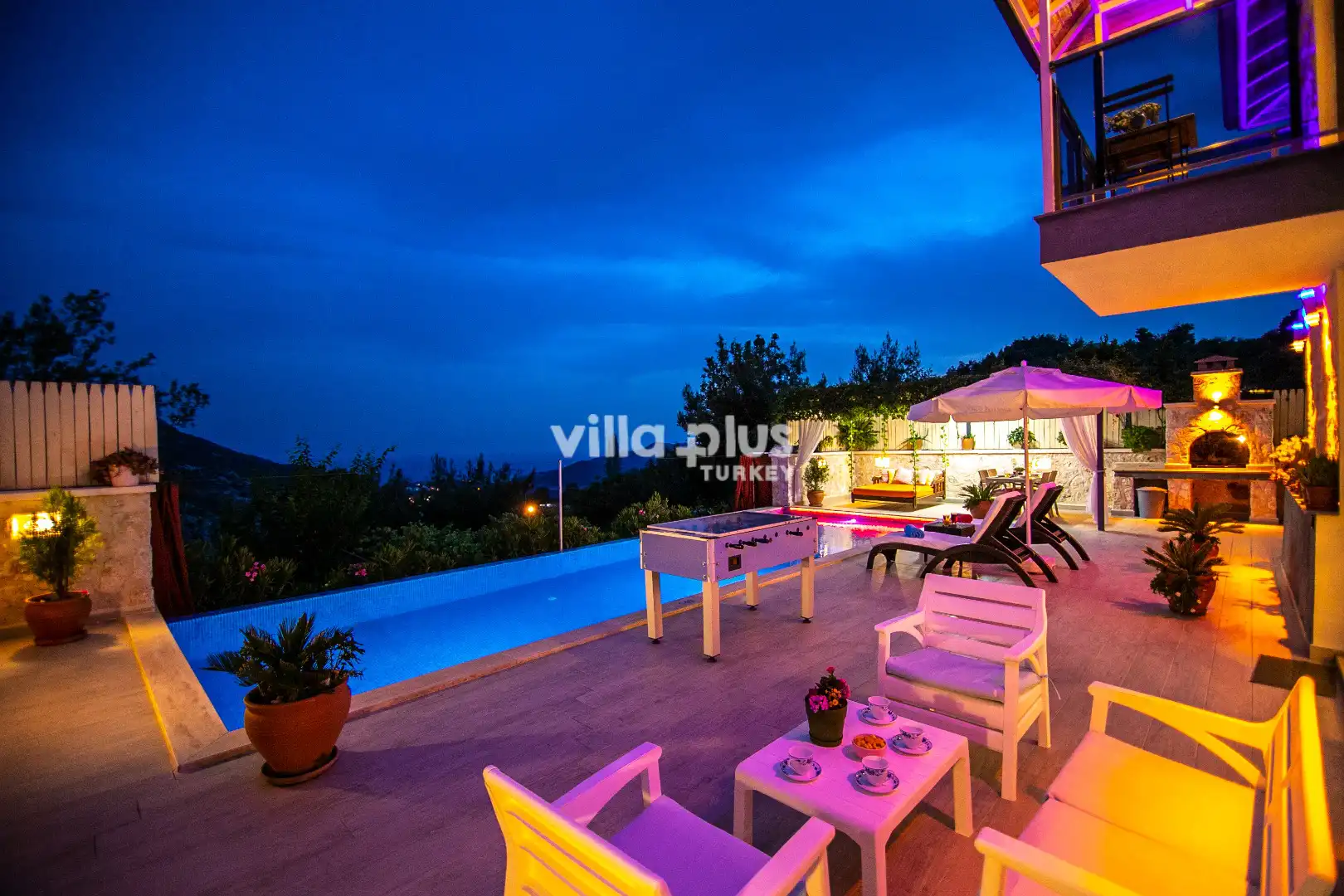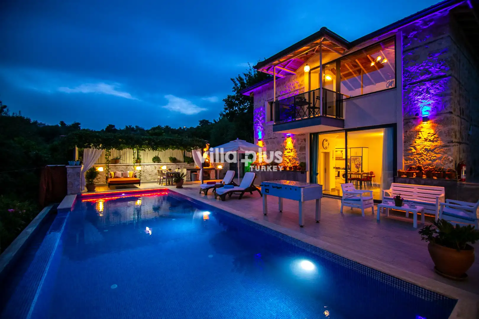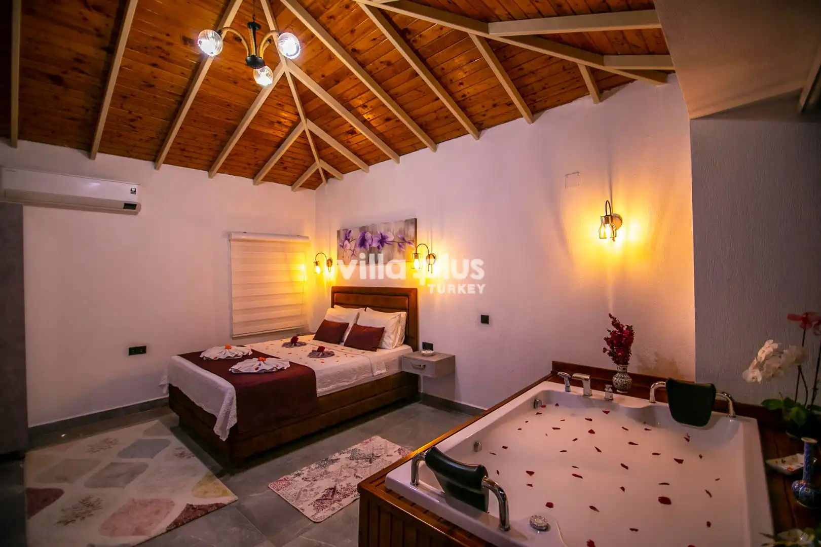 Villa Gazel is an elegantly renovated villa located in Kalkan’s Islamlar Village, offering stunning views of the surrounding nature. You can relax in the upstairs jacuzzi while enjoying the breathtaking scenery or spend pleasant moments on the balcony. Designed exclusively for two guests, this villa is perfect for honeymooners or a private getaway. With a pool and terrace shielded from outside view, it is an ideal choice for guests seeking privacy. Villa Gazel combines both seclusion and comfort to provide the perfect holiday experience.