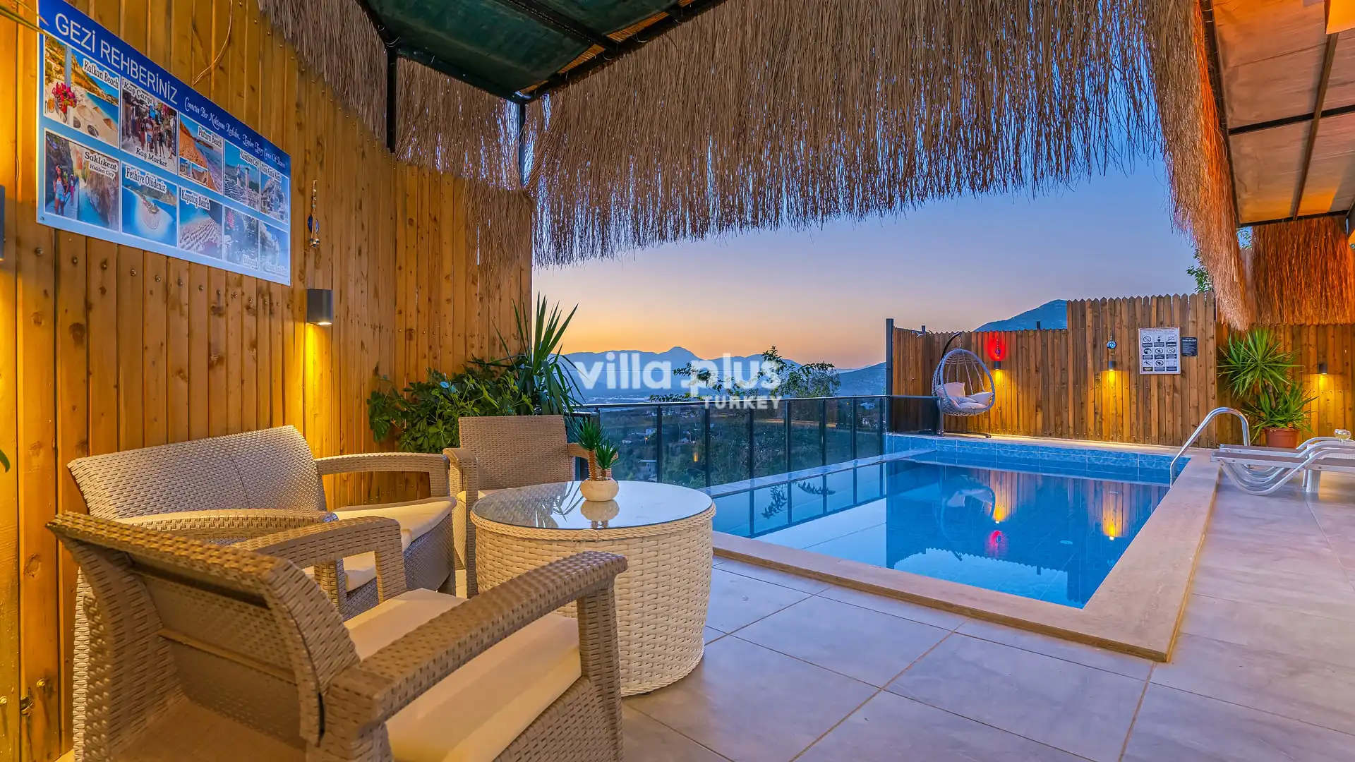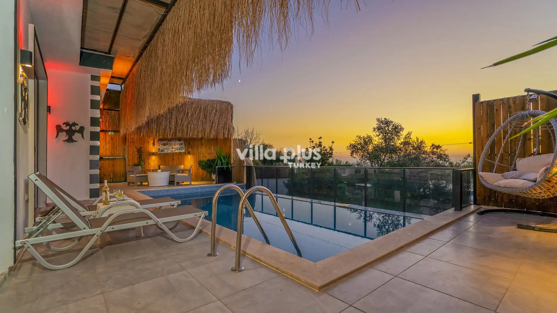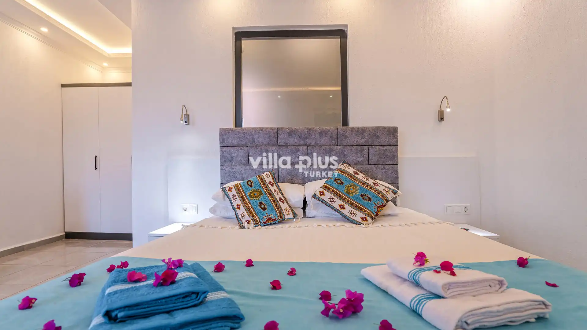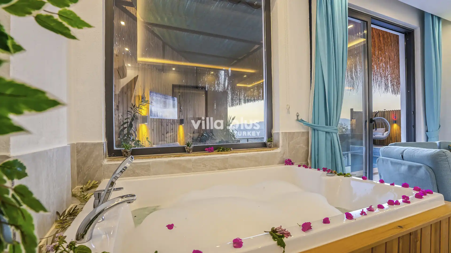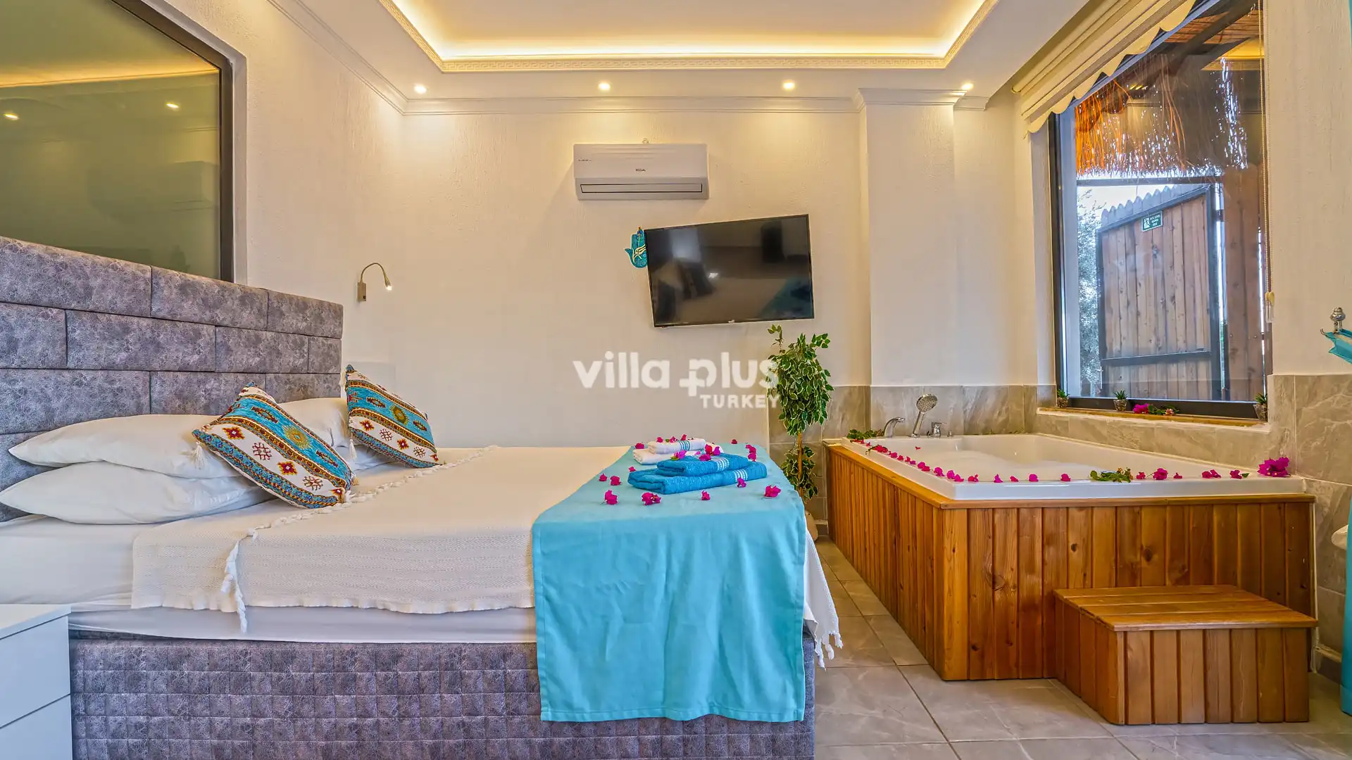 Located in the Üzümlü area of Kalkan, Villa Ginna 2 is a stylish holiday villa specially designed for honeymoon couples, offering accommodation for 2 guests. With its secluded pool area, carefully planned to ensure complete privacy, and an in-room jacuzzi, it combines comfort and intimacy in one perfect setting.