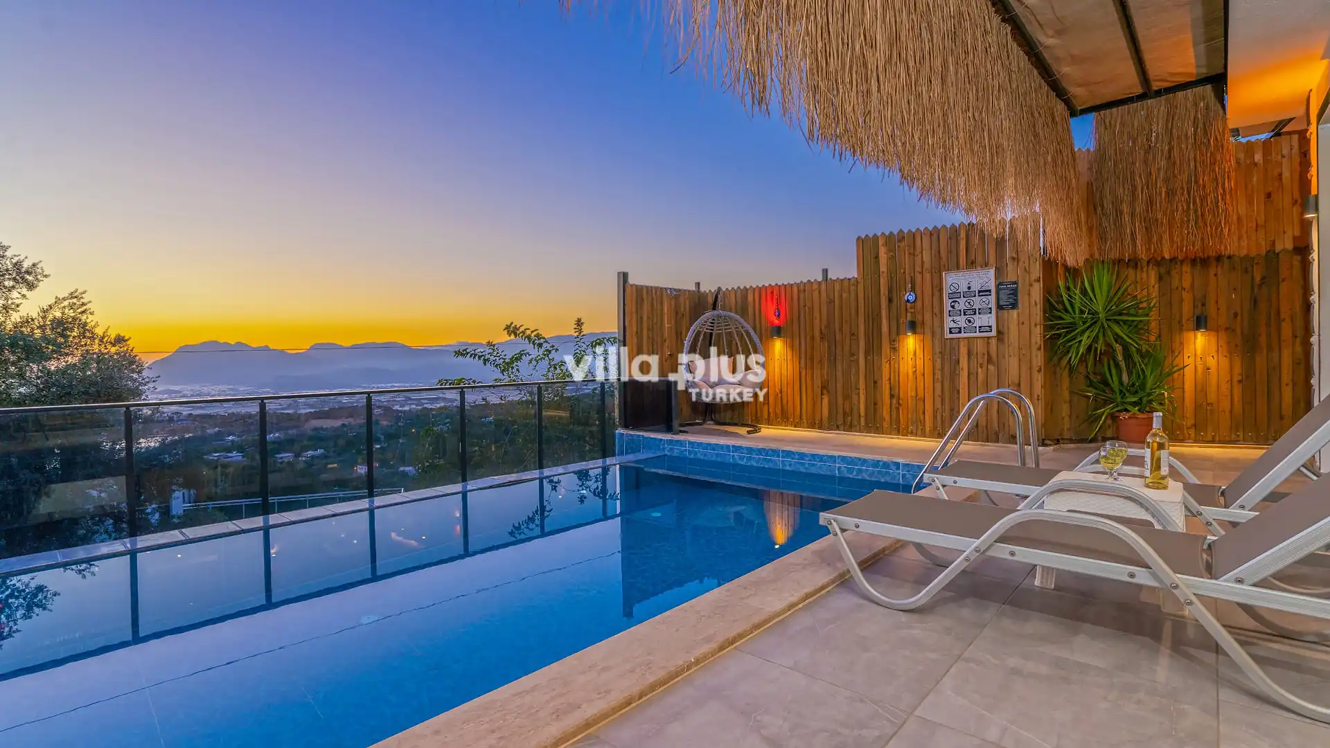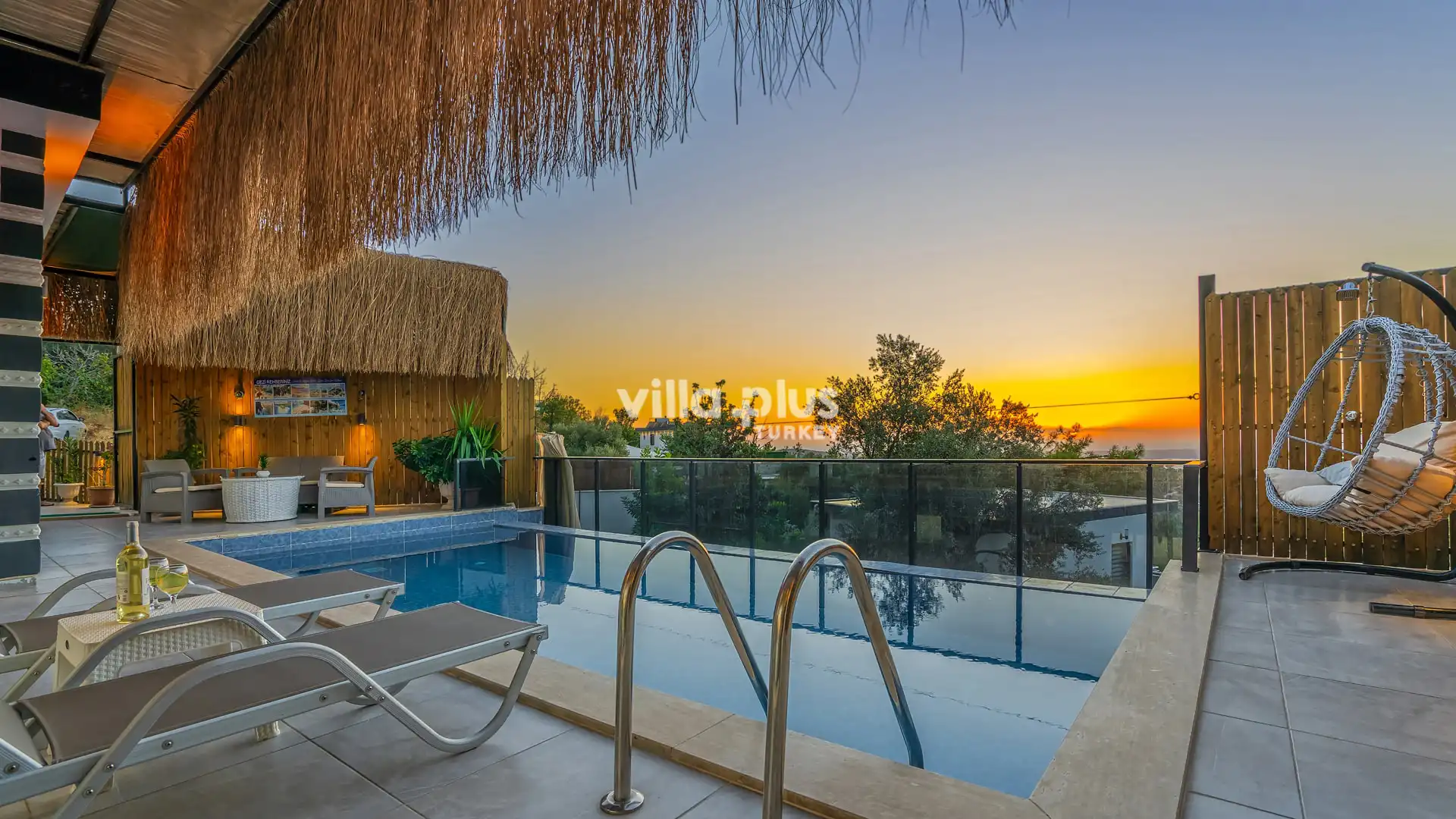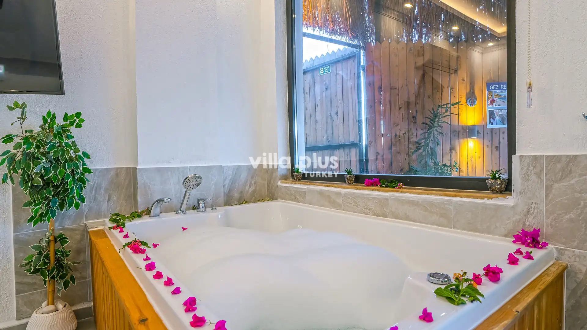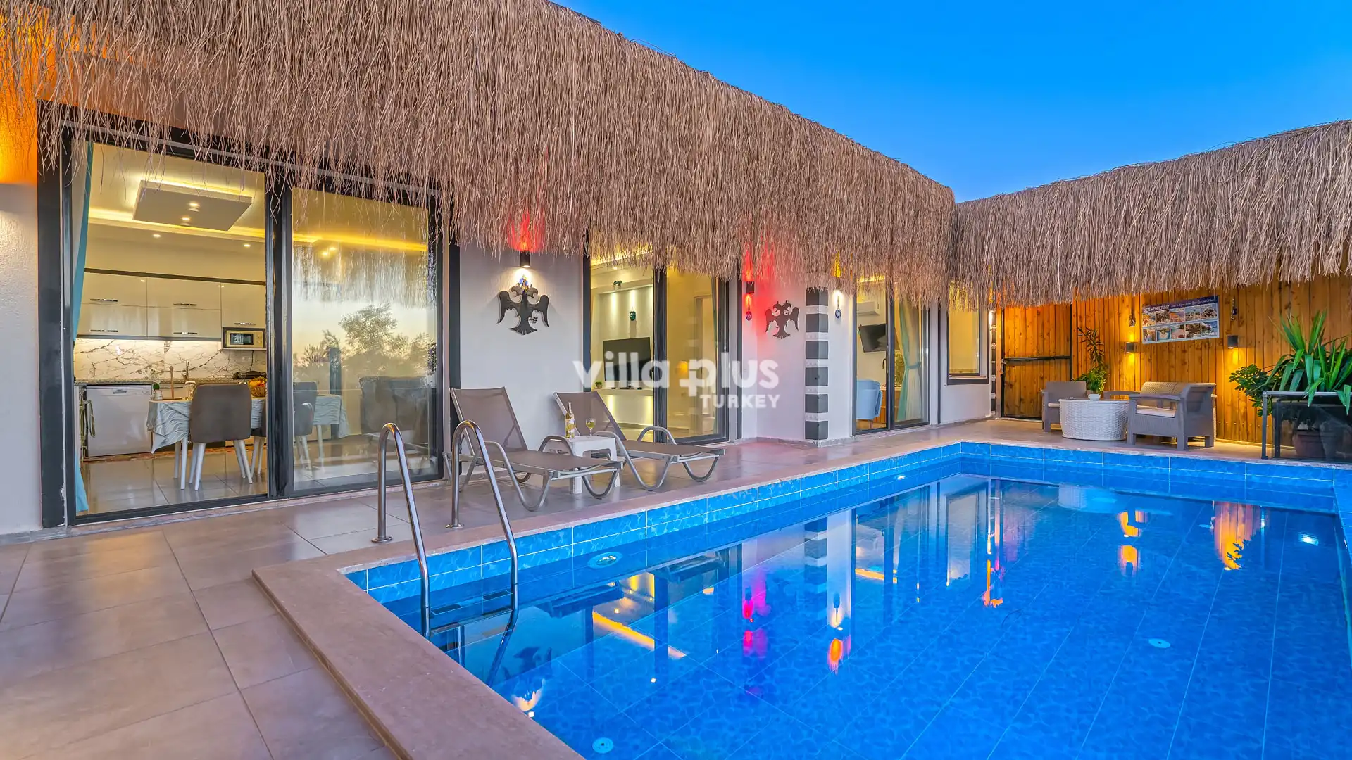 Located in the Üzümlü area of Kalkan, Villa Ginna 2 is a stylish holiday villa specially designed for honeymoon couples, offering accommodation for 2 guests. With its secluded pool area, carefully planned to ensure complete privacy, and an in-room jacuzzi, it combines comfort and intimacy in one perfect setting.