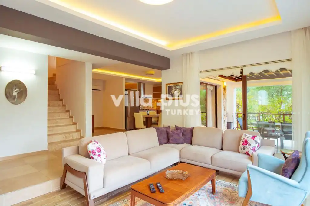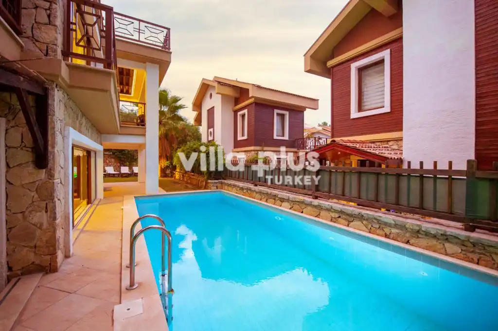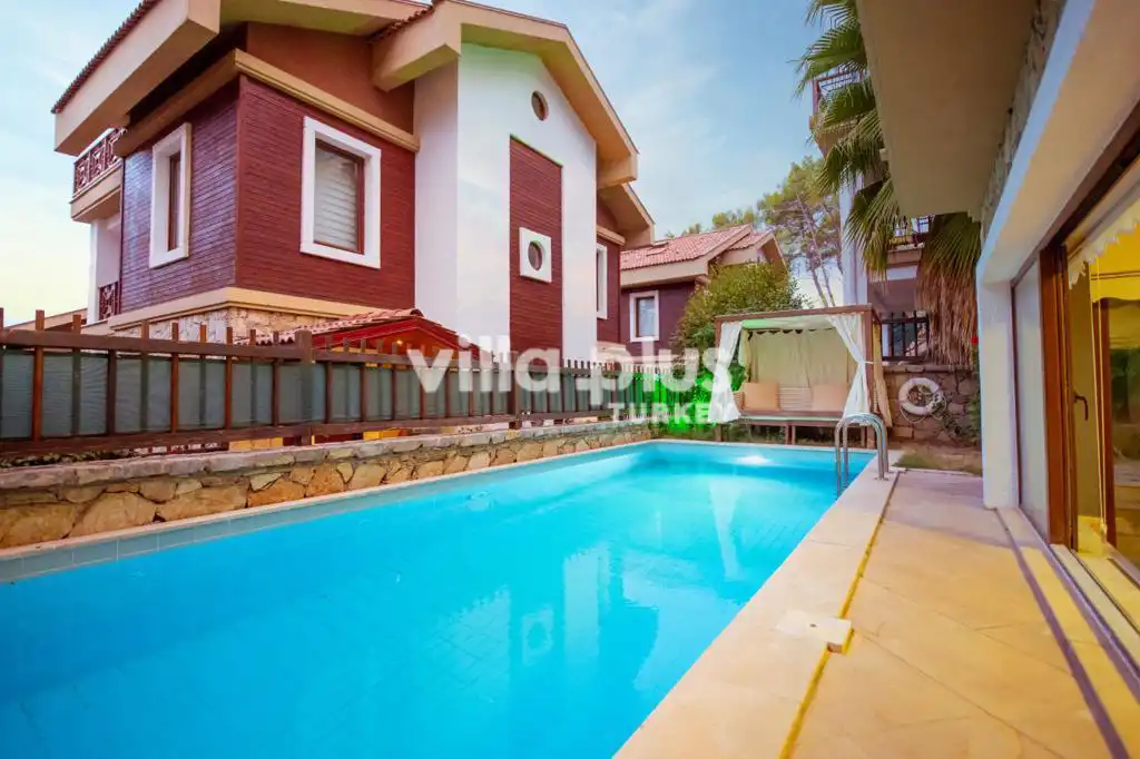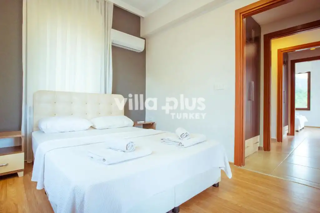 Located in the Fethiye Göcek region, this 3-storey villa offers an ideal holiday destination for large families and groups with an accommodation capacity of 8 people. The partially sheltered pool area allows guests to enjoy swimming in privacy and relieve the tiredness of the day. Offering the opportunity to spend a peaceful holiday accompanied by the magnificent view of nature, this villa is a perfect option for those looking for a comfortable and luxurious accommodation experience. Surrounded by the unique beauties of Göcek, this villa awaits you for an unforgettable holiday.