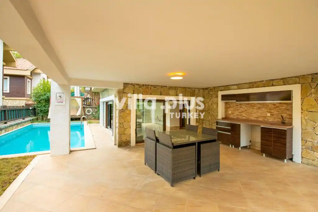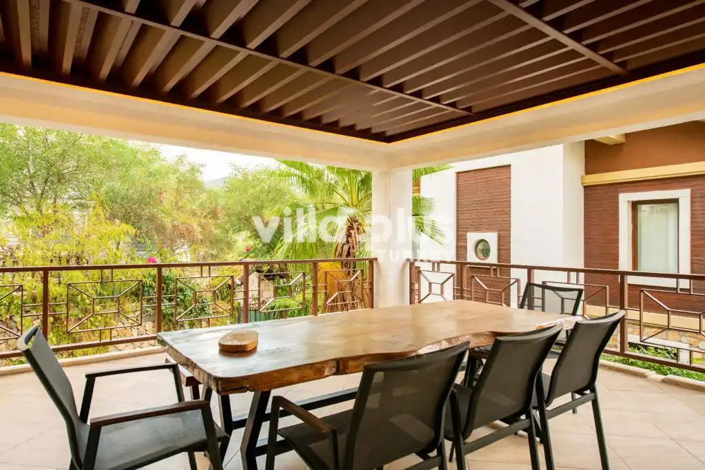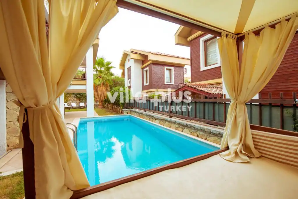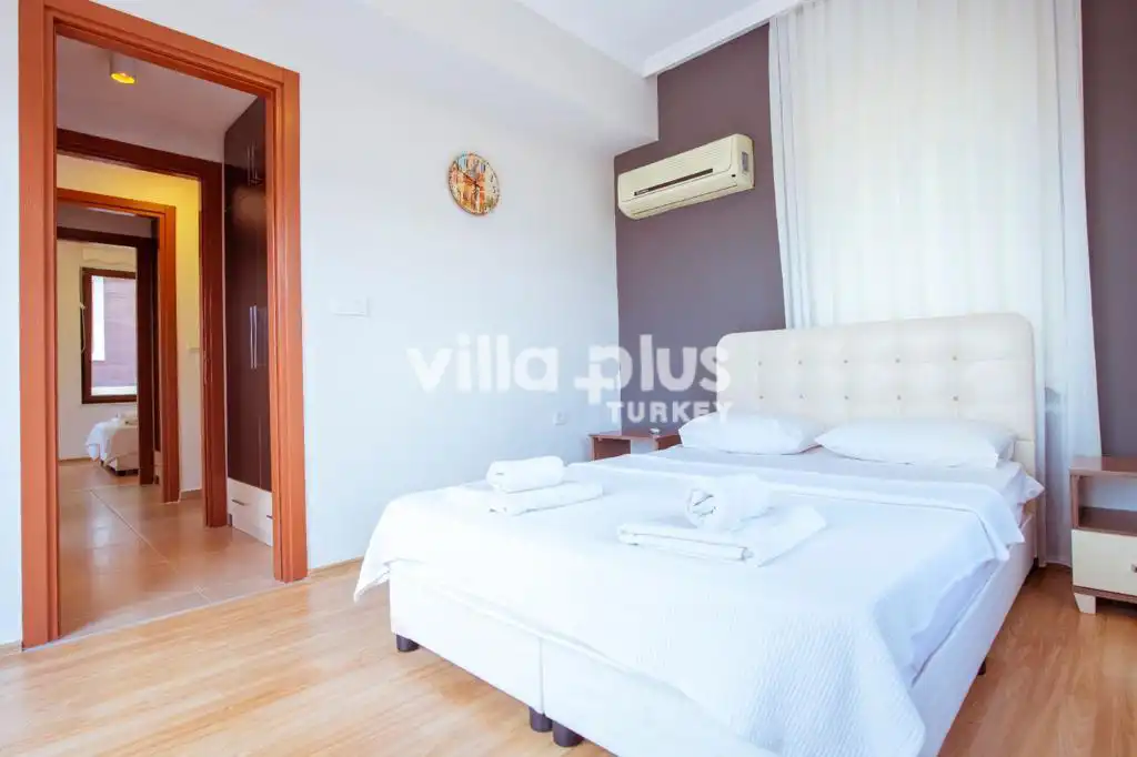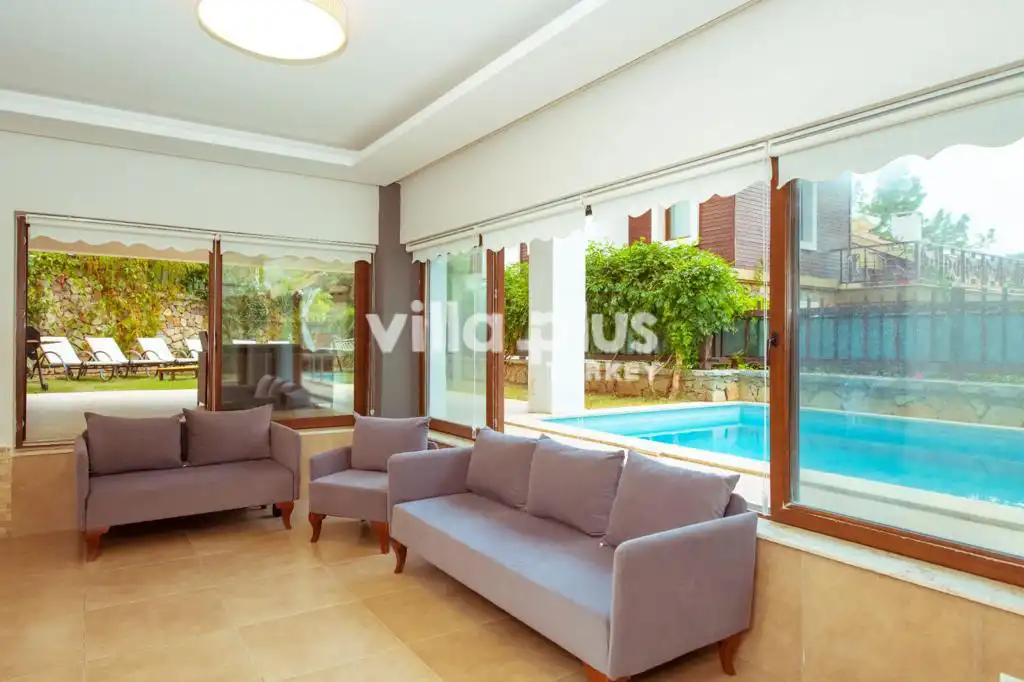 Located in the Fethiye Göcek region, this 3-storey villa offers an ideal holiday destination for large families and groups with an accommodation capacity of 8 people. The partially sheltered pool area allows guests to enjoy swimming in privacy and relieve the tiredness of the day. Offering the opportunity to spend a peaceful holiday accompanied by the magnificent view of nature, this villa is a perfect option for those looking for a comfortable and luxurious accommodation experience. Surrounded by the unique beauties of Göcek, this villa awaits you for an unforgettable holiday.