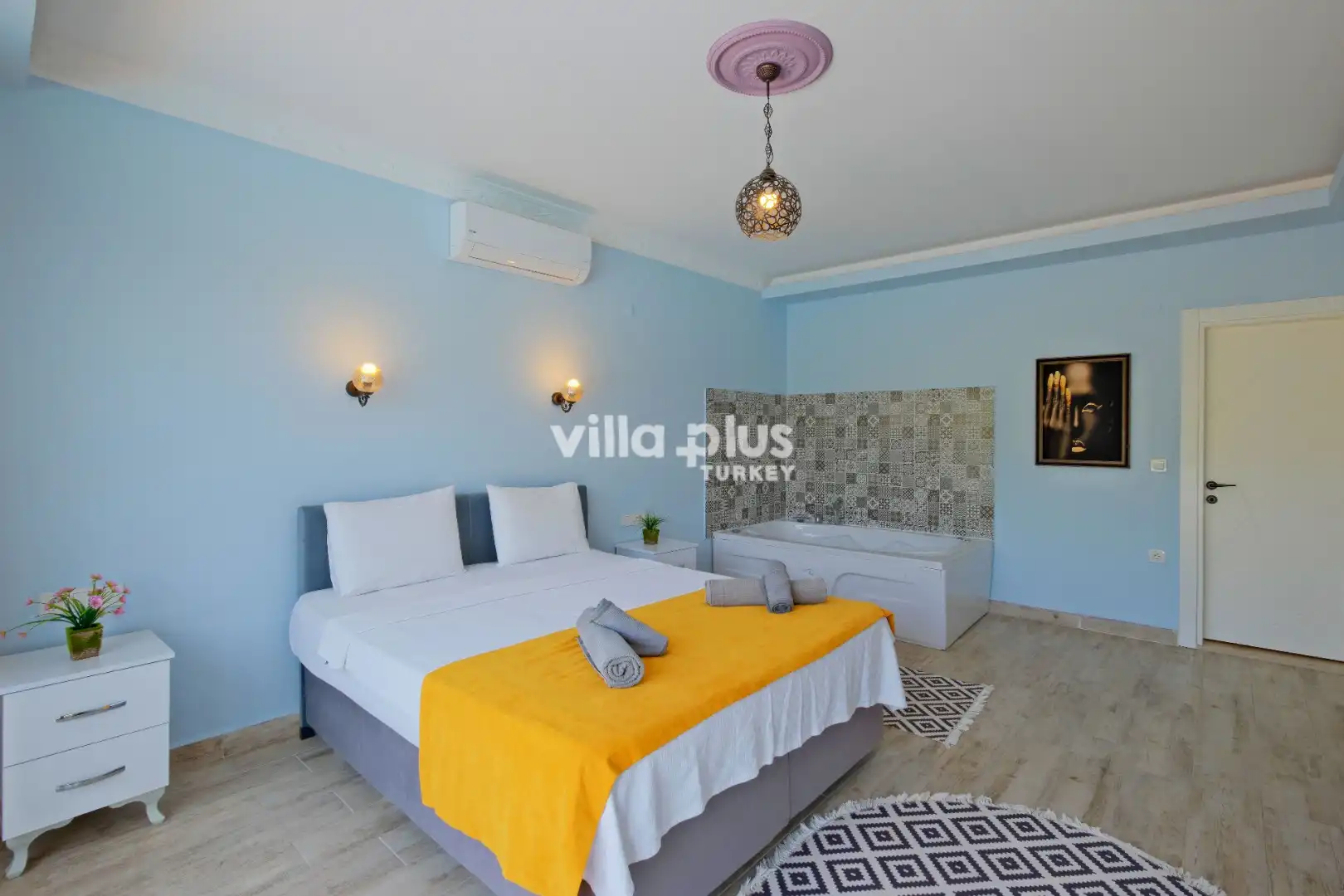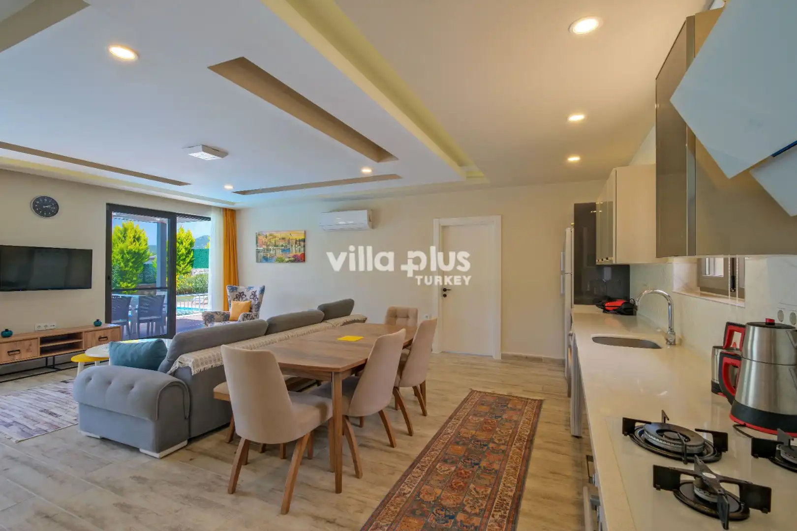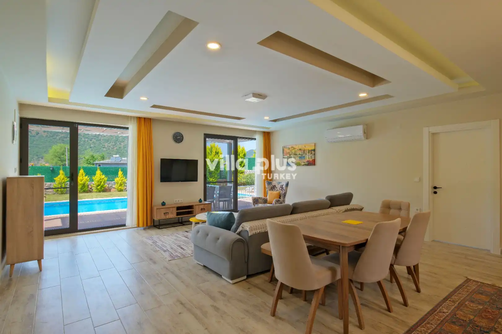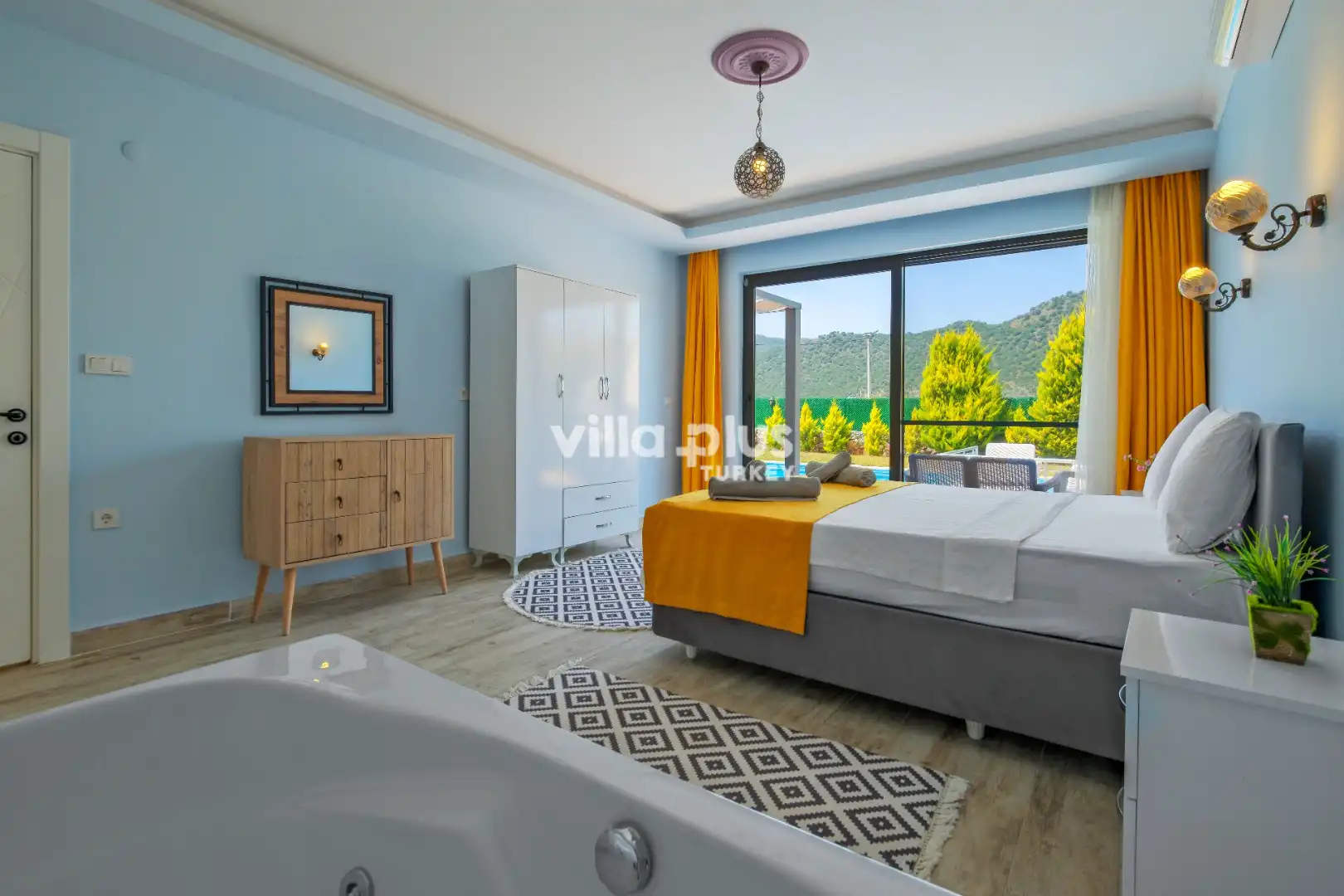 Our villa is located in Kayaköy, one of the boutique and antique villages of Fethiye. It has become one of the popular tourism centers of recent years with its pine and cedar forests surrounding it, hiking trails belonging to the Lycian civilization, and untouched deep blue coves. It offers an isolated holiday experience with its sheltered structure and quiet location for you to spend a holiday alone with your family in nature, away from disturbing eyes.