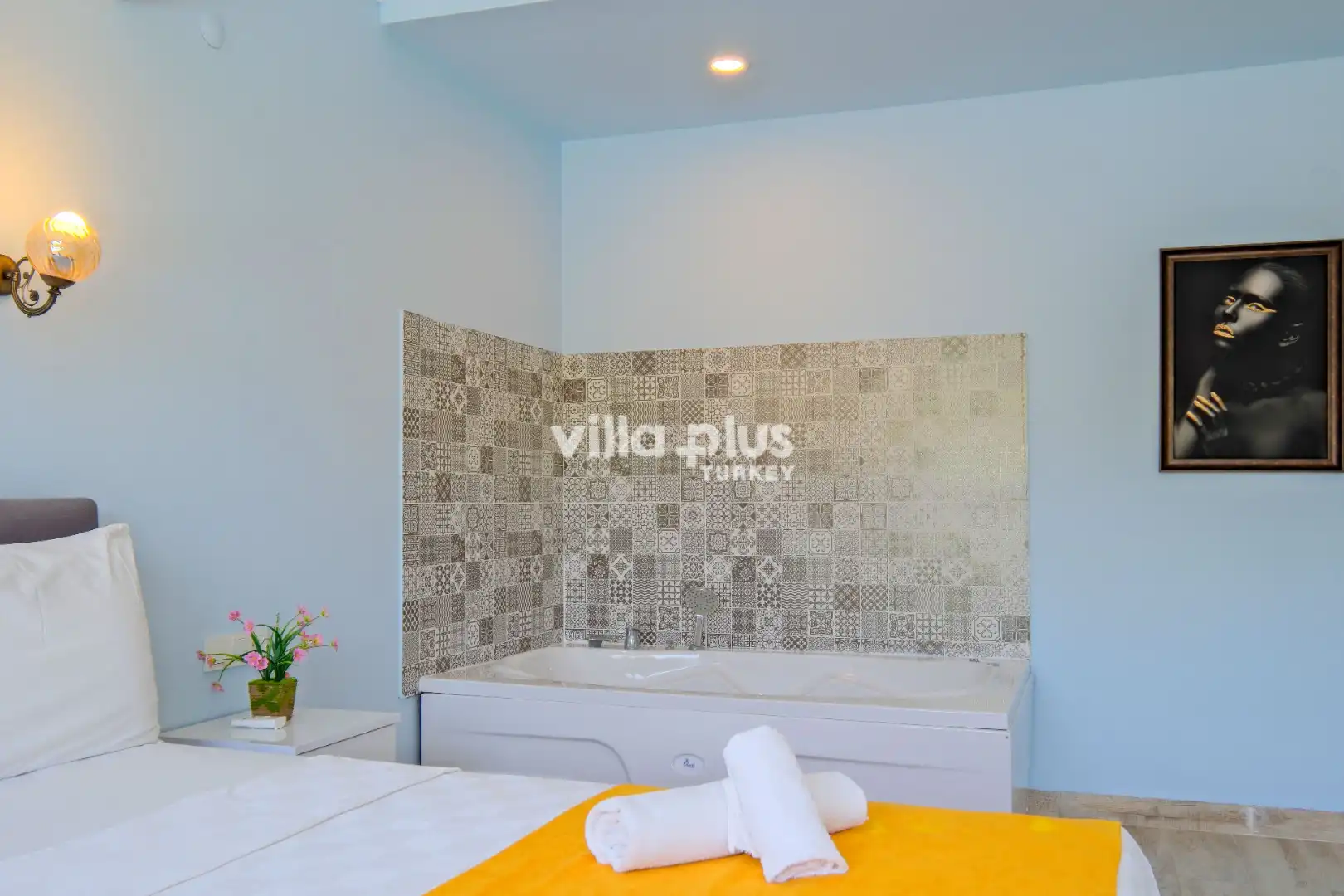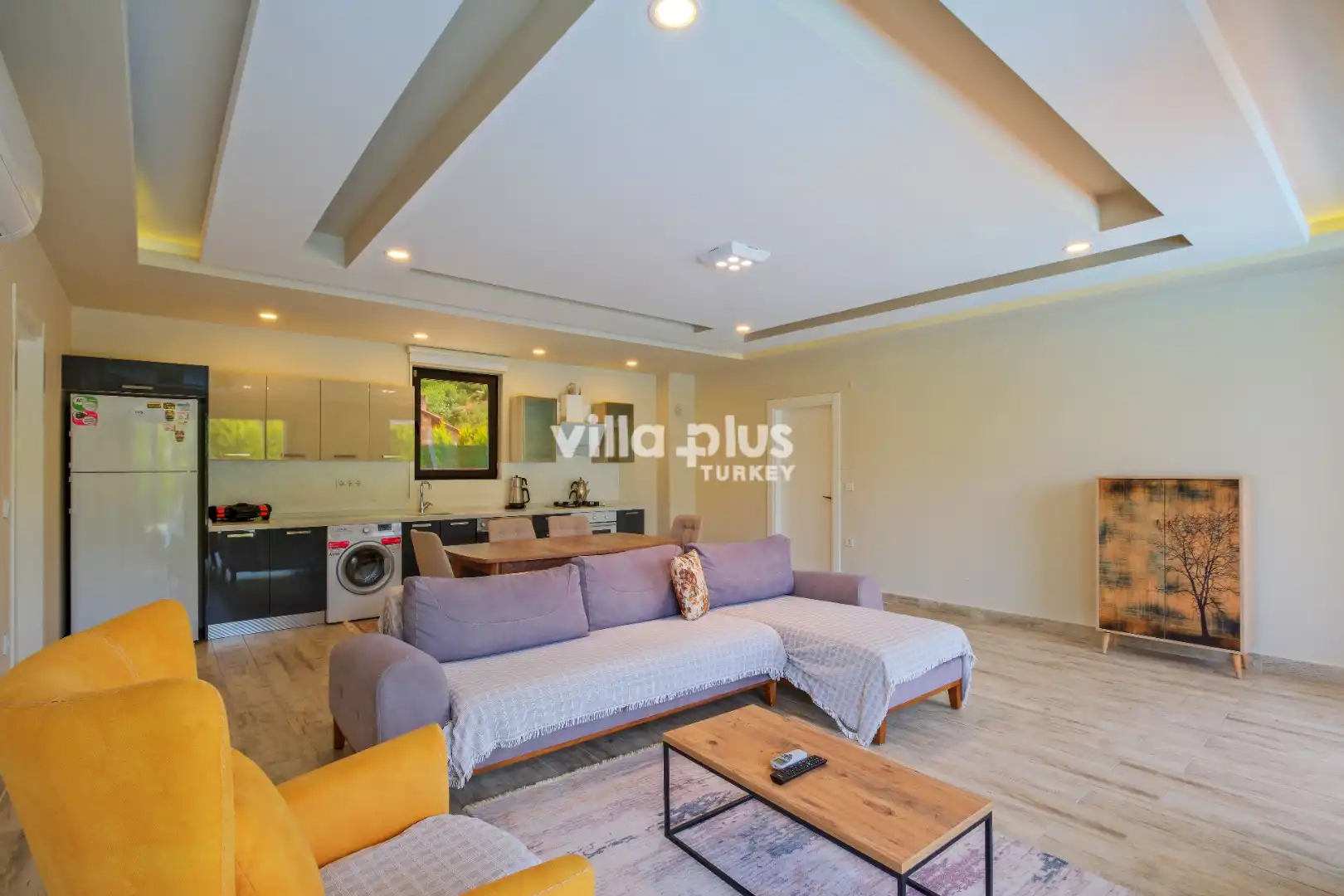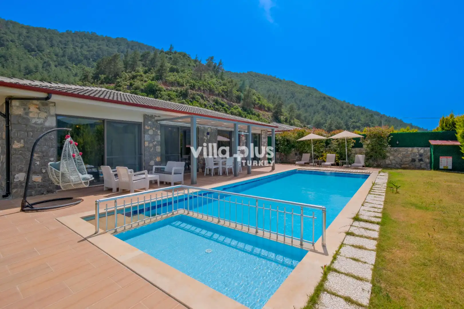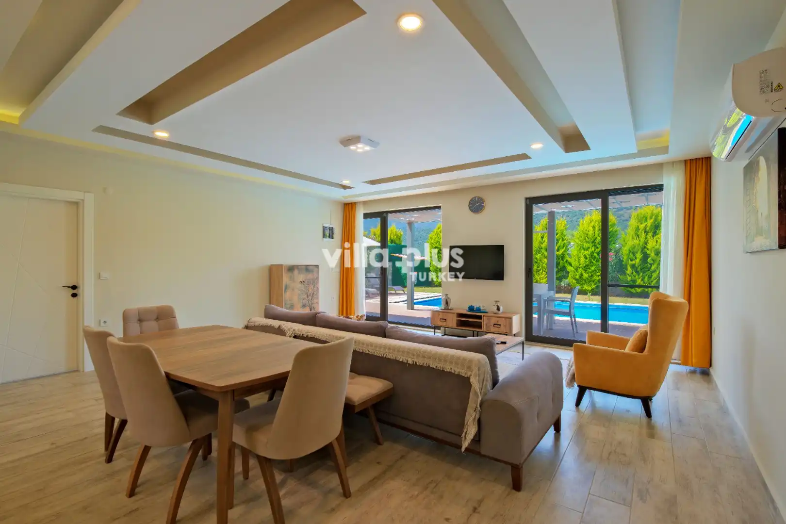 Our villa is located in Kayaköy, one of the boutique and antique villages of Fethiye. It has become one of the popular tourism centers of recent years with its pine and cedar forests surrounding it, hiking trails belonging to the Lycian civilization, and untouched deep blue coves. It offers an isolated holiday experience with its sheltered structure and quiet location for you to spend a holiday alone with your family in nature, away from disturbing eyes.