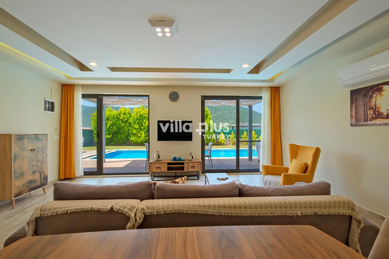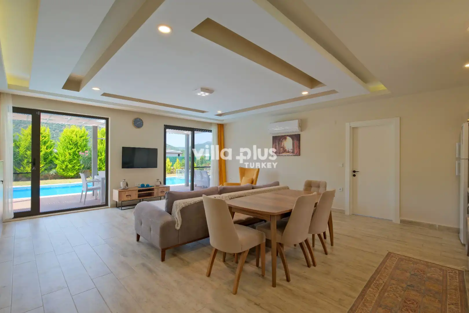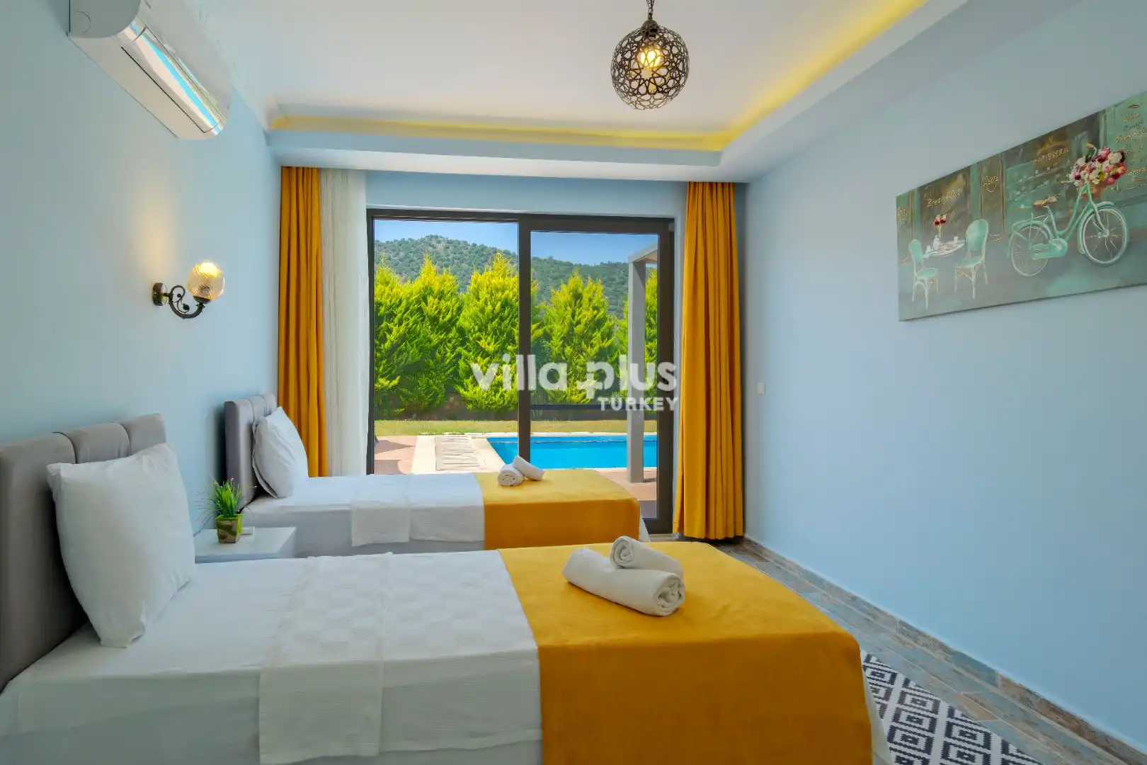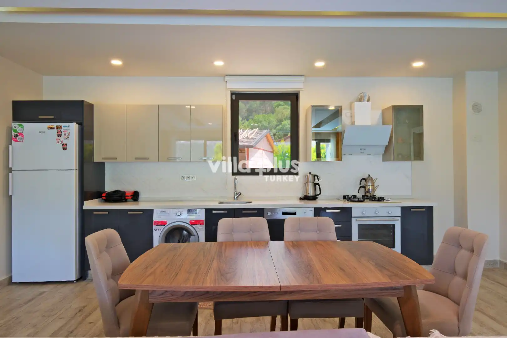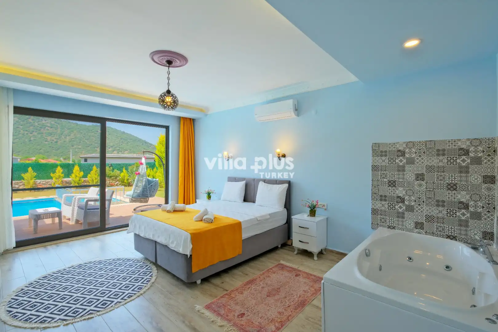 Our villa is located in Kayaköy, one of the boutique and antique villages of Fethiye. It has become one of the popular tourism centers of recent years with its pine and cedar forests surrounding it, hiking trails belonging to the Lycian civilization, and untouched deep blue coves. It offers an isolated holiday experience with its sheltered structure and quiet location for you to spend a holiday alone with your family in nature, away from disturbing eyes.
