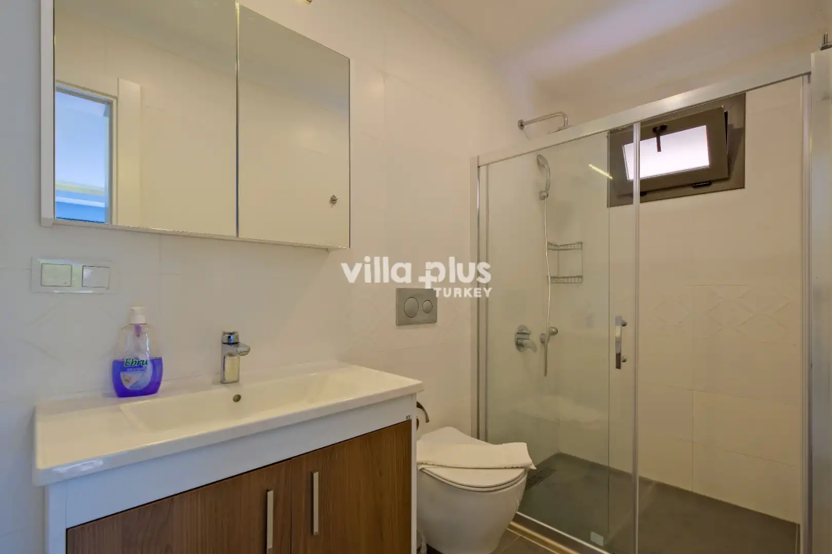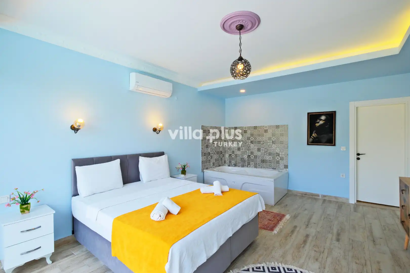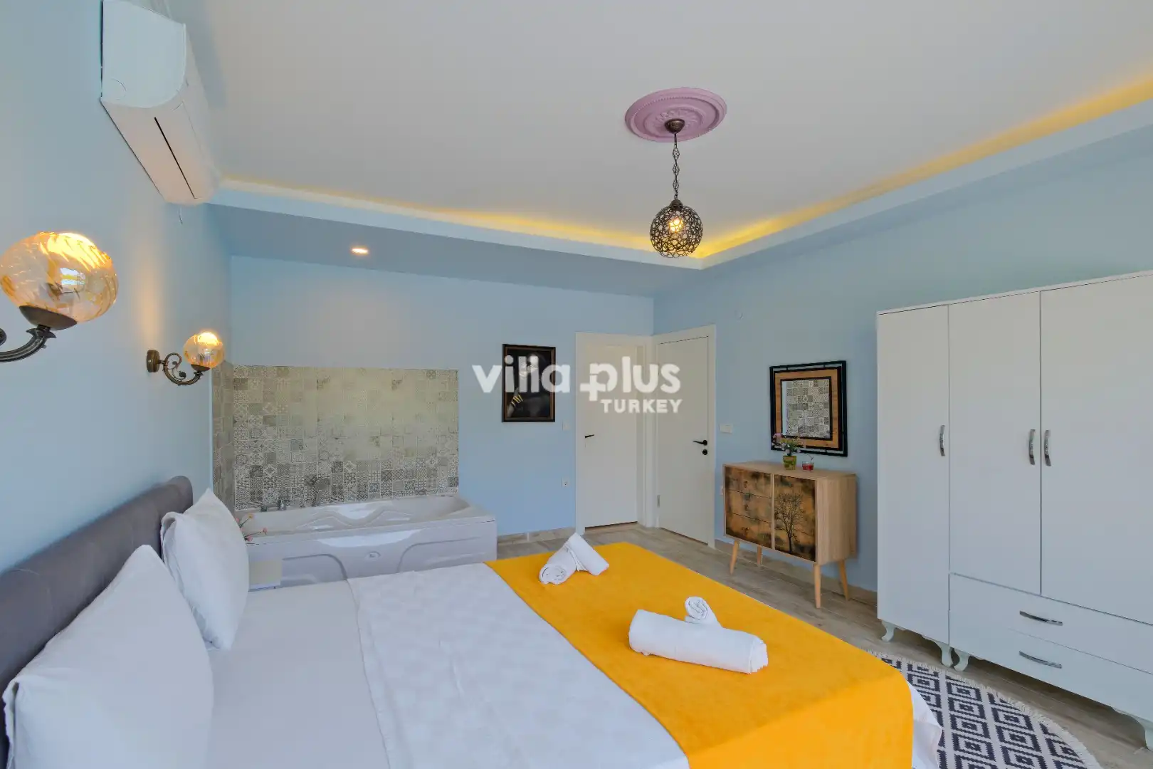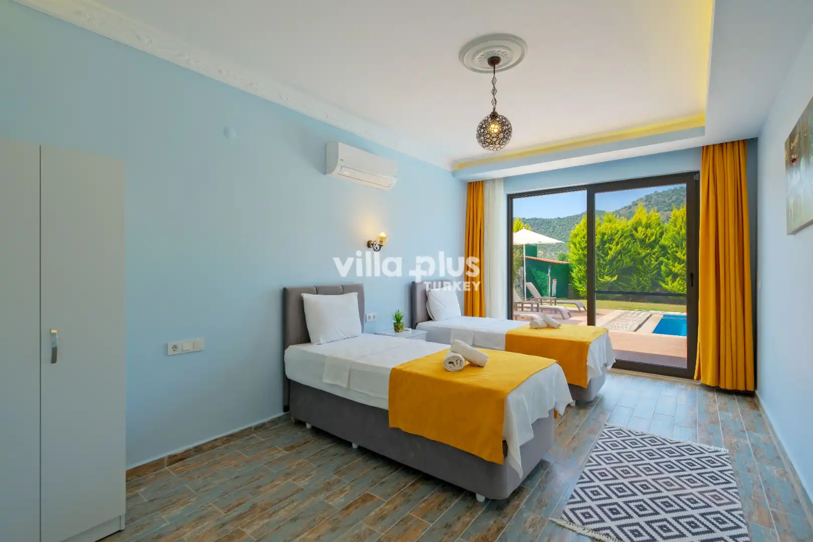 Our villa is located in Kayaköy, one of the boutique and antique villages of Fethiye. It has become one of the popular tourism centers of recent years with its pine and cedar forests surrounding it, hiking trails belonging to the Lycian civilization, and untouched deep blue coves. It offers an isolated holiday experience with its sheltered structure and quiet location for you to spend a holiday alone with your family in nature, away from disturbing eyes.