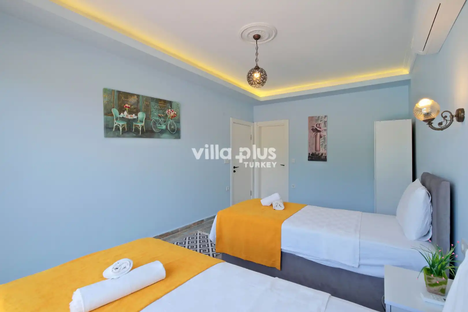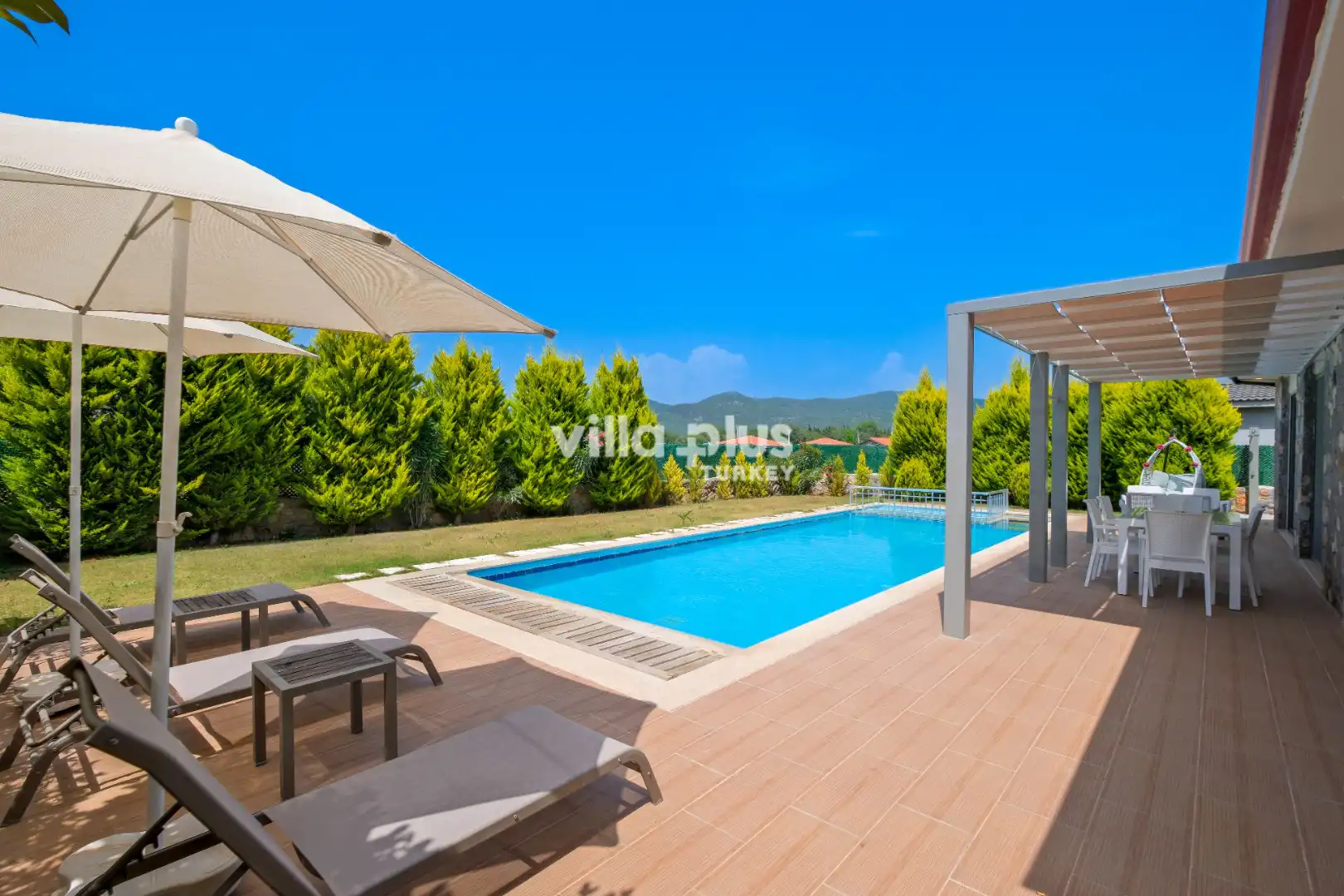 Our villa, which has 2 bedrooms, 2 bathrooms-toilets and 1 kitchen, has an accommodation capacity of 4 people. It has a 32 m2, sheltered pool in nature, a large garden, garden seating, dining table and barbecue. Villa Hale 2, will be honored to welcome you, our valued guests.