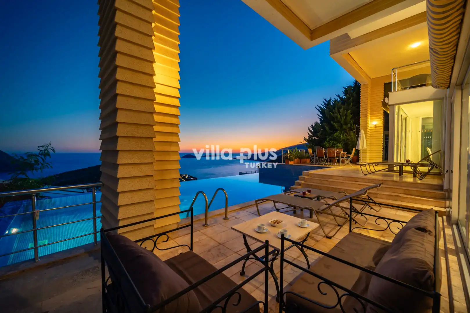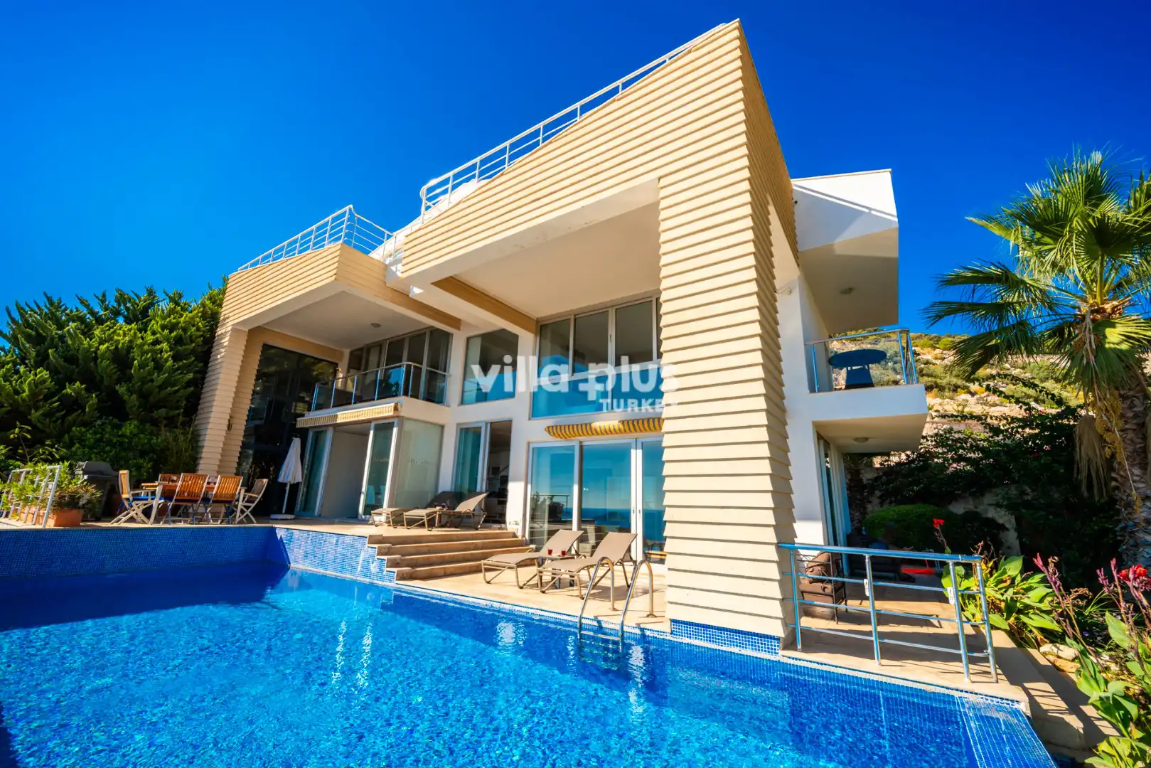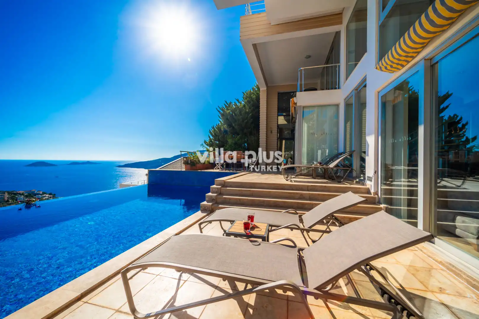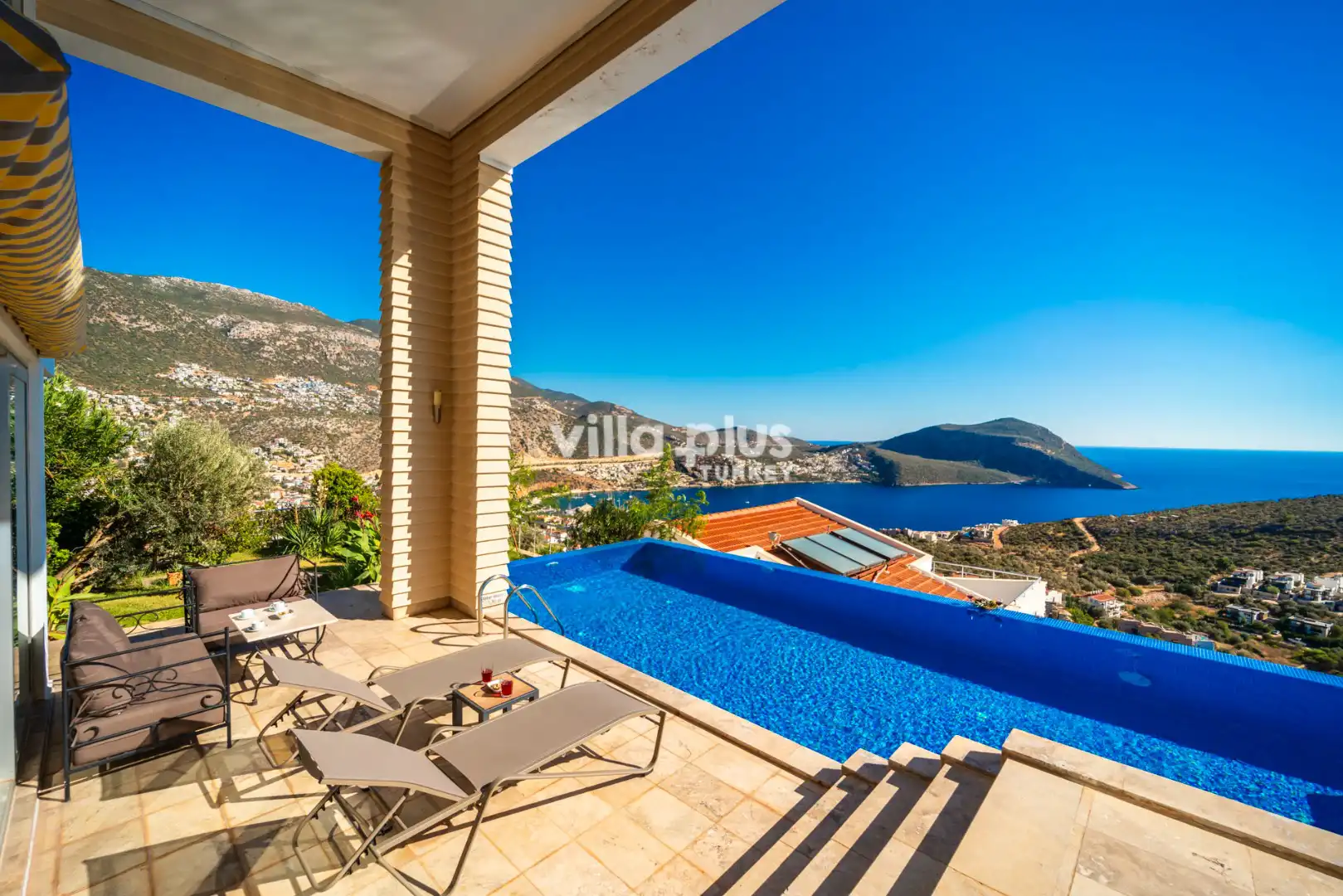 Located in Kalamar, one of the most sought-after areas of Kalkan, Villa Hendia offers a peaceful holiday with stunning views of the Mediterranean, featuring modern design and spacious living areas. With 3 bedrooms and a capacity for 6 guests, the villa promises a comfortable and luxurious experience. It is an ideal choice for those who want to relax in the tranquility of nature while also enjoying easy access to social activities in central Kalkan.