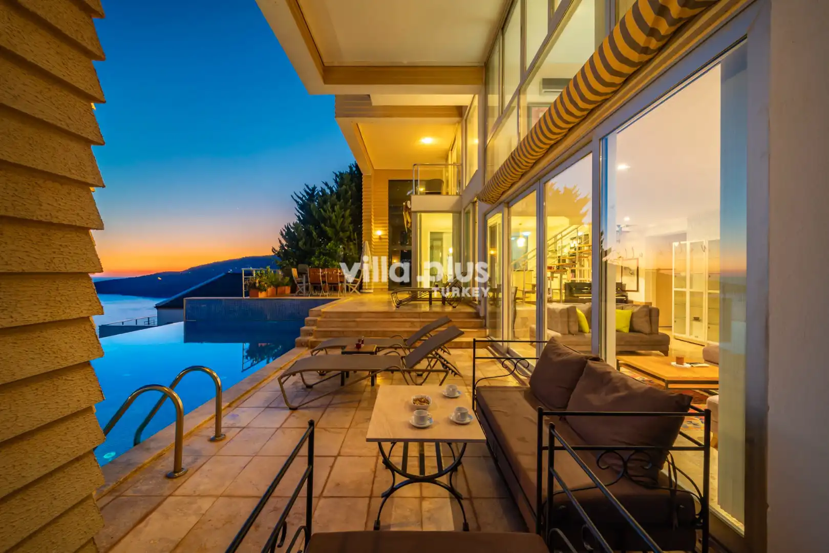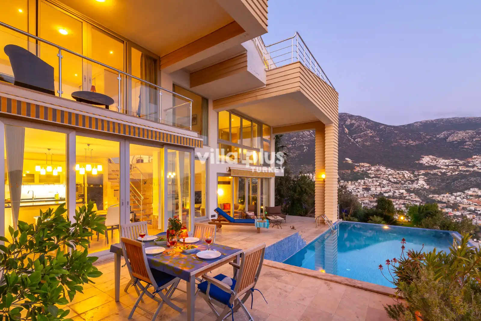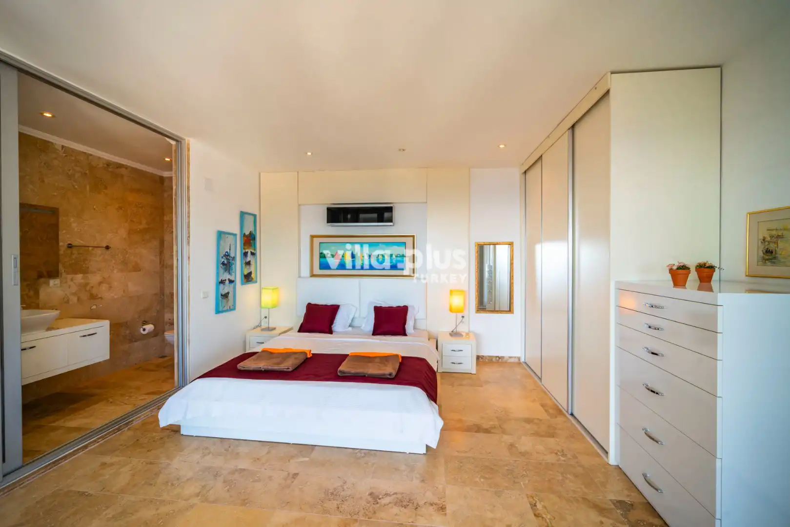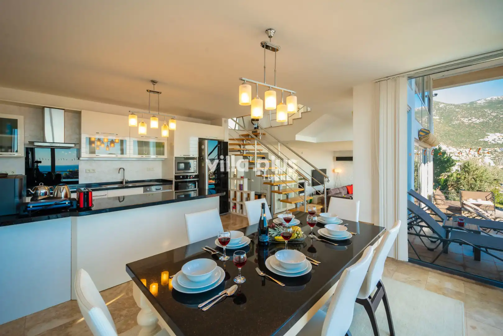 Located in Kalamar, one of the most sought-after areas of Kalkan, Villa Hendia offers a peaceful holiday with stunning views of the Mediterranean, featuring modern design and spacious living areas. With 3 bedrooms and a capacity for 6 guests, the villa promises a comfortable and luxurious experience. It is an ideal choice for those who want to relax in the tranquility of nature while also enjoying easy access to social activities in central Kalkan.