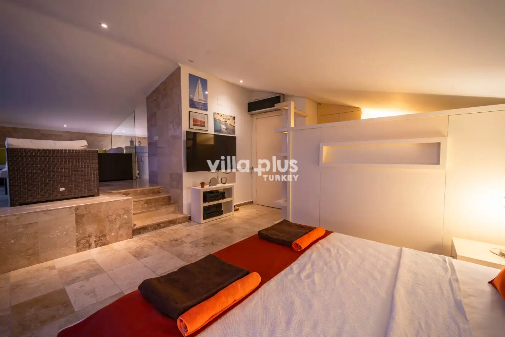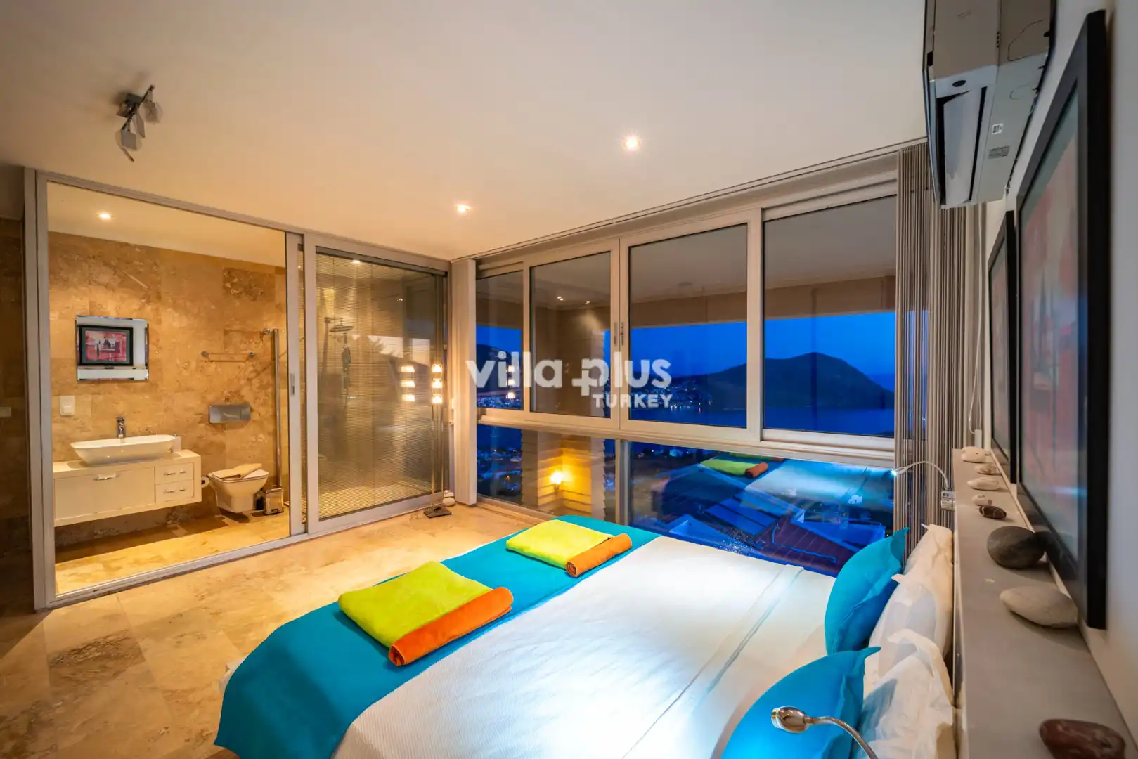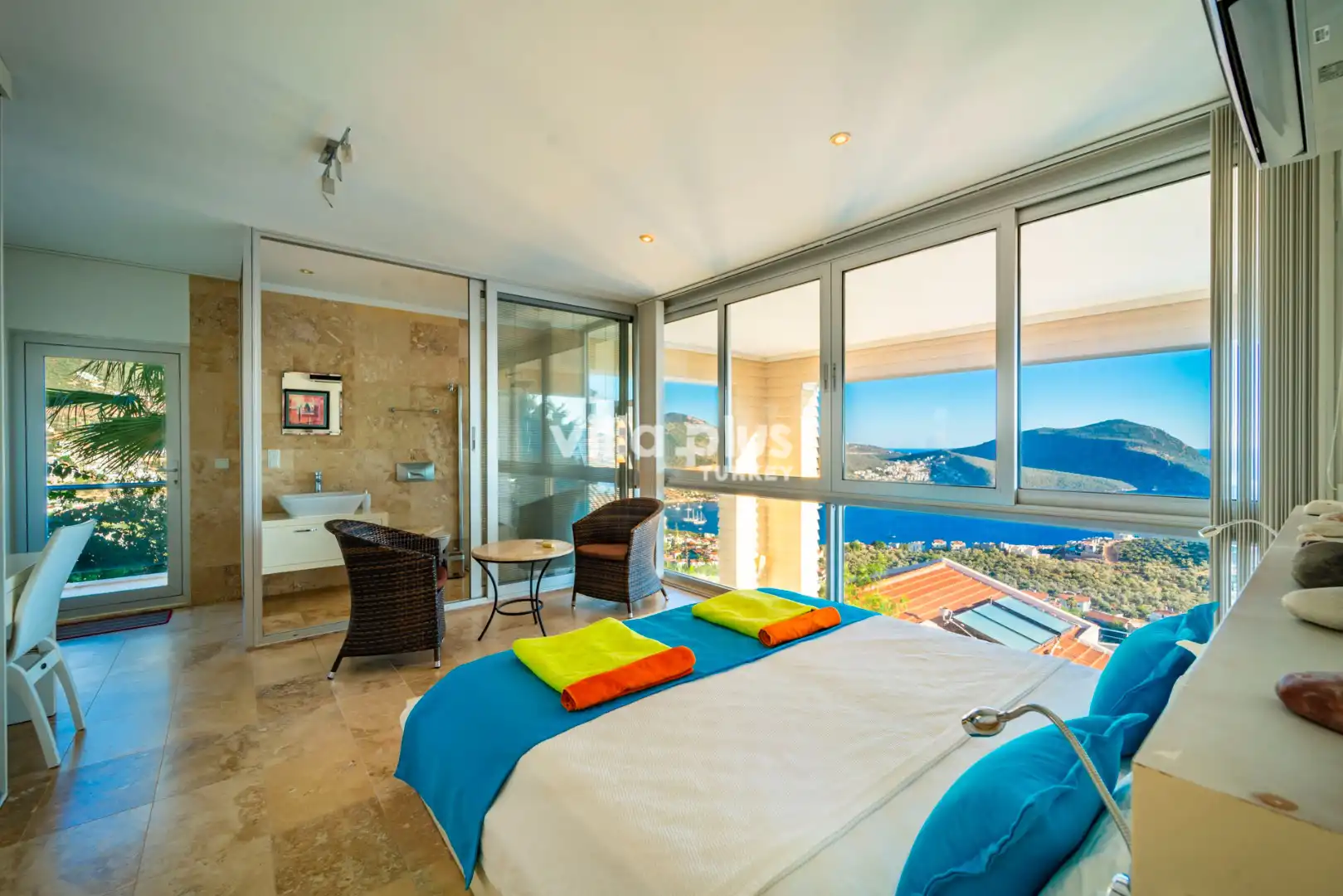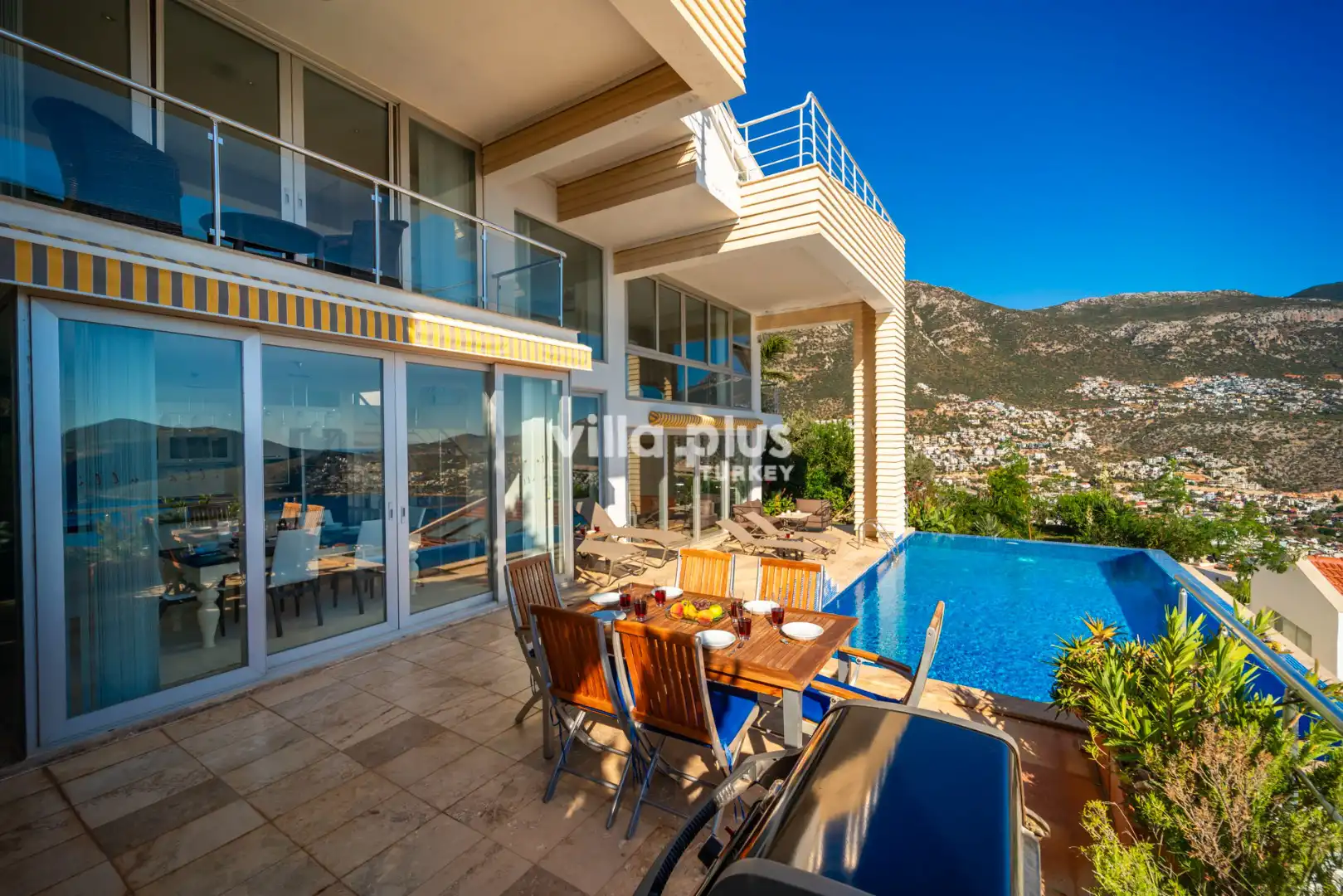 Located in Kalamar, one of the most sought-after areas of Kalkan, Villa Hendia offers a peaceful holiday with stunning views of the Mediterranean, featuring modern design and spacious living areas. With 3 bedrooms and a capacity for 6 guests, the villa promises a comfortable and luxurious experience. It is an ideal choice for those who want to relax in the tranquility of nature while also enjoying easy access to social activities in central Kalkan.