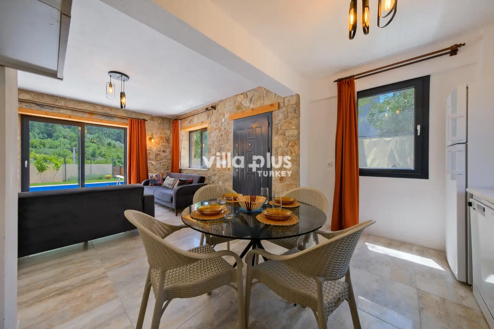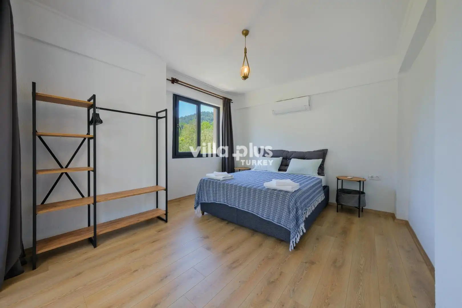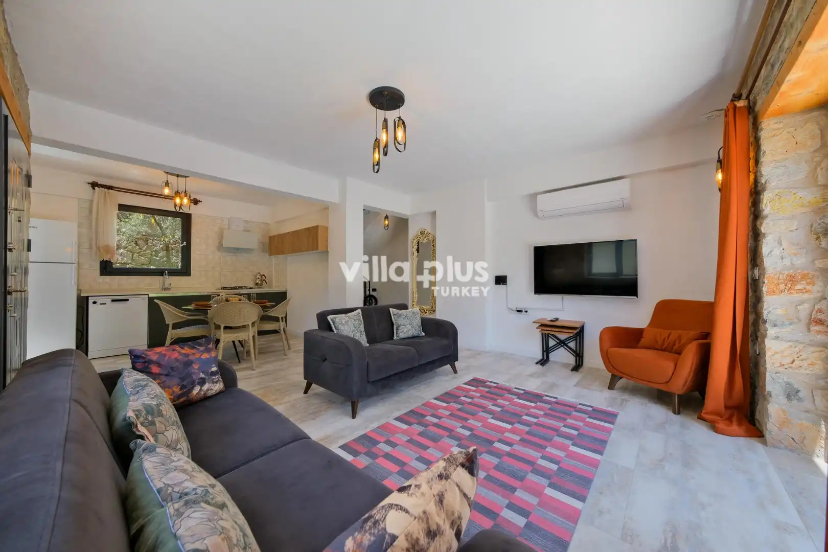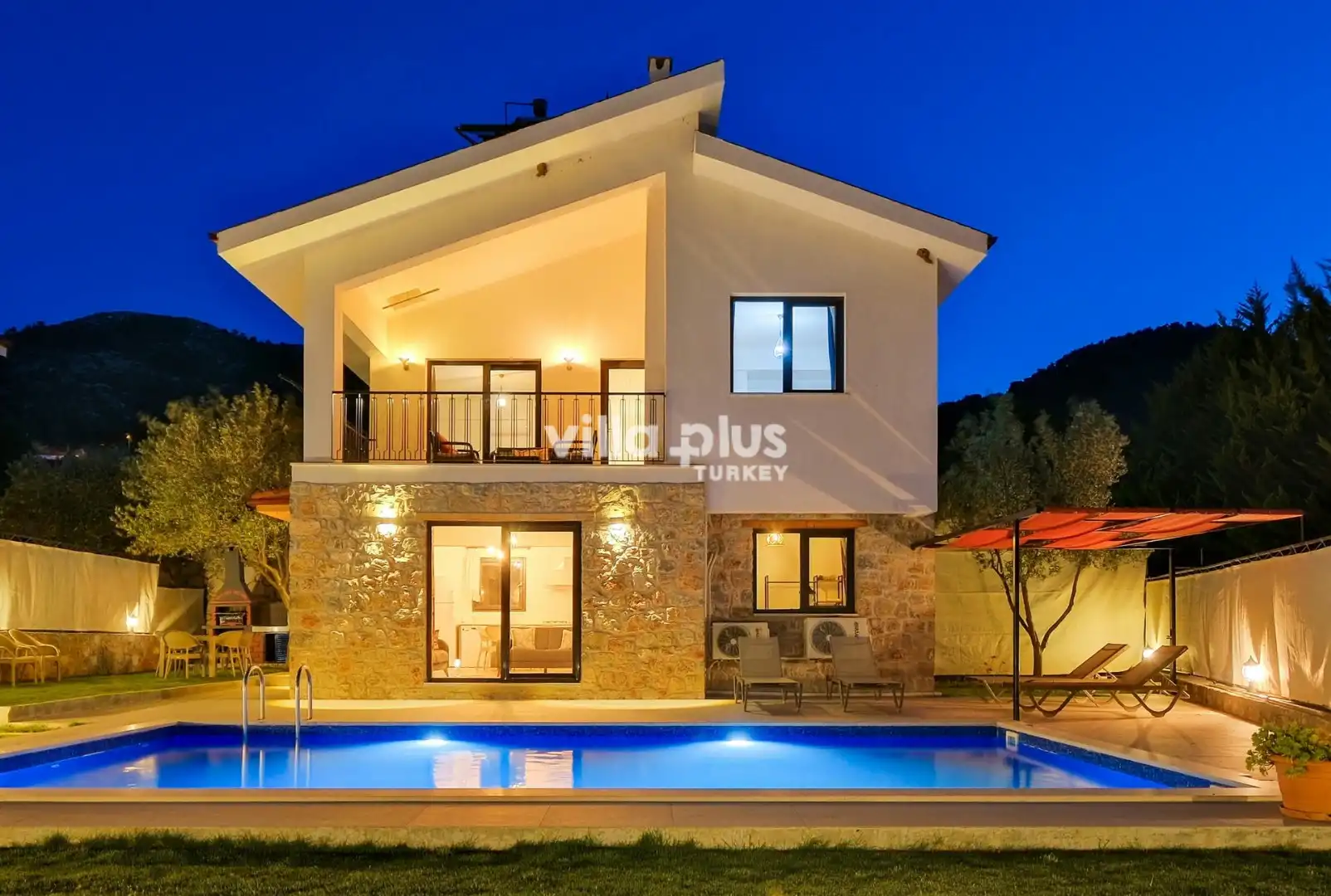 Villa Karmina 1 is located in Yeşil Üzümlü, one of Fethiye’s most sought-after holiday destinations. With a private swimming pool and accommodation for up to six guests, it offers a peaceful retreat surrounded by nature. Designed for unforgettable moments with your loved ones, the villa features a spacious garden, comfortable seating areas, and breathtaking natural views. Wake up to the sounds of birds, cool off in the pool, and spend your day relaxing under the shade of olive trees with a good book. In the evenings, enjoy delightful meals prepared on the stone barbecue while sharing memorable conversations. If you’re looking for the perfect getaway to sip your coffee in the serene atmosphere of pine forests and explore Fethiye’s rich history and natural wonders, Villa Karmina 1 is the ideal choice.