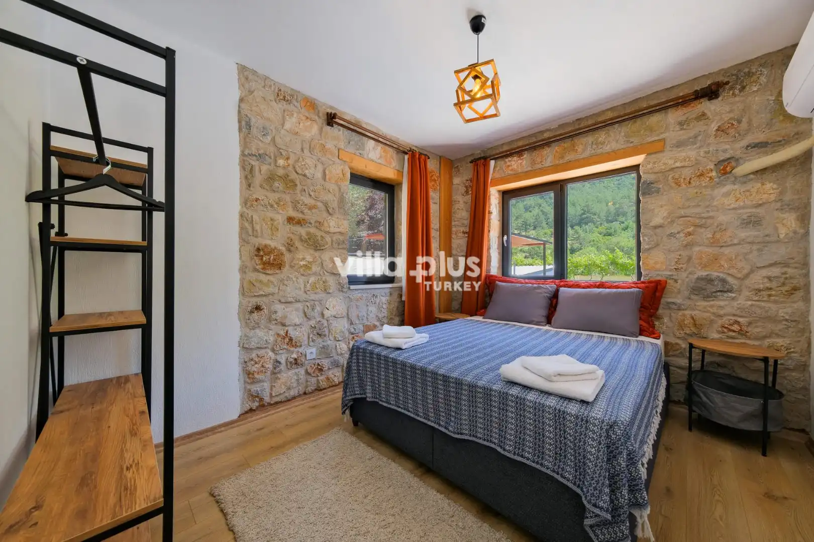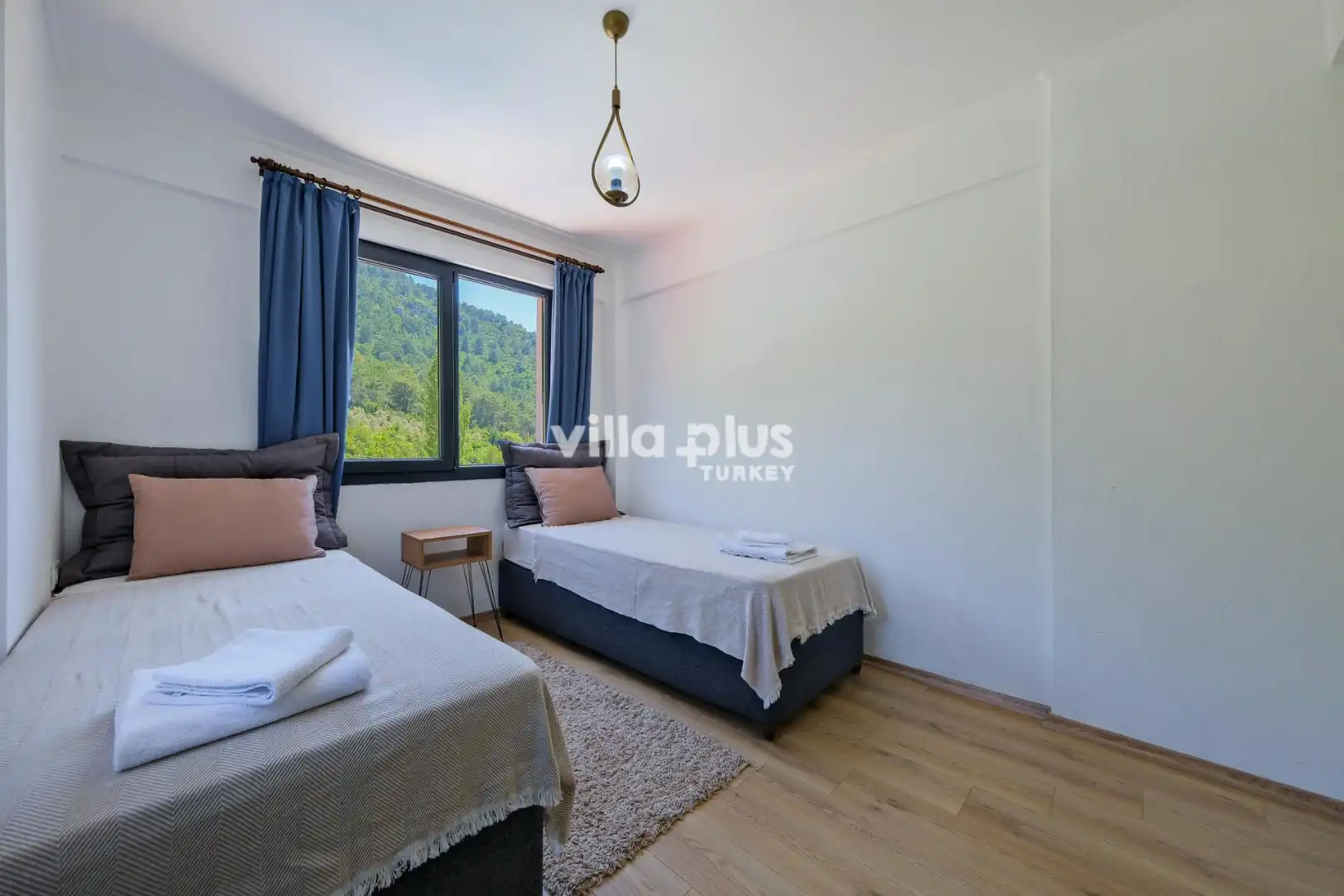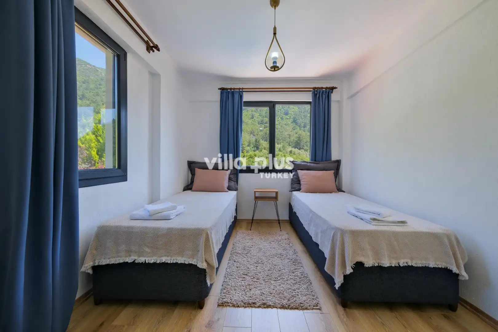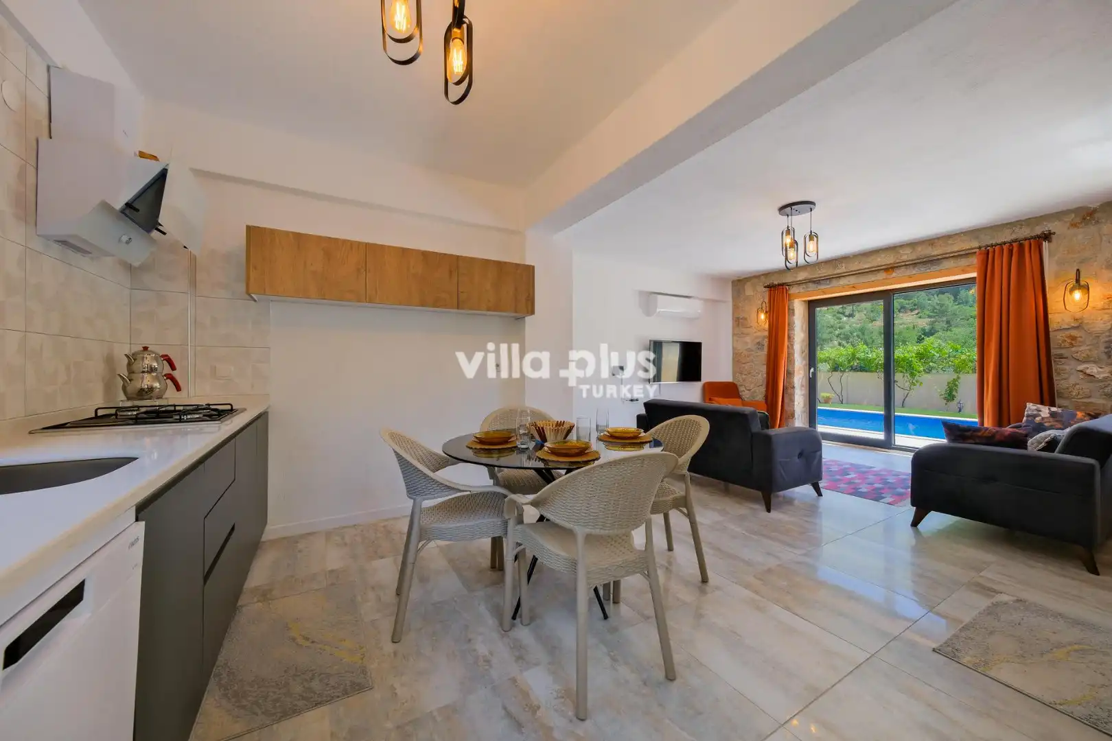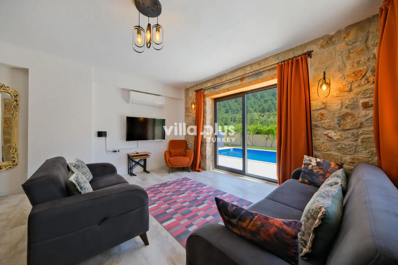 Villa Karmina 1 is located in Yeşil Üzümlü, one of Fethiye’s most sought-after holiday destinations. With a private swimming pool and accommodation for up to six guests, it offers a peaceful retreat surrounded by nature. Designed for unforgettable moments with your loved ones, the villa features a spacious garden, comfortable seating areas, and breathtaking natural views. Wake up to the sounds of birds, cool off in the pool, and spend your day relaxing under the shade of olive trees with a good book. In the evenings, enjoy delightful meals prepared on the stone barbecue while sharing memorable conversations. If you’re looking for the perfect getaway to sip your coffee in the serene atmosphere of pine forests and explore Fethiye’s rich history and natural wonders, Villa Karmina 1 is the ideal choice.