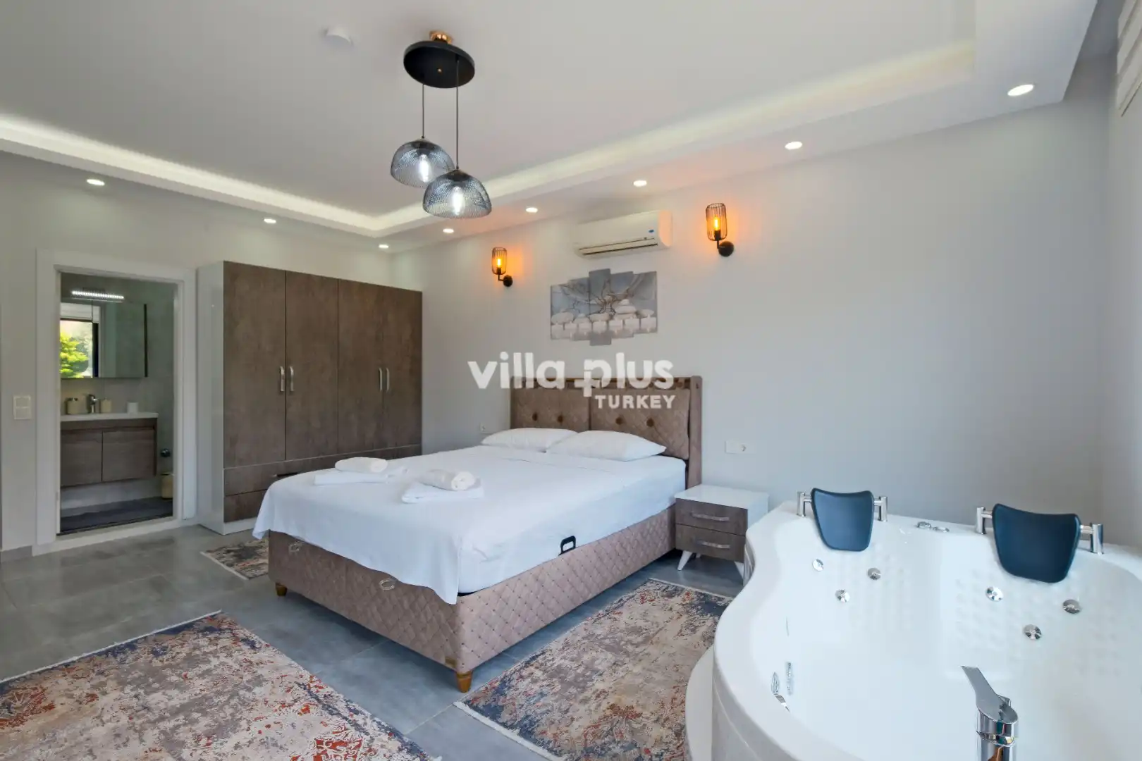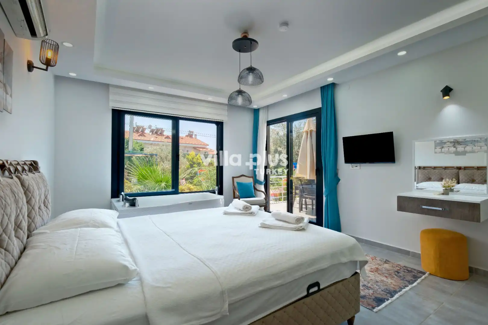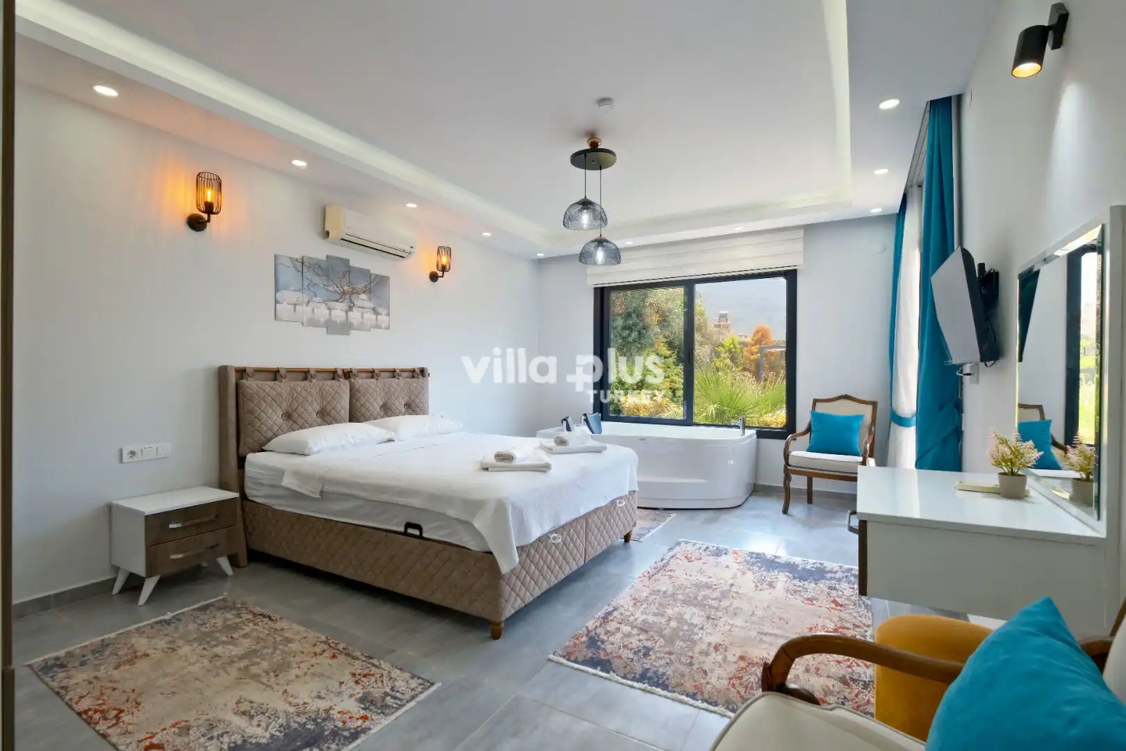 Villa Karo features two bedrooms, with a jacuzzi in one of the rooms and relaxing amenities such as a sauna in other living areas. With a capacity of 4 guests, the villa is a peaceful retreat for families and groups of friends. Its modern architecture, stylish details, and natural setting make Villa Karo the perfect choice for an unforgettable holiday in Fethiye.