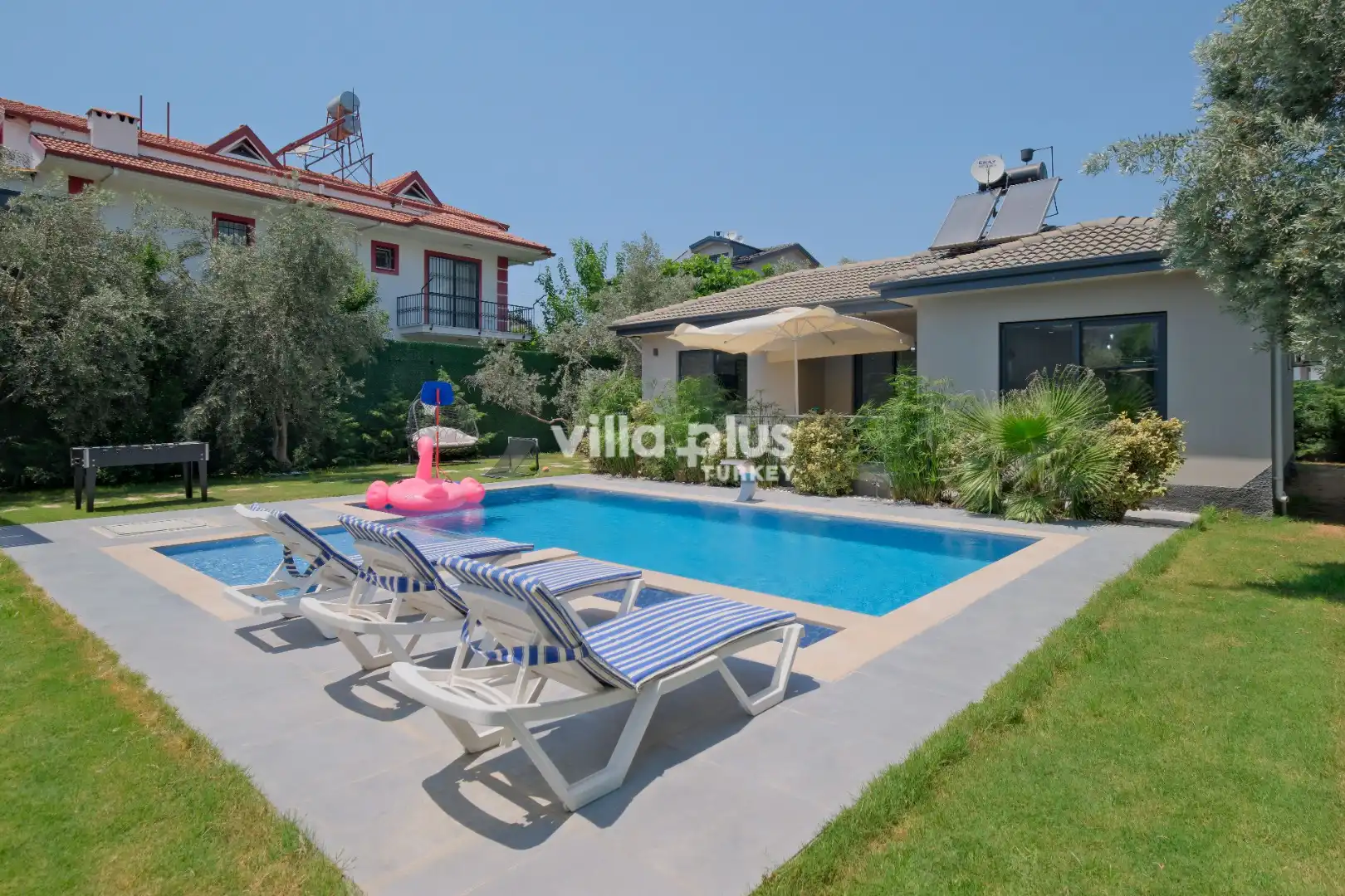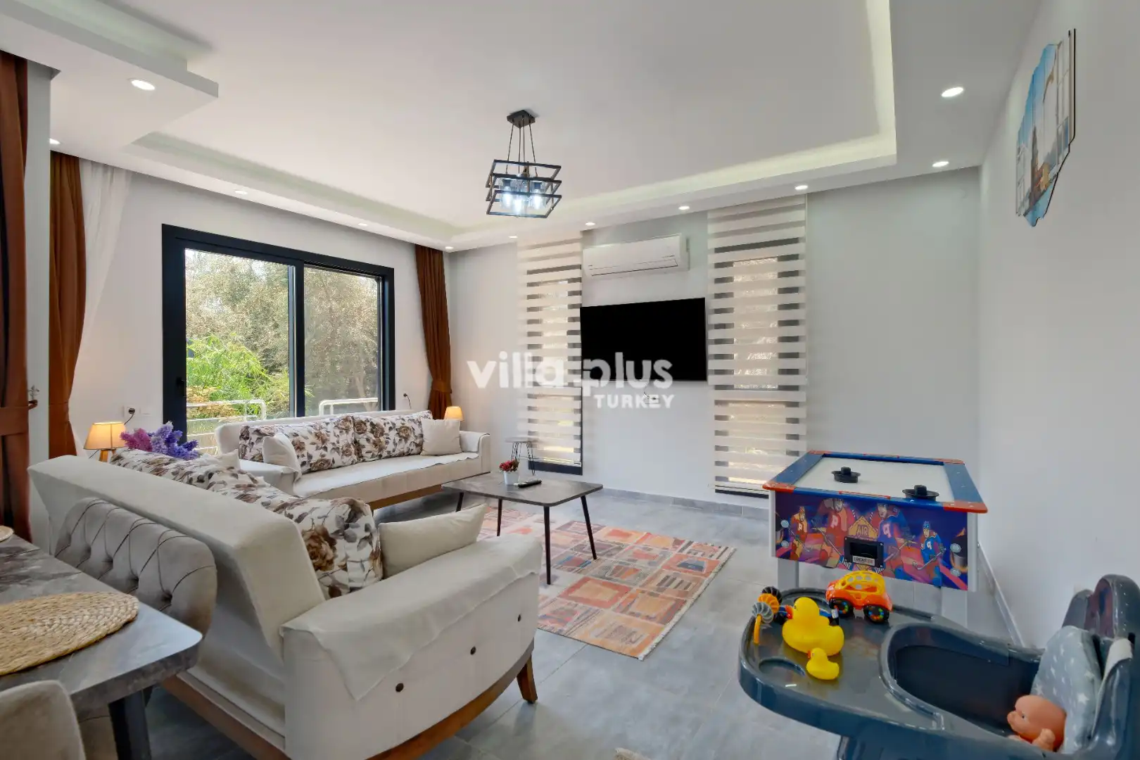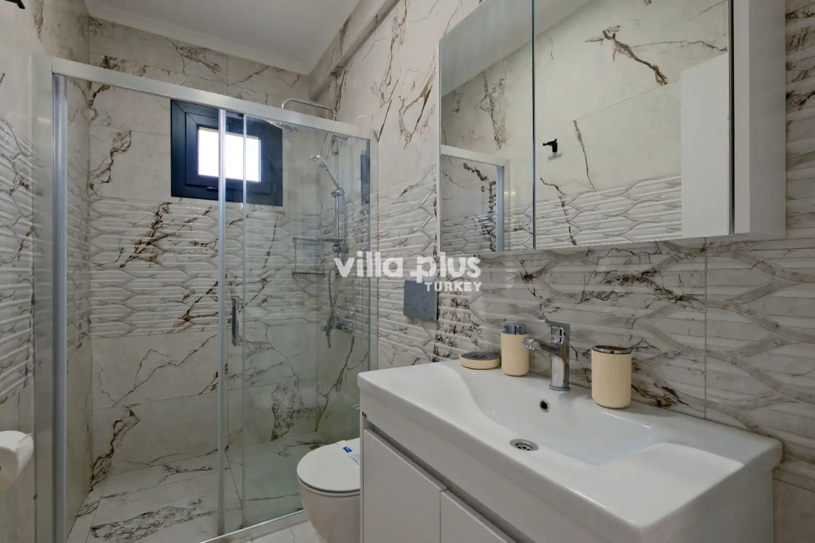 Villa Karo features two bedrooms, with a jacuzzi in one of the rooms and relaxing amenities such as a sauna in other living areas. With a capacity of 4 guests, the villa is a peaceful retreat for families and groups of friends. Its modern architecture, stylish details, and natural setting make Villa Karo the perfect choice for an unforgettable holiday in Fethiye.