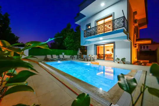 Villa Lunea Uno, located in the central Babataşı neighborhood of Fethiye, stands out with its modern architecture. The villa features 4 bedrooms and can accommodate up to 8 guests. With its spacious layout, suitable room count for large families, and advantageous location,Villa Lunea Uno offers a comfortable and peaceful holiday experience.