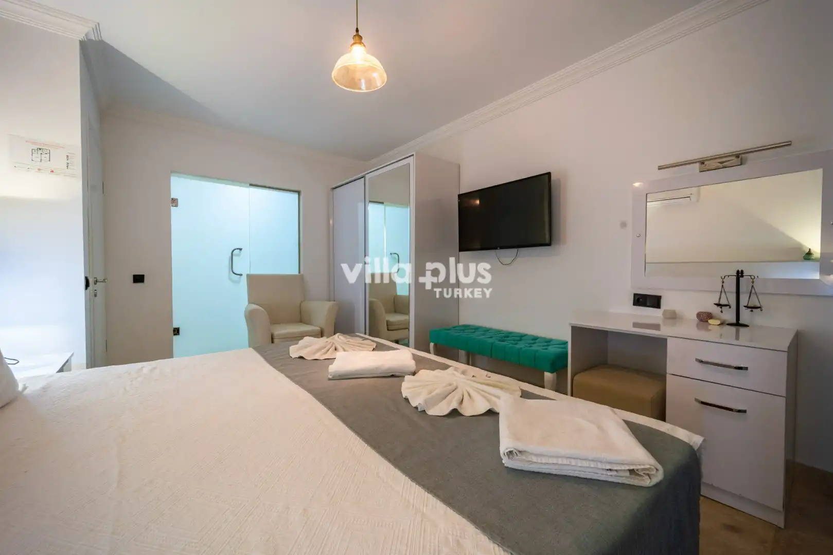 Located in the heart of Kalkan, this elegant villa offers a prime location just a short walking distance from restaurants, cafes, and the sea. With three bedrooms and accommodation capacity for up to six guests, it is an ideal choice for a comfortable and enjoyable holiday. The private pool area allows you to enjoy a peaceful and relaxing stay with your loved ones. In addition, the children’s pool makes this villa especially suitable for families with kids.