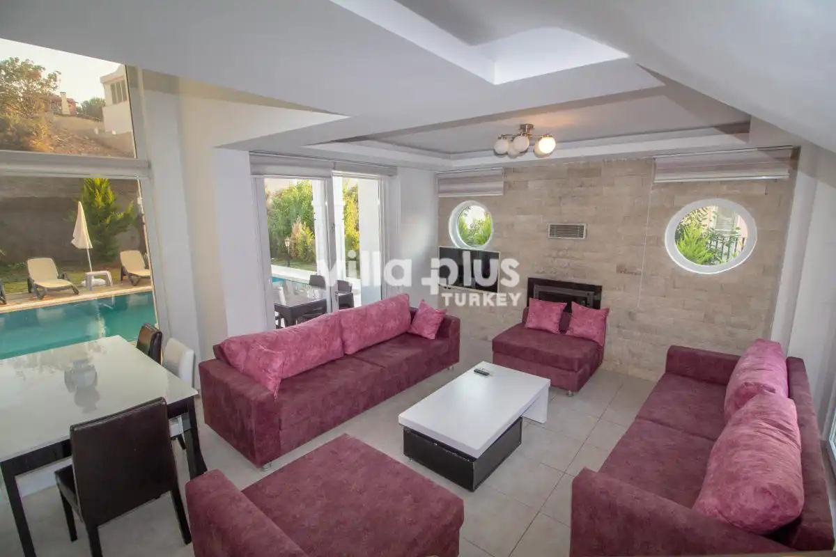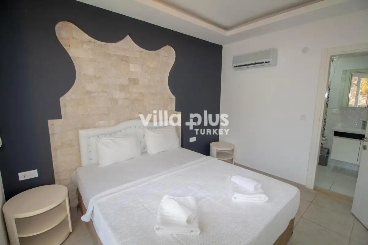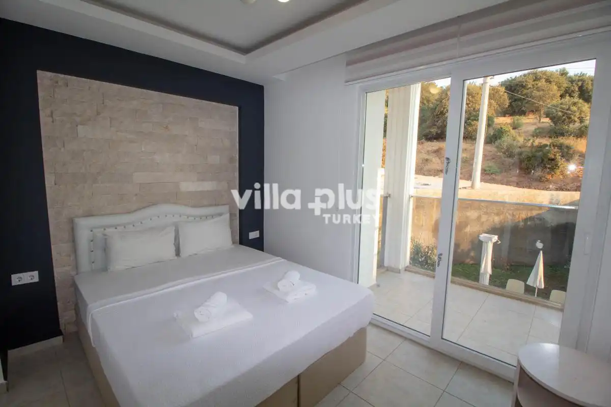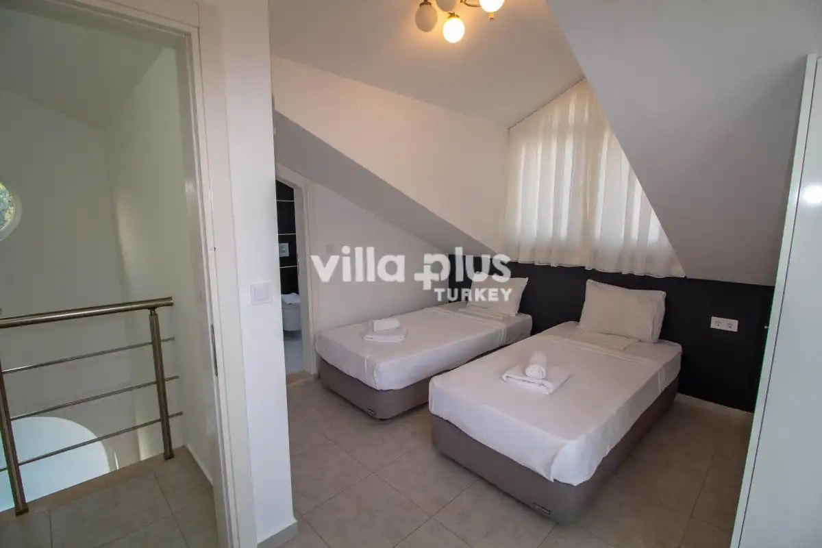 The interior features stylish and high-quality furnishings, airy rooms, and a fully equipped kitchen, designed with every detail to ensure guest comfort. Nestled in a quiet environment close to nature, the villa also benefits from a convenient location with easy access to Ölüdeniz Beach by car.