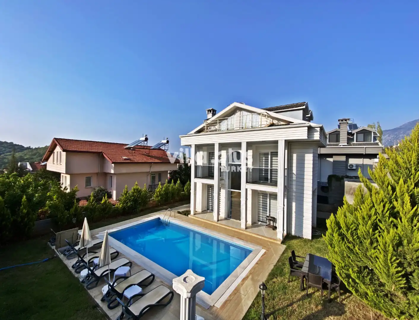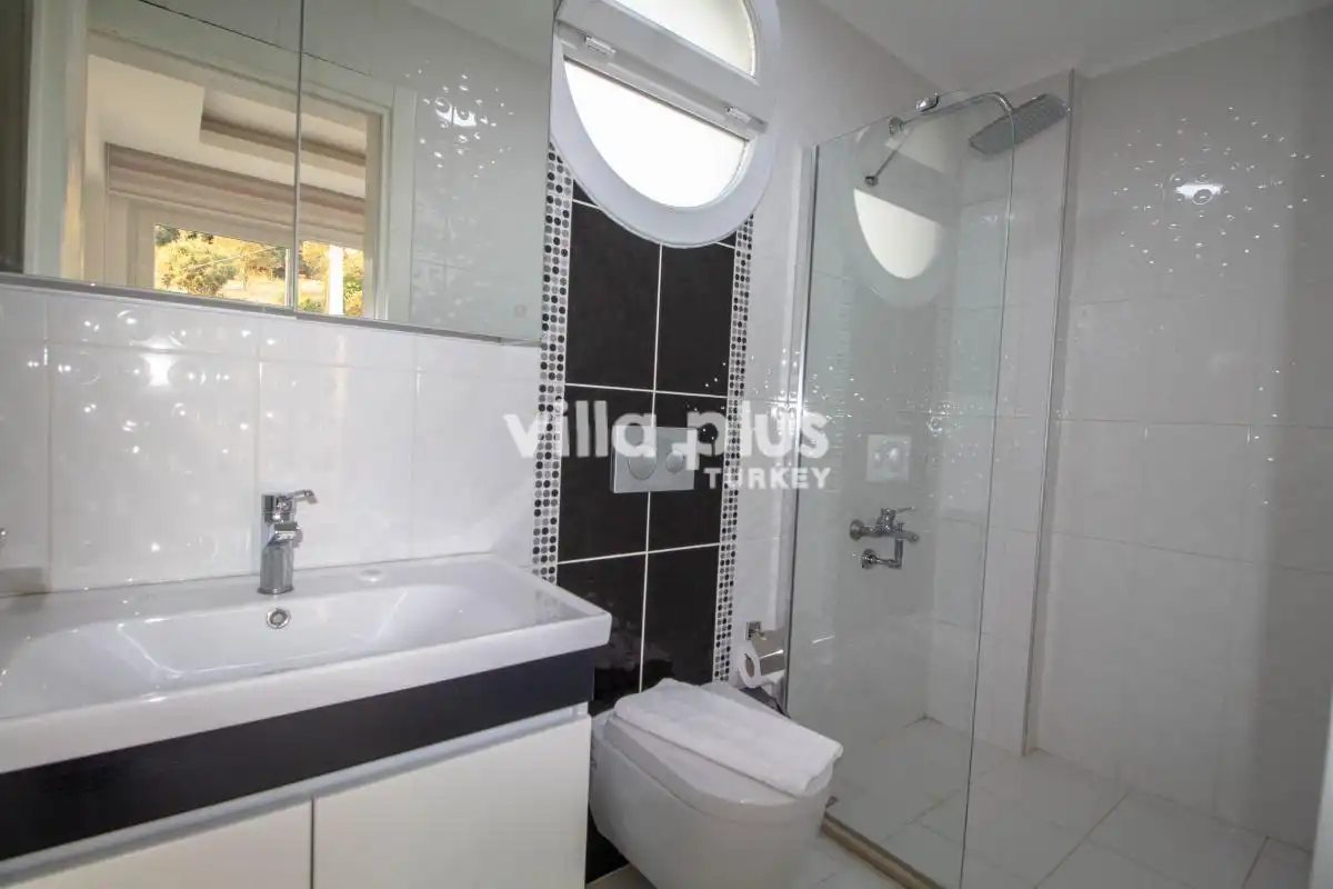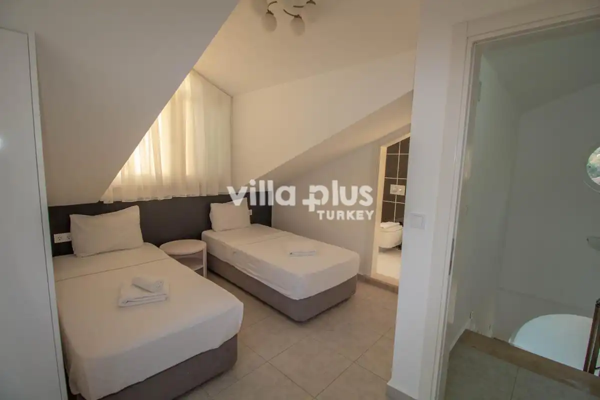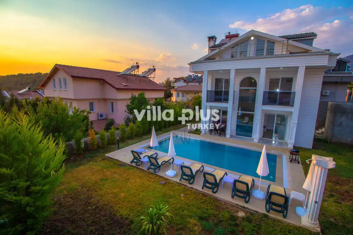The interior features stylish and high-quality furnishings, airy rooms, and a fully equipped kitchen, designed with every detail to ensure guest comfort. Nestled in a quiet environment close to nature, the villa also benefits from a convenient location with easy access to Ölüdeniz Beach by car.