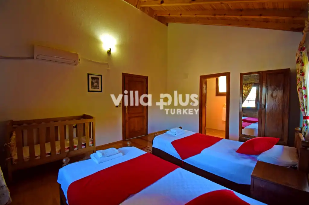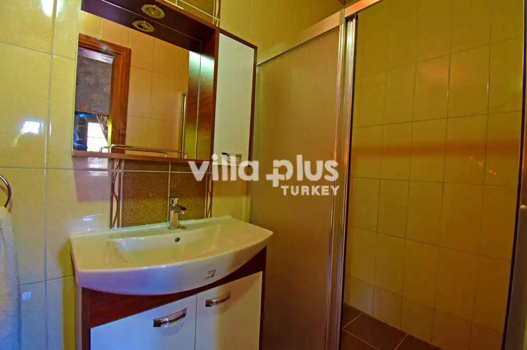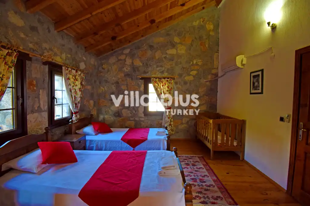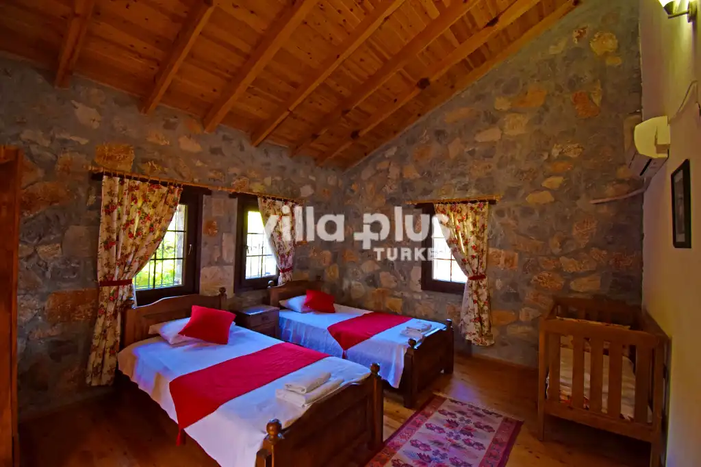 Villa Orina 4 is located in the Fethiye/Kayaköy area. This private villa with a pool features stone architecture that harmonizes naturally with its surroundings. It offers 3 bedrooms, each with its own en-suite bathroom, and an additional shared WC on the ground floor. Surrounded by lush forest, Villa Orina 4 provides poolside seating areas and a garden barbecue area for enjoyable moments during your stay. The villa is private and secluded, with its pool not visible from the outside.