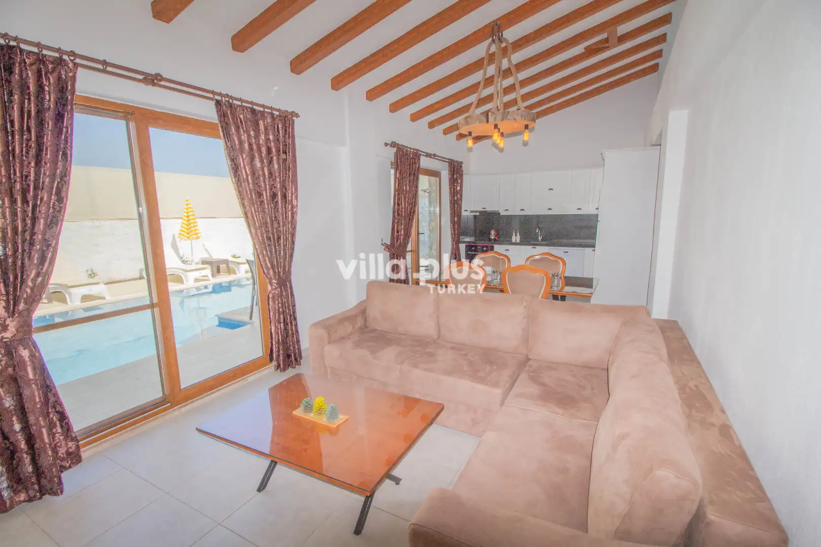 Furnished with high-quality furniture and fully equipped with all essential household appliances, the villa provides everything needed for a relaxing stay. With 2 bedrooms and a capacity for 4 guests, it is an excellent choice for couples and small families. The spacious living room features a modern seating area and a TV, while the private and secluded swimming pool offers a great advantage for guests seeking privacy and tranquility.
