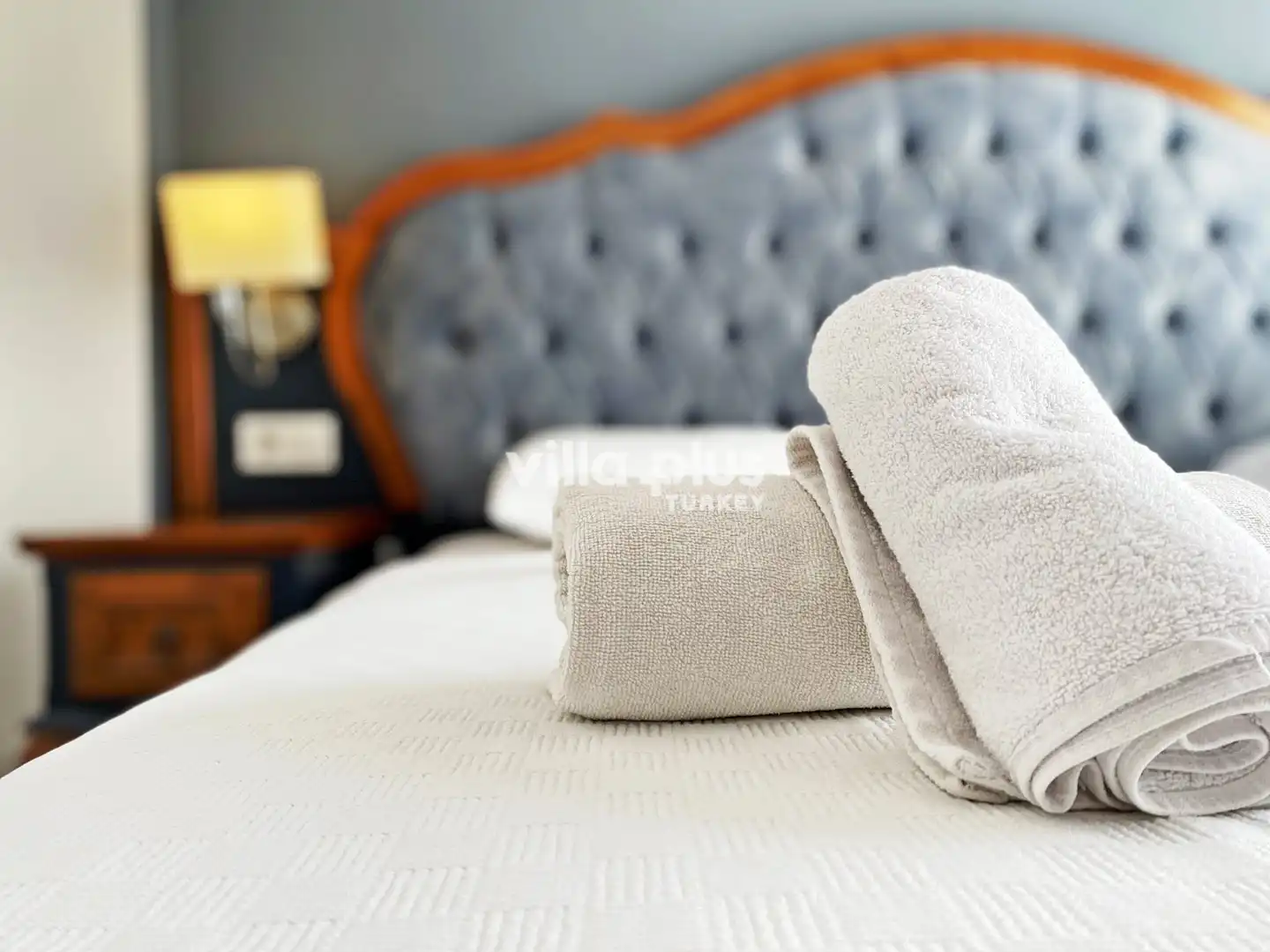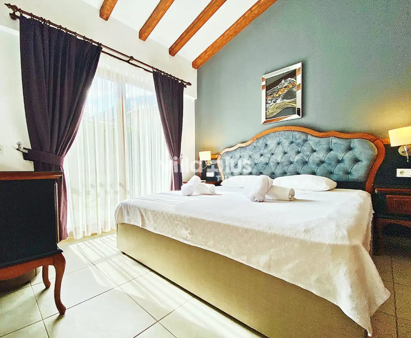 The interior features elegant furnishings, a fully equipped kitchen, essential appliances, and tasteful decorative touches. With 2 bedrooms and a capacity for 4 guests, Villa Orvion 7 is an ideal choice for couples and small families. The spacious and bright living room includes a comfortable sitting area and a TV, while the completely private swimming pool in the outdoor area provides a secure and relaxing space for guests who value privacy.