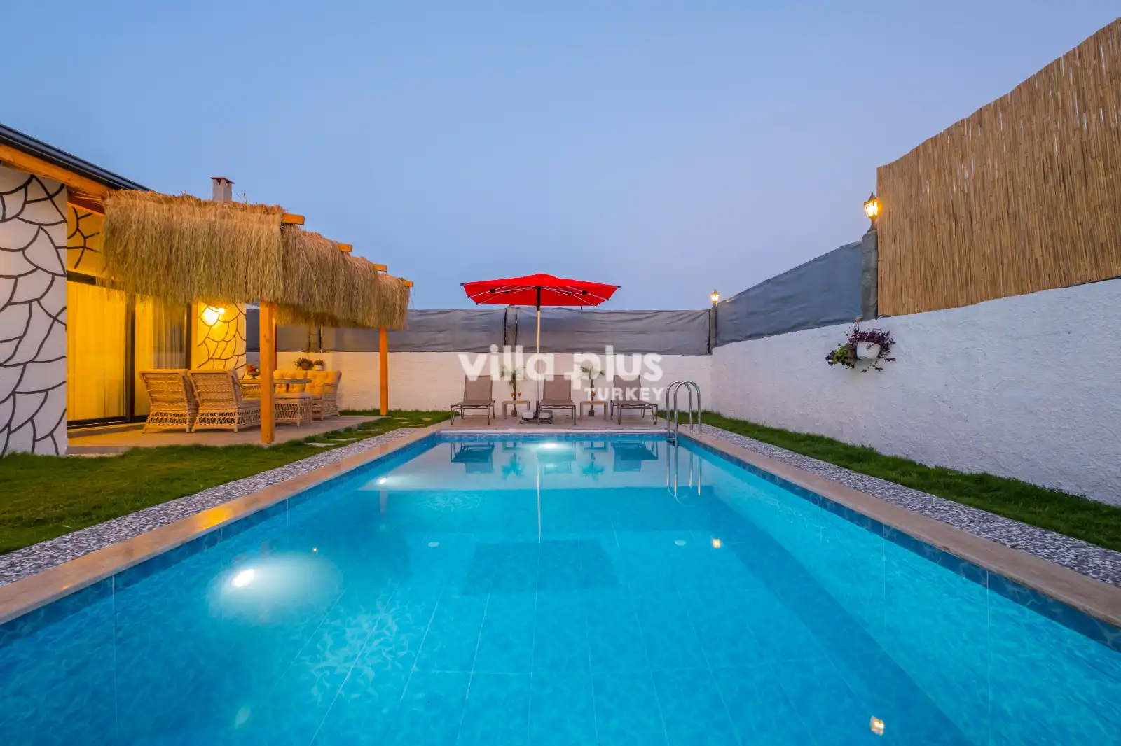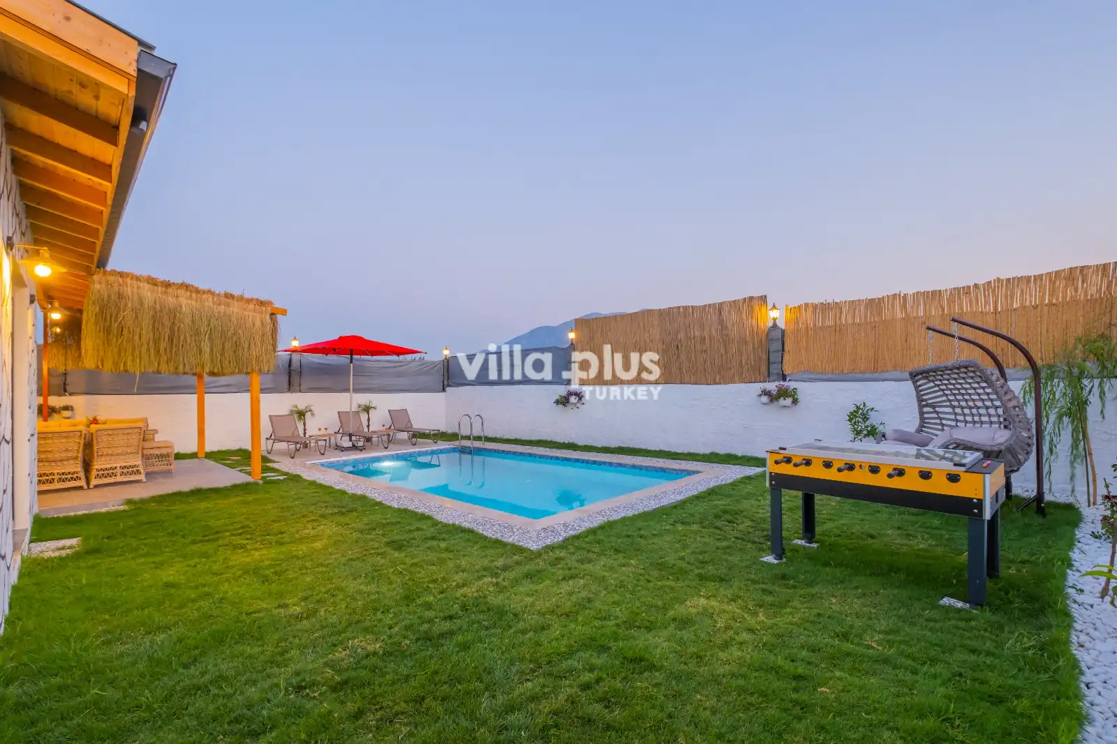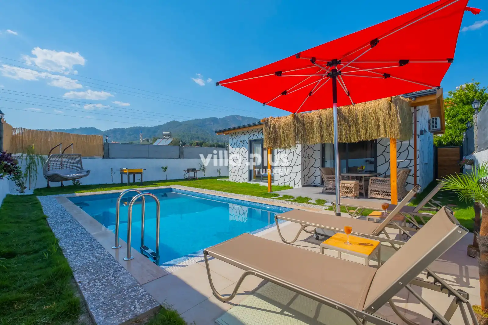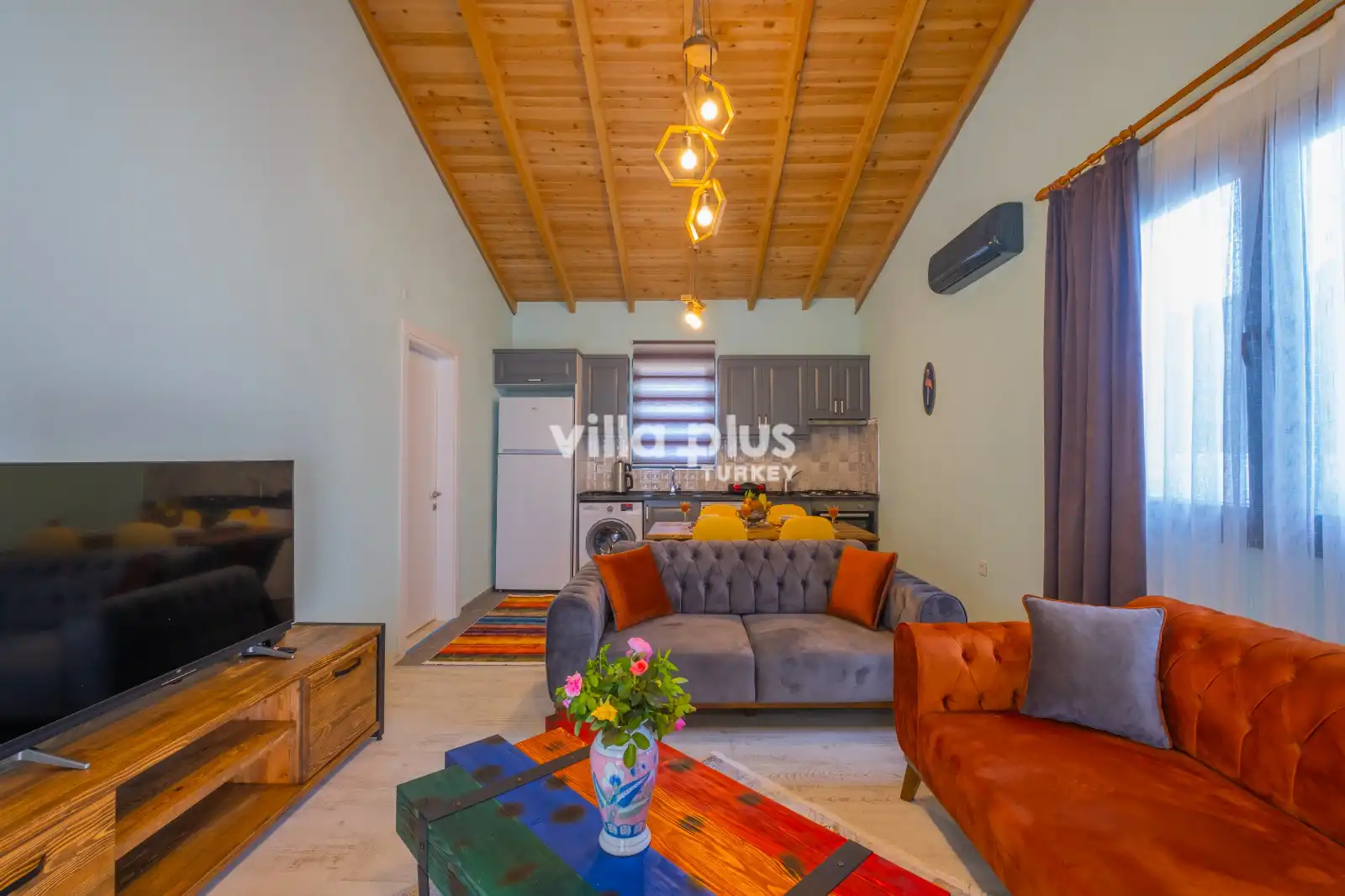 Villa Ozbi, located in Çamköy, Fethiye, is a private pool and a sheltered holiday option. It is a suitable option for children with two bedrooms. It is quiet and sheltered and is preferred for its proximity to the center of Fethiye. The villa has amenities such as a living room-kitchen, TV and air conditioning