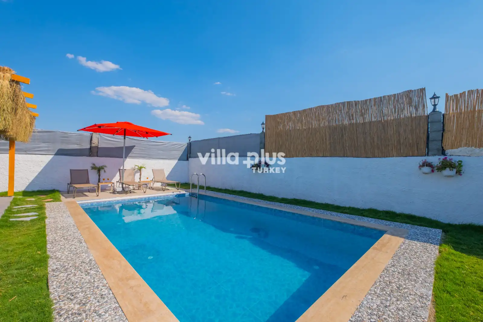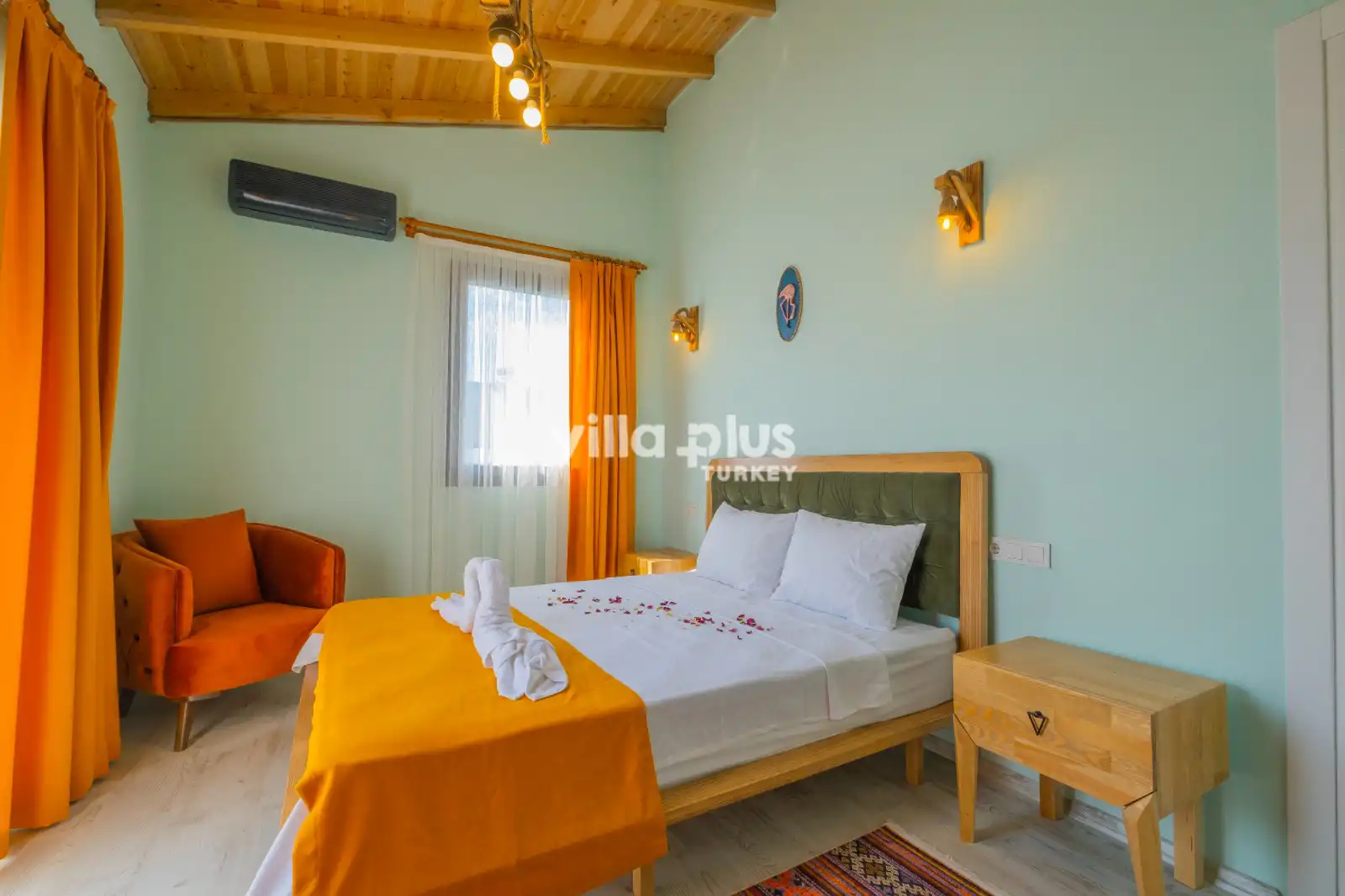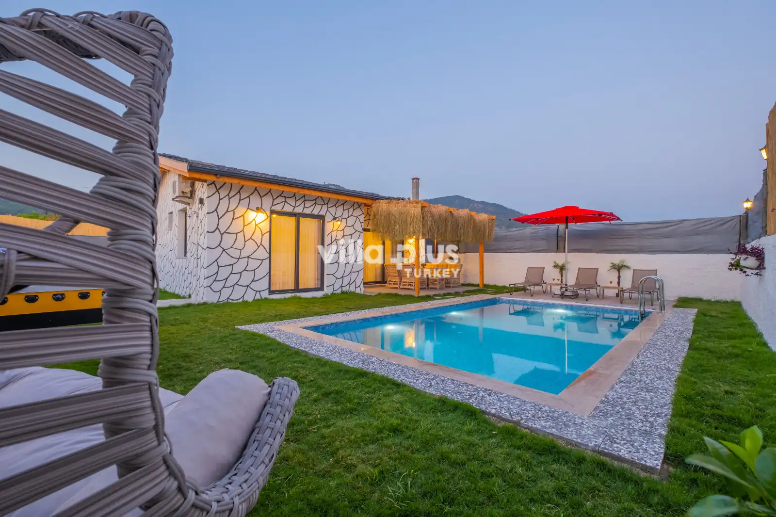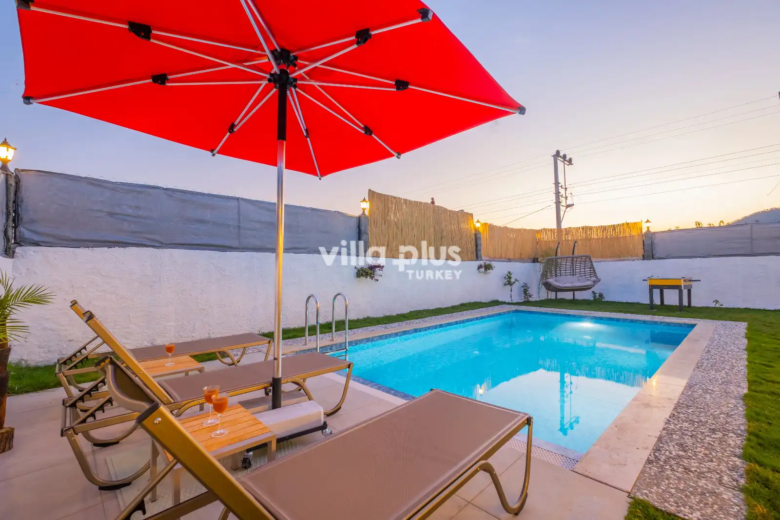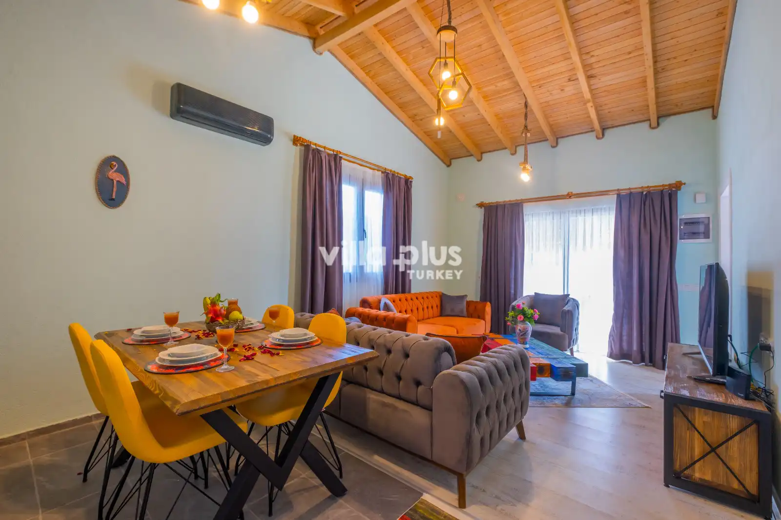 Villa Ozbi, located in Çamköy, Fethiye, is a private pool and a sheltered holiday option. It is a suitable option for children with two bedrooms. It is quiet and sheltered and is preferred for its proximity to the center of Fethiye. The villa has amenities such as a living room-kitchen, TV and air conditioning