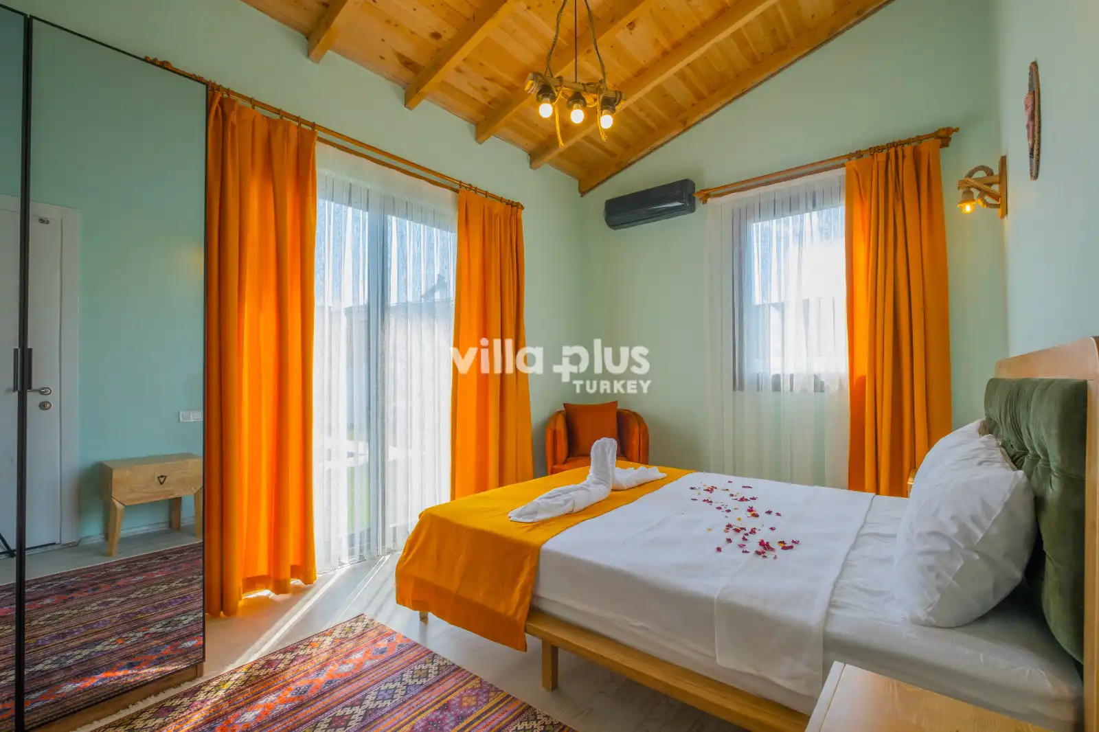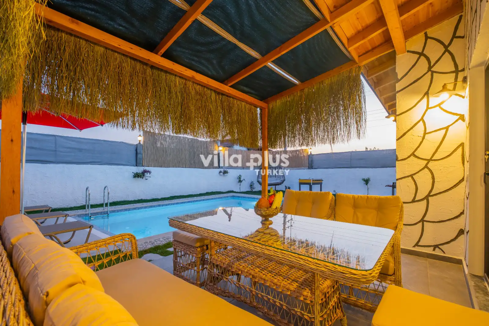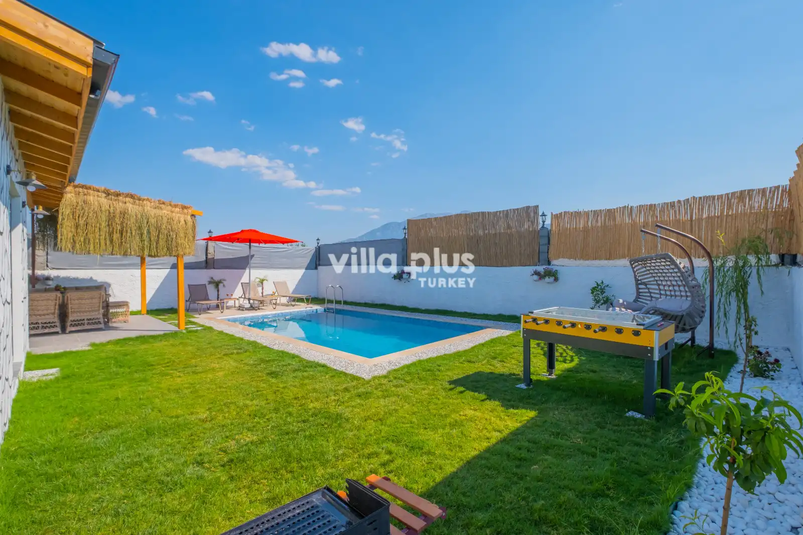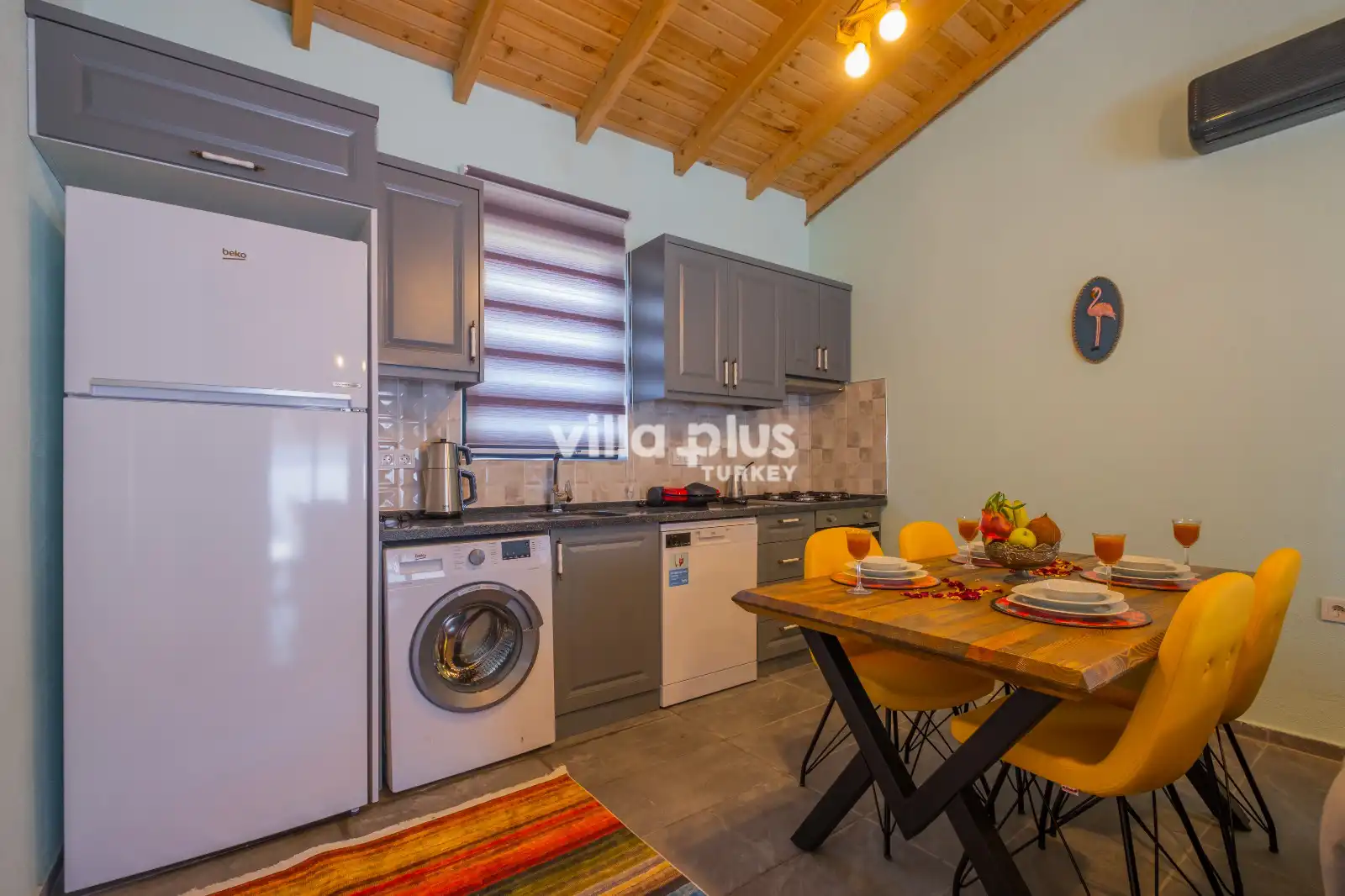 Villa Ozbi, located in Çamköy, Fethiye, is a private pool and a sheltered holiday option. It is a suitable option for children with two bedrooms. It is quiet and sheltered and is preferred for its proximity to the center of Fethiye. The villa has amenities such as a living room-kitchen, TV and air conditioning