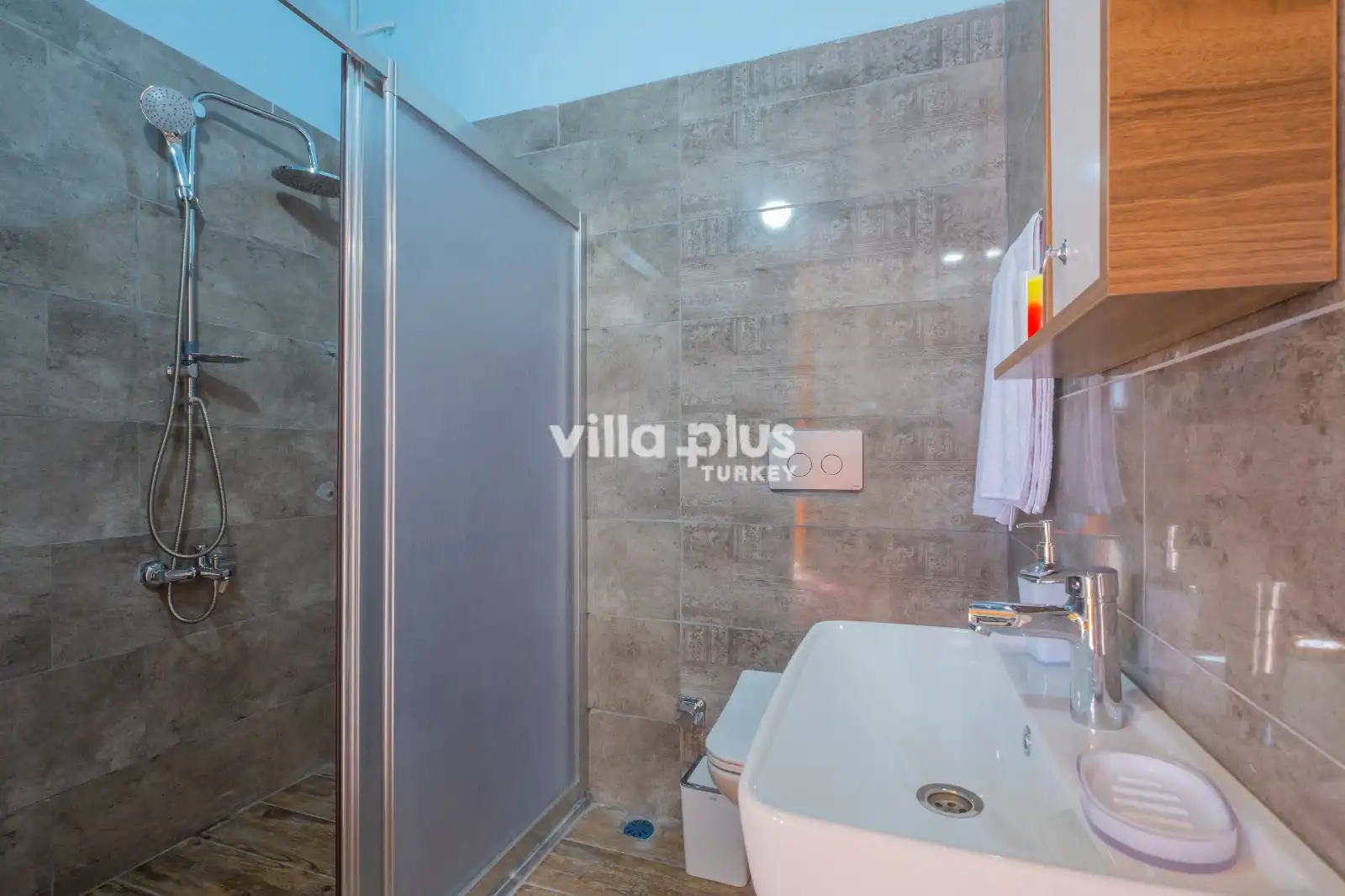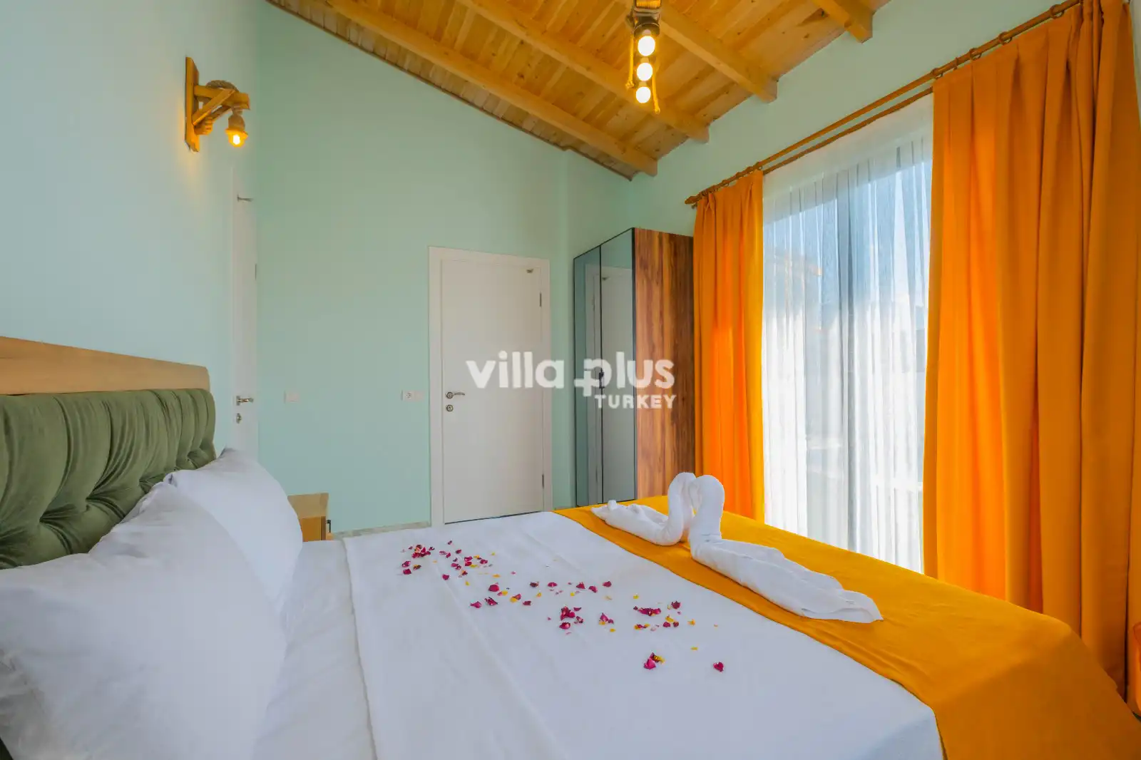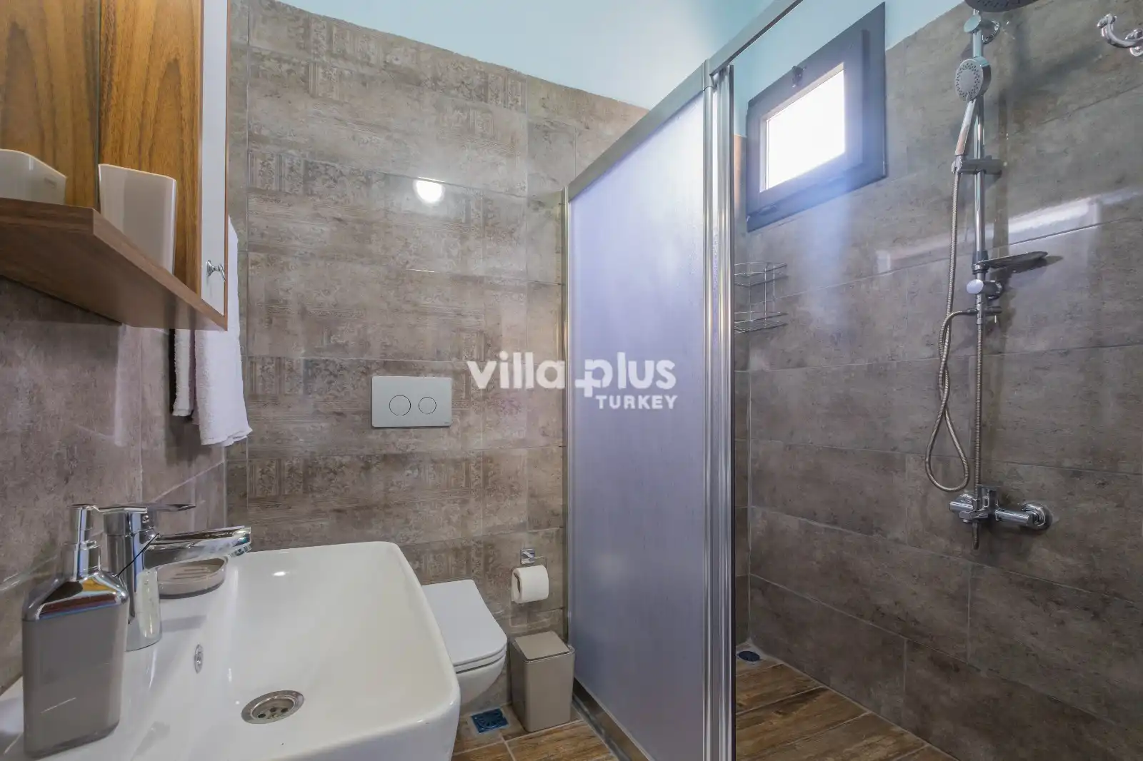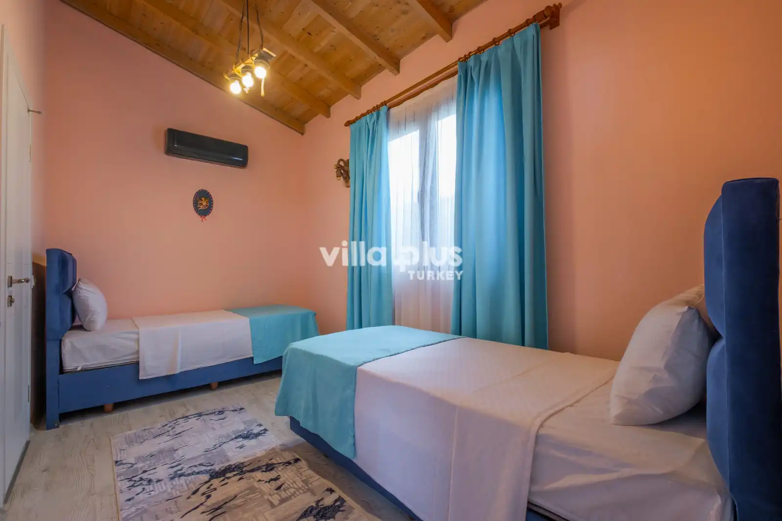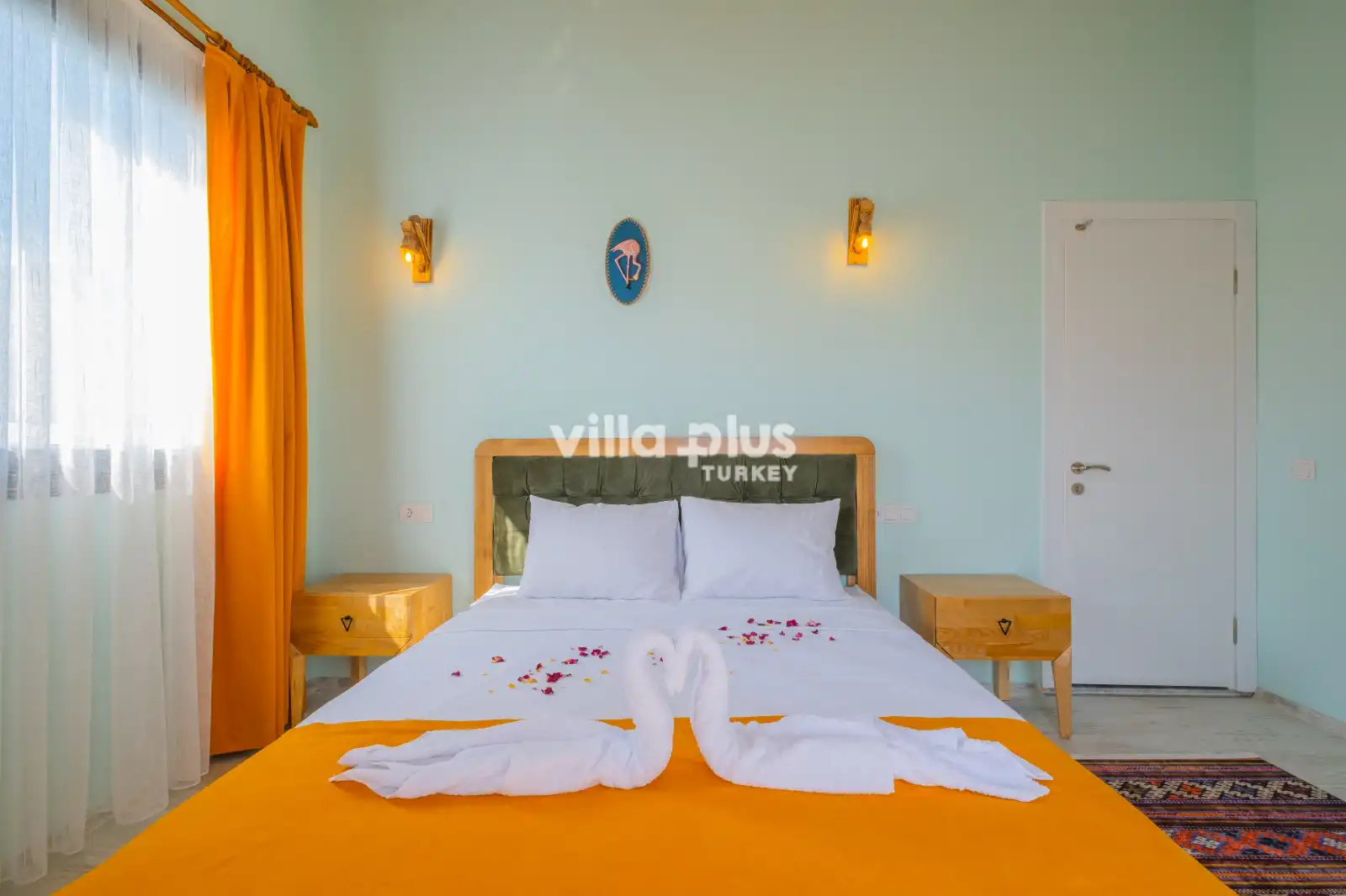 Villa Ozbi, located in Çamköy, Fethiye, is a private pool and a sheltered holiday option. It is a suitable option for children with two bedrooms. It is quiet and sheltered and is preferred for its proximity to the center of Fethiye. The villa has amenities such as a living room-kitchen, TV and air conditioning